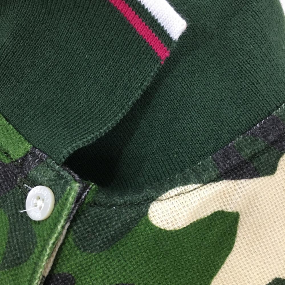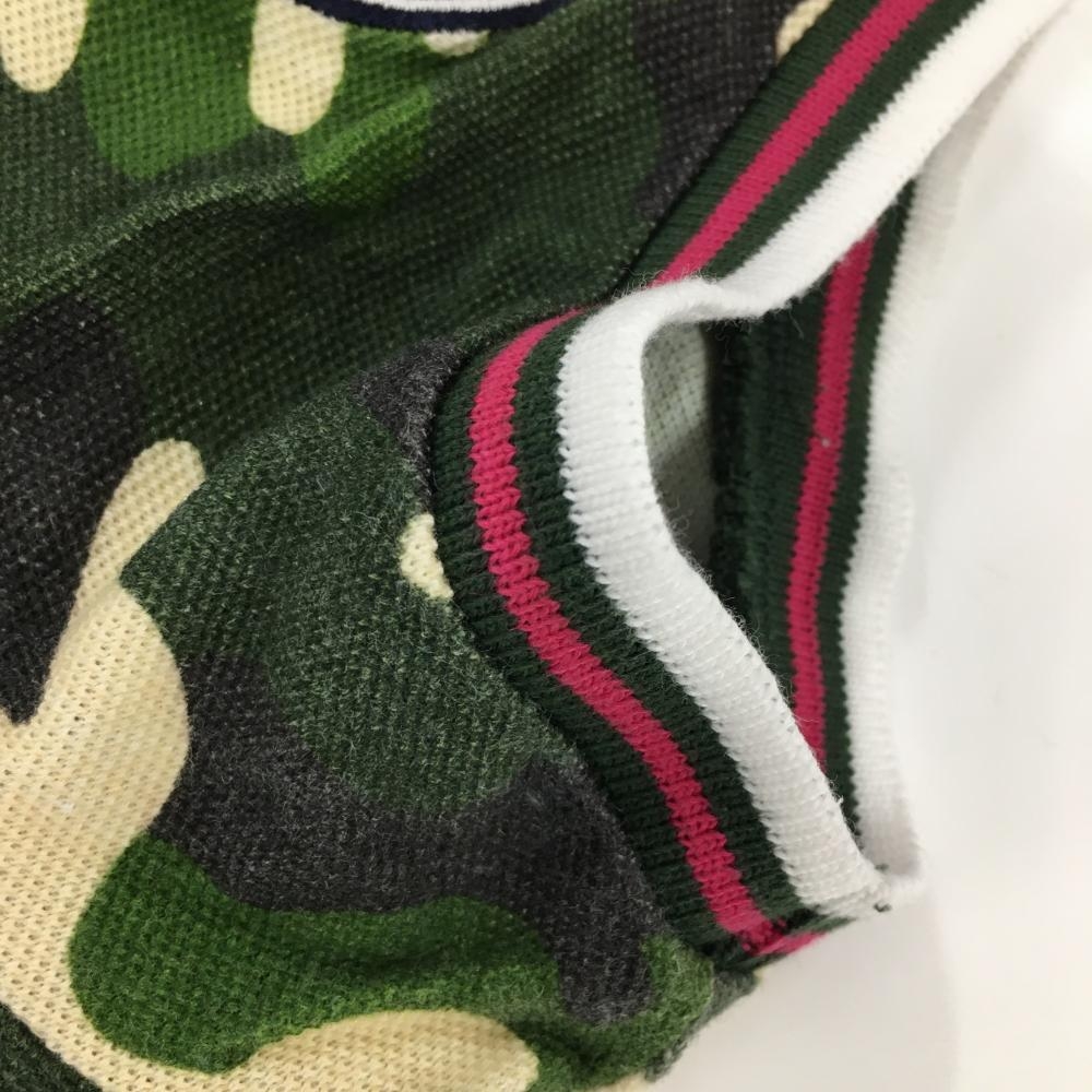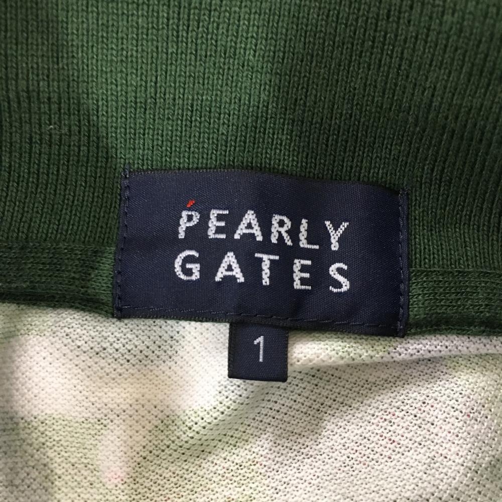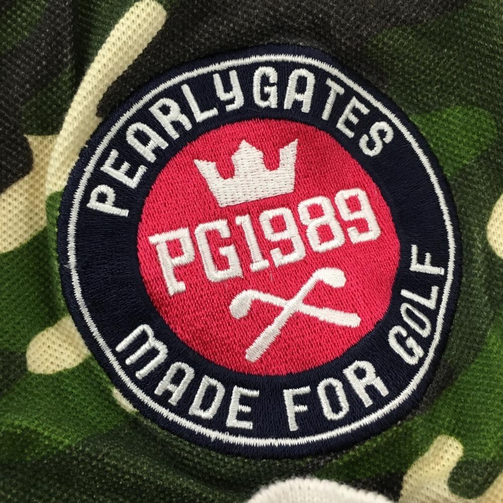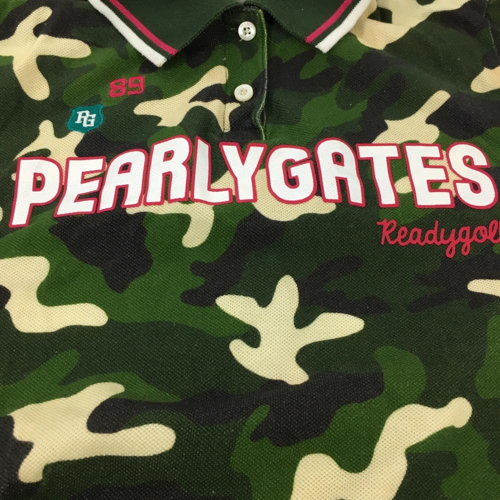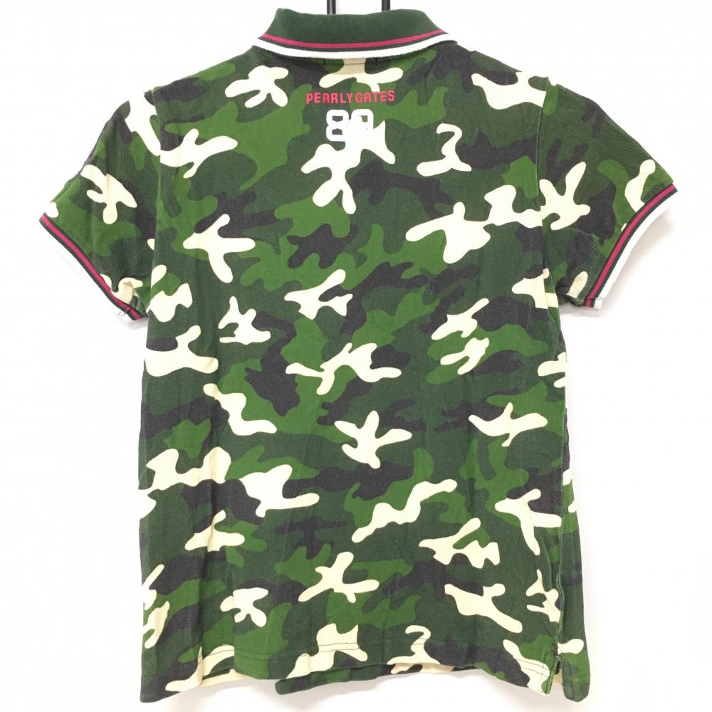 パーリーゲイツ 半袖ポロシャツ グリーン×白×黒 迷彩 カモフラ コットン100% レディース 1(M) ゴルフウェア PEARLY GATES