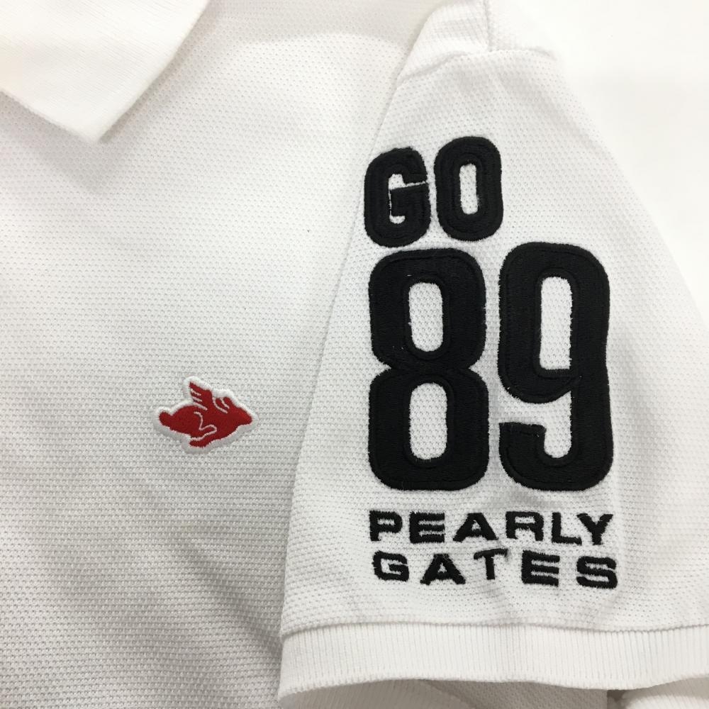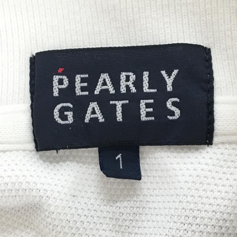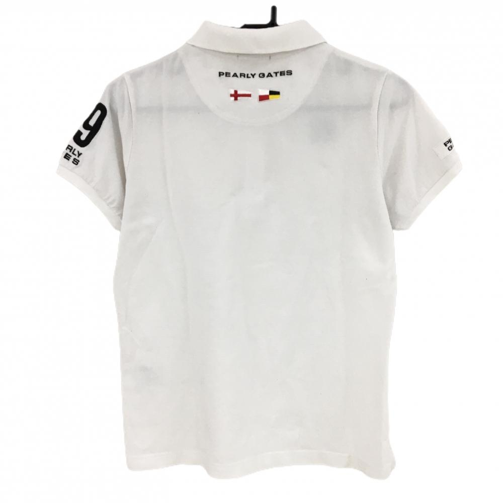 【美品】パーリーゲイツ 半袖ポロシャツ 白×黒 フラッグ刺しゅう フライングラビット レディース 1(M) ゴルフウェア PEARLY GATES