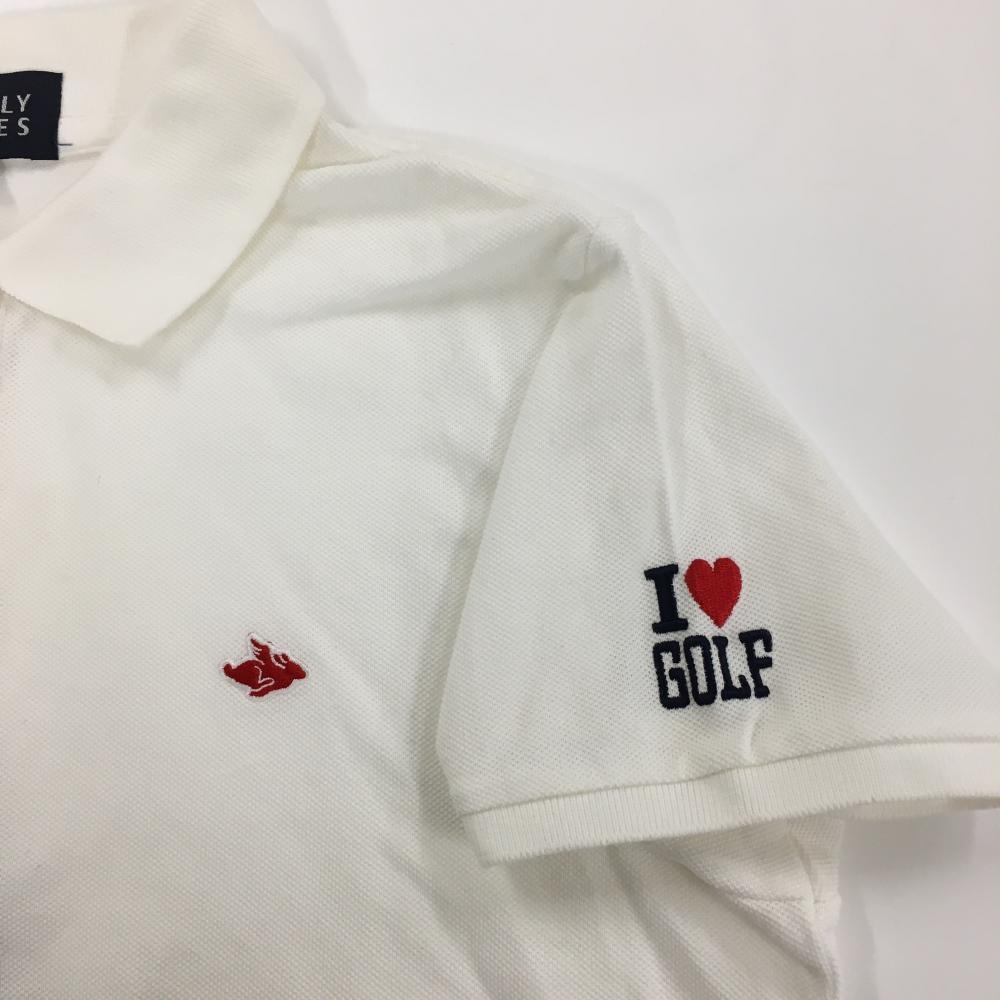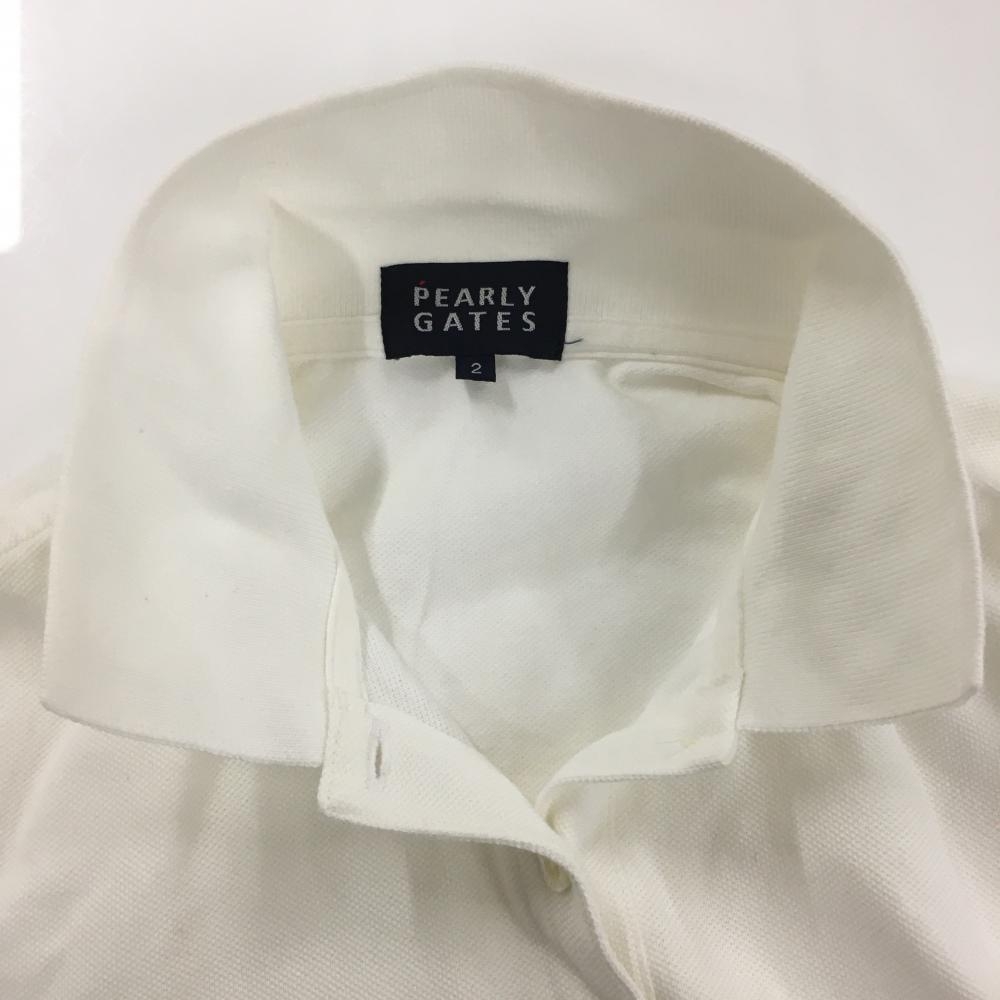 【美品】パーリーゲイツ 半袖ポロシャツ 白 フライングラビット コットン100% レディース 2(L) ゴルフウェア PEARLY GATES