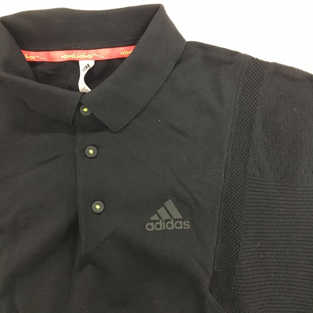 アディダス 半袖ポロシャツ 黒 ニット地 胸元ロゴ ストレッチ メンズ L ゴルフウェア adidas