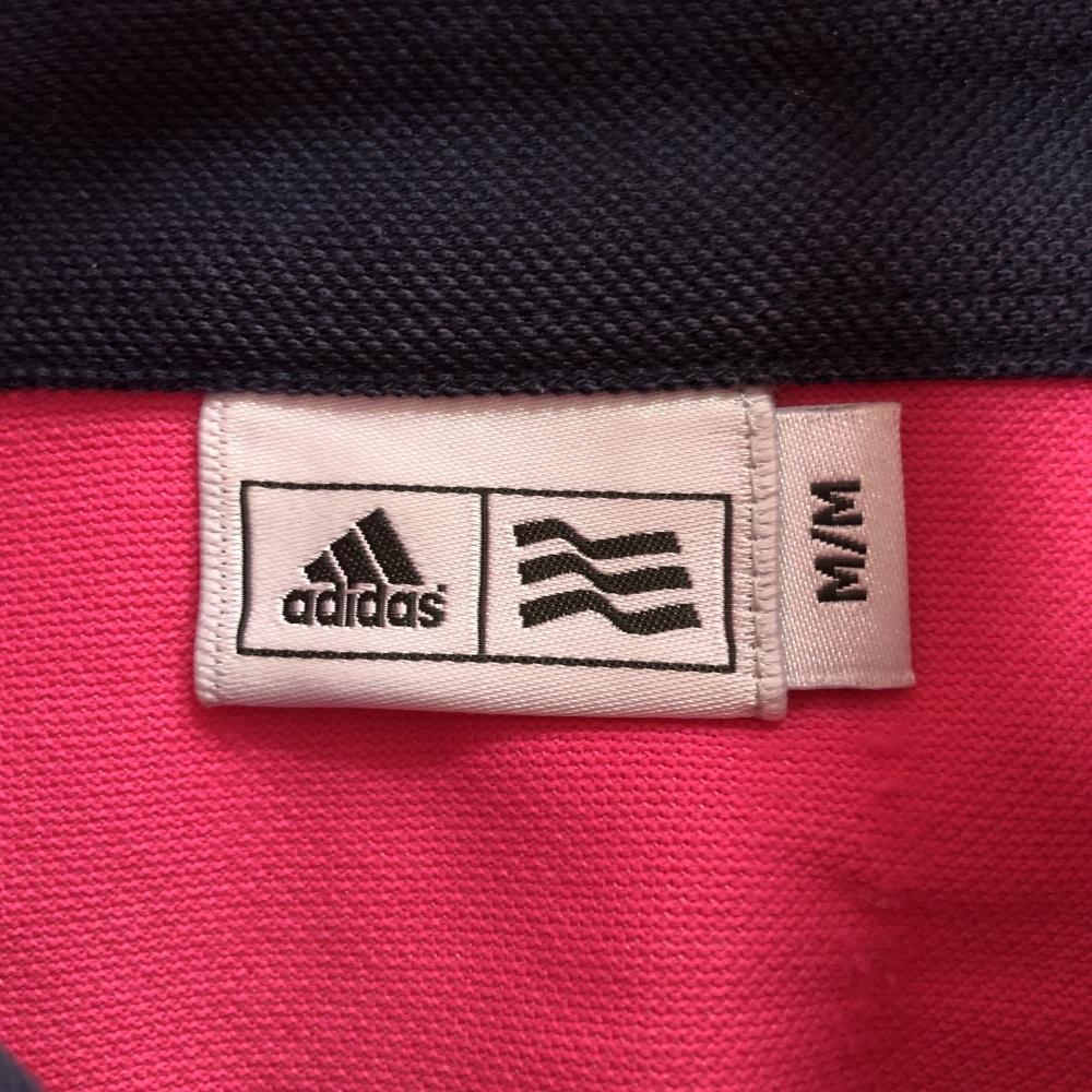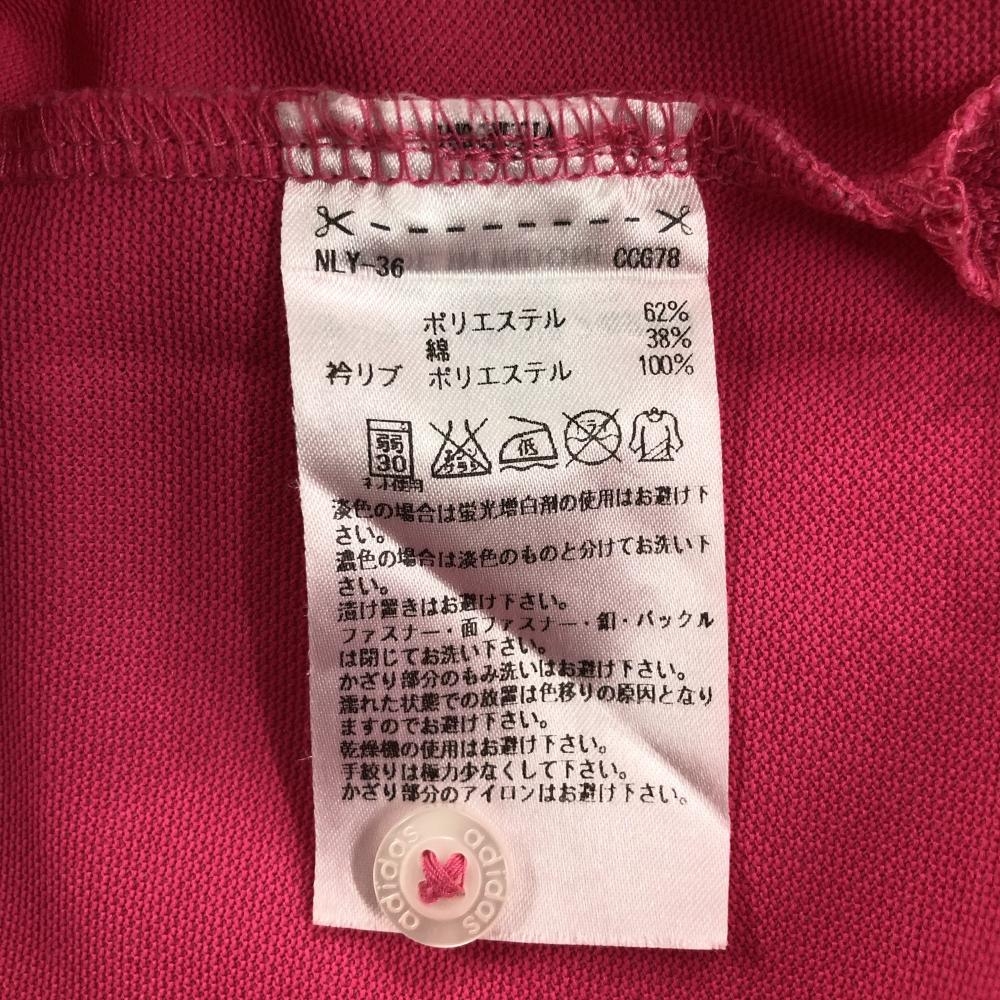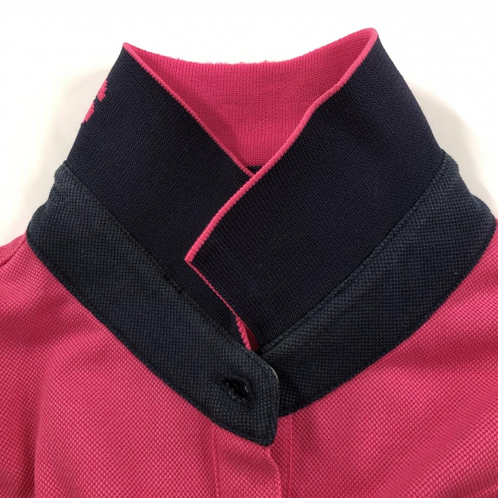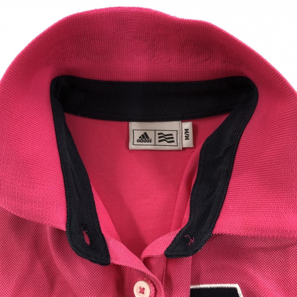 アディダス 半袖ポロシャツ ピンク×ネイビー 襟裏ロゴ レディース M ゴルフウェア adidas