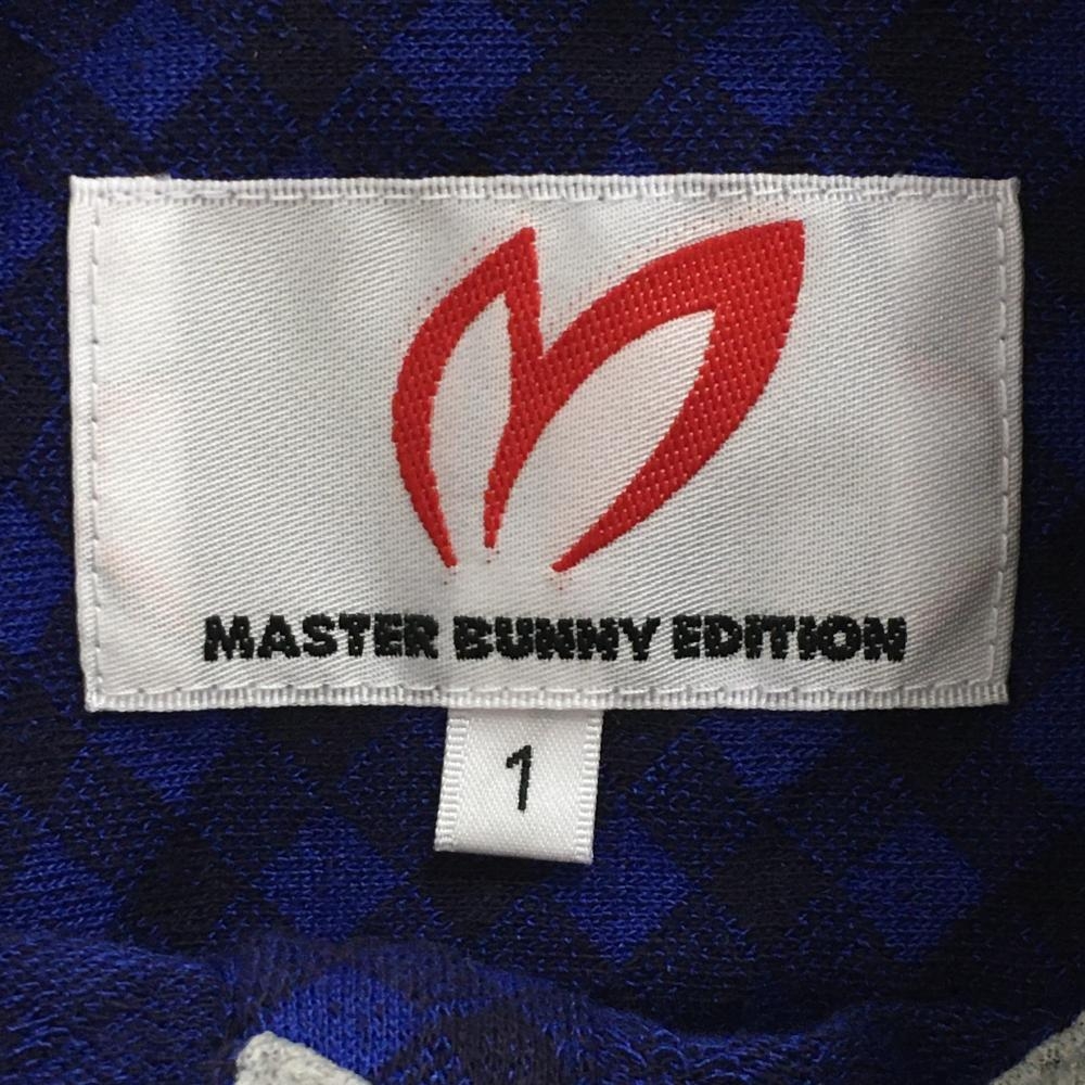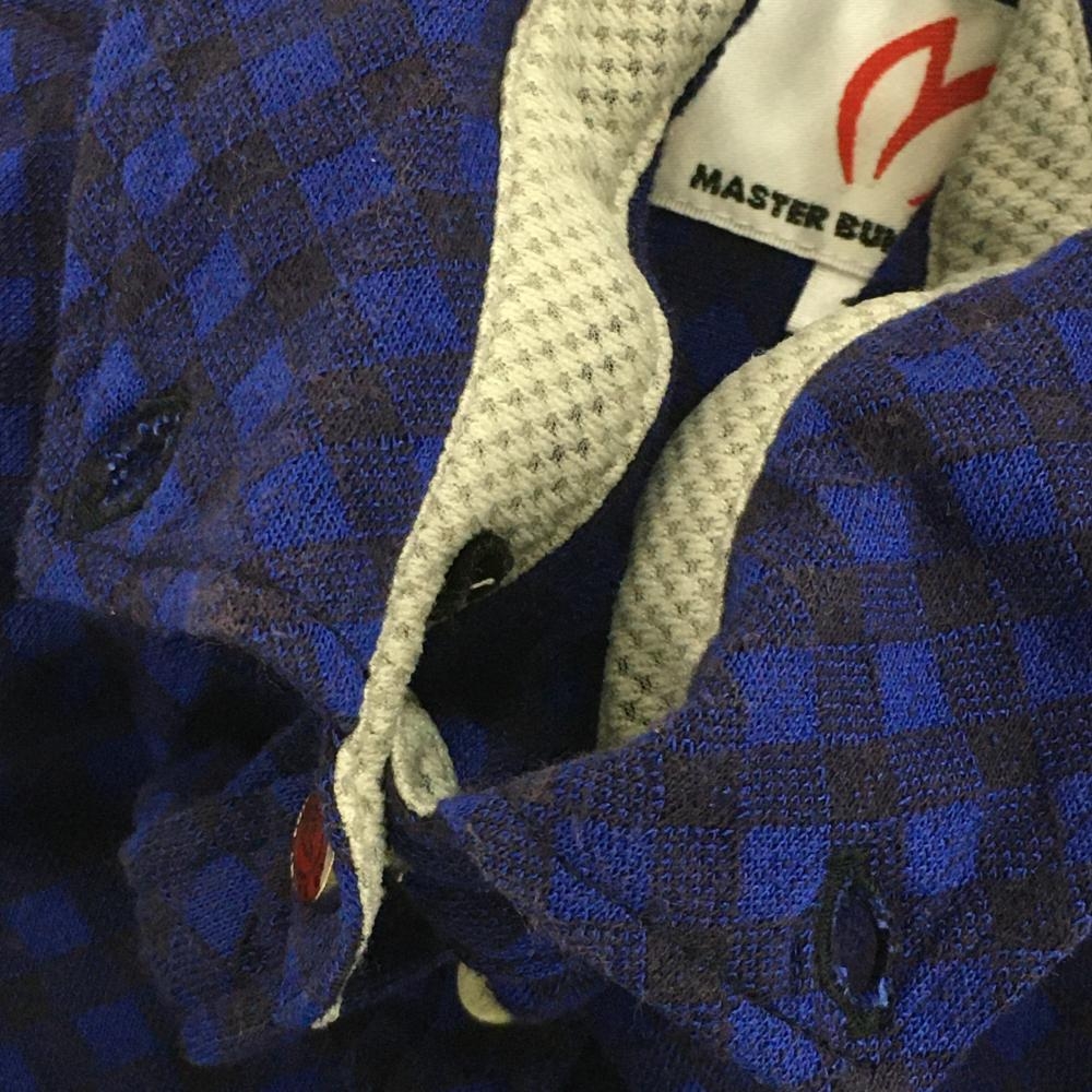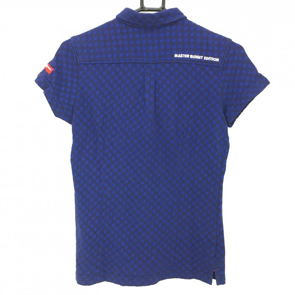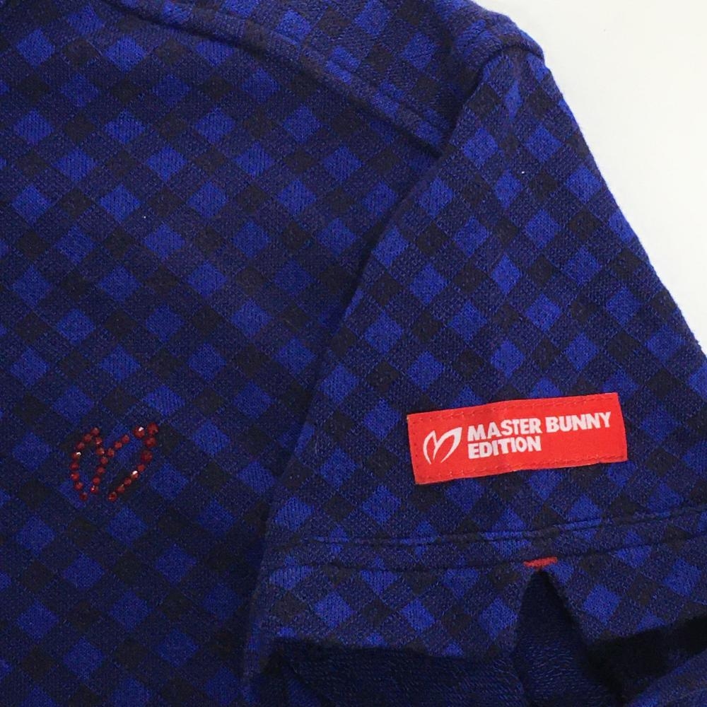 【美品】マスターバニー 半袖ポロシャツ ブルー×ネイビー チェック ボタンダウン レディース 1(M) ゴルフウェア MASTER BUNNY EDITION