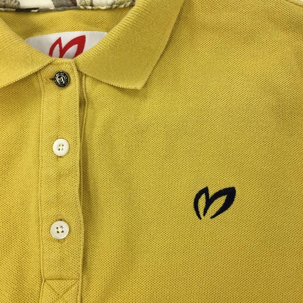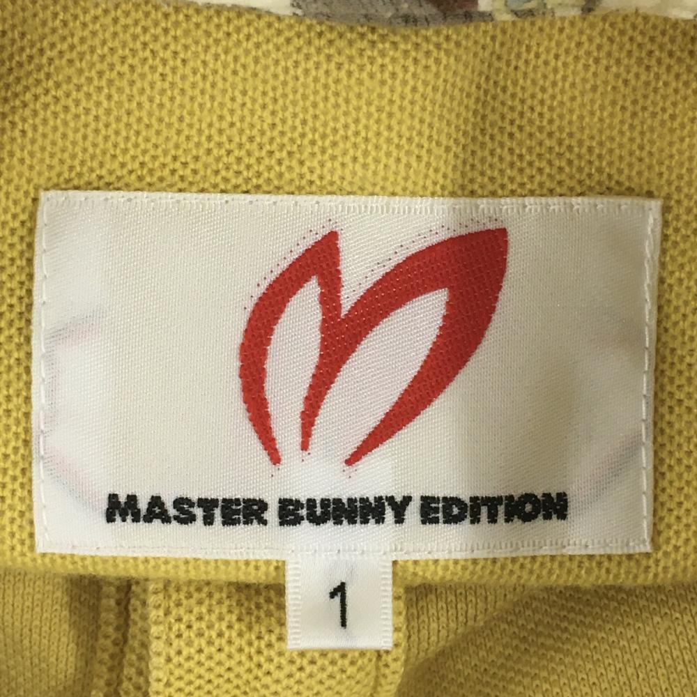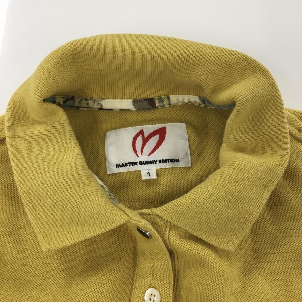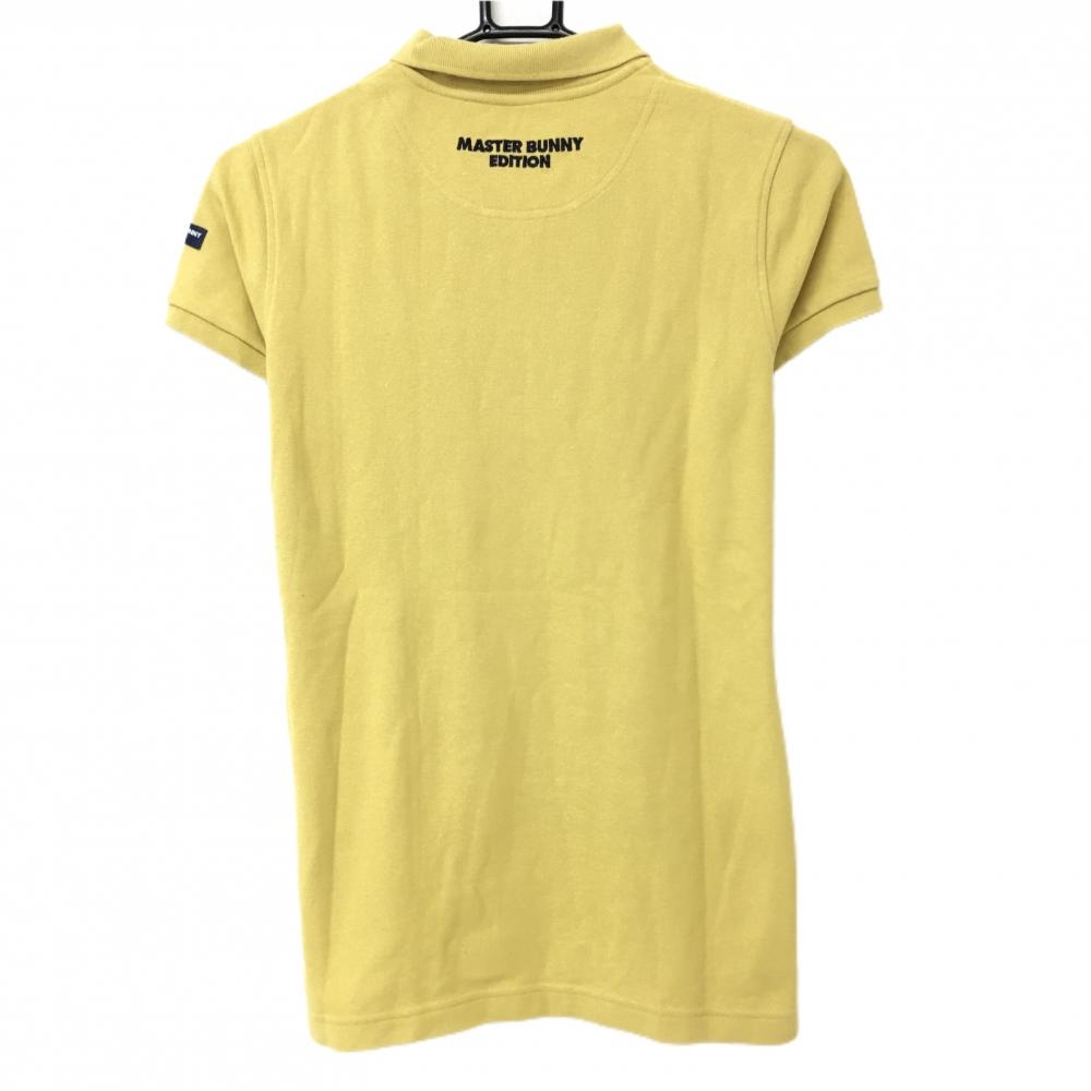 【美品】マスターバニー 半袖ポロシャツ イエロー×ネイビー ロゴ刺しゅう レディース 1(M) ゴルフウェア MASTER BUNNY EDITION
