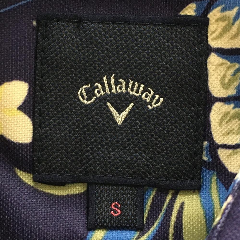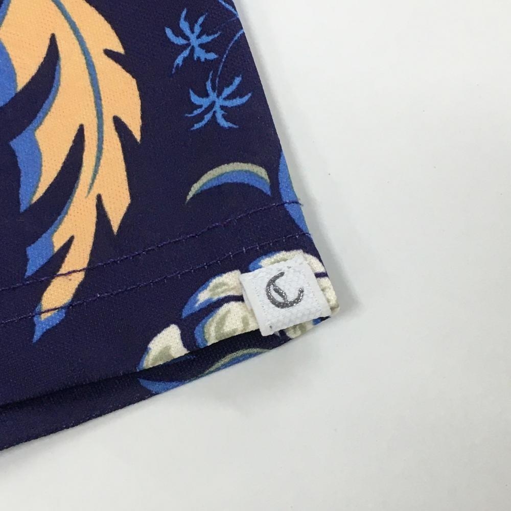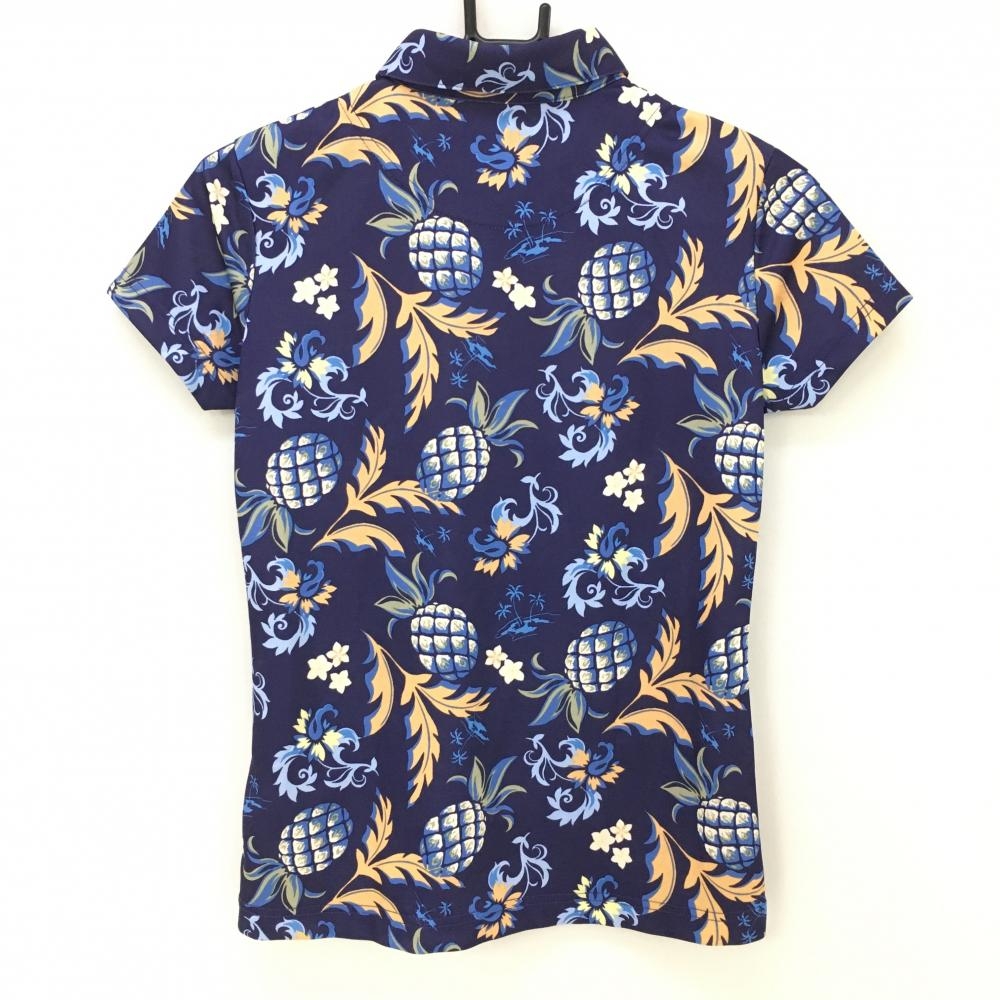 【超美品】キャロウェイ 半袖ポロシャツ ネイビー×オレンジ 総柄 パイナップル 花 レディース S ゴルフウェア Callaway