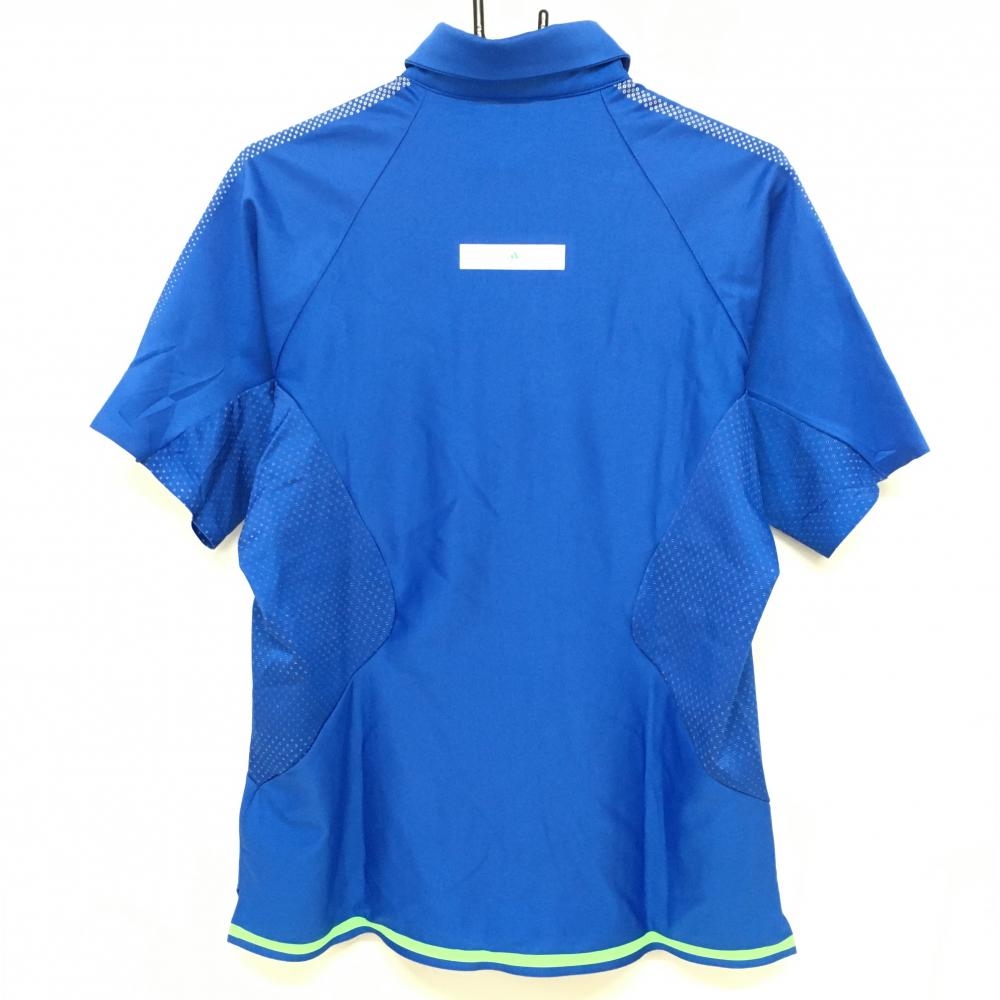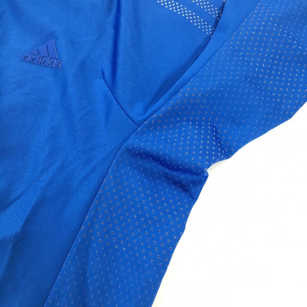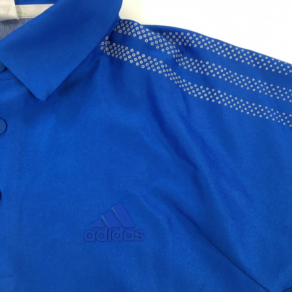 【超美品】アディダス 半袖ポロシャツ ブルー×白 袖3ライン 胸元ロゴ 一部メッシュ調 メンズ L ゴルフウェア adidas