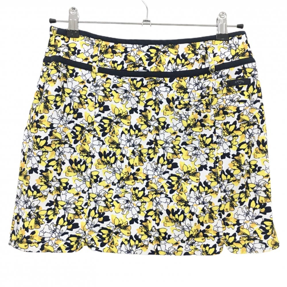 【超美品】キャロウェイ スカート 白×イエロー 花柄 裏地付 レディース M ゴルフウェア Callaway