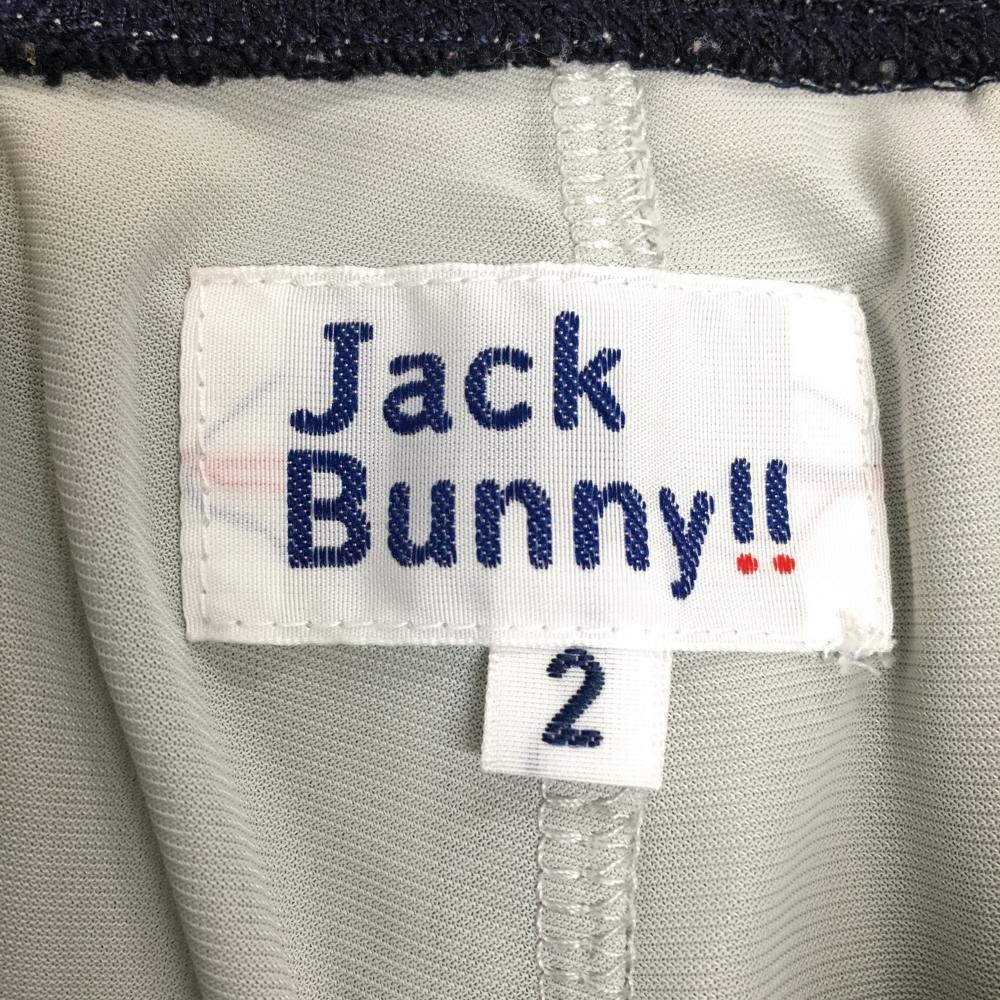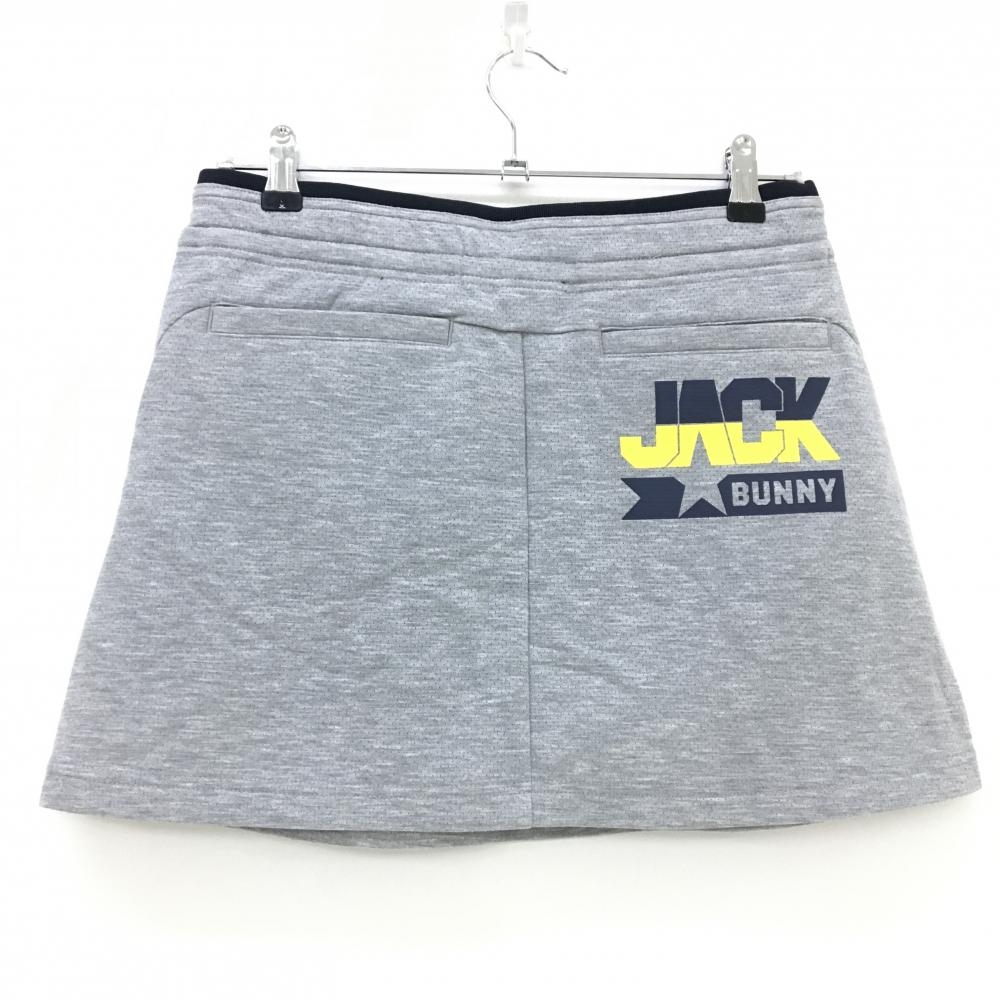 【美品】ジャックバニー スカート 杢グレー×ネイビー メッシュ調生地 ウエストゴム&調節紐 レディース 2(L) ゴルフウェア Jack Bunny