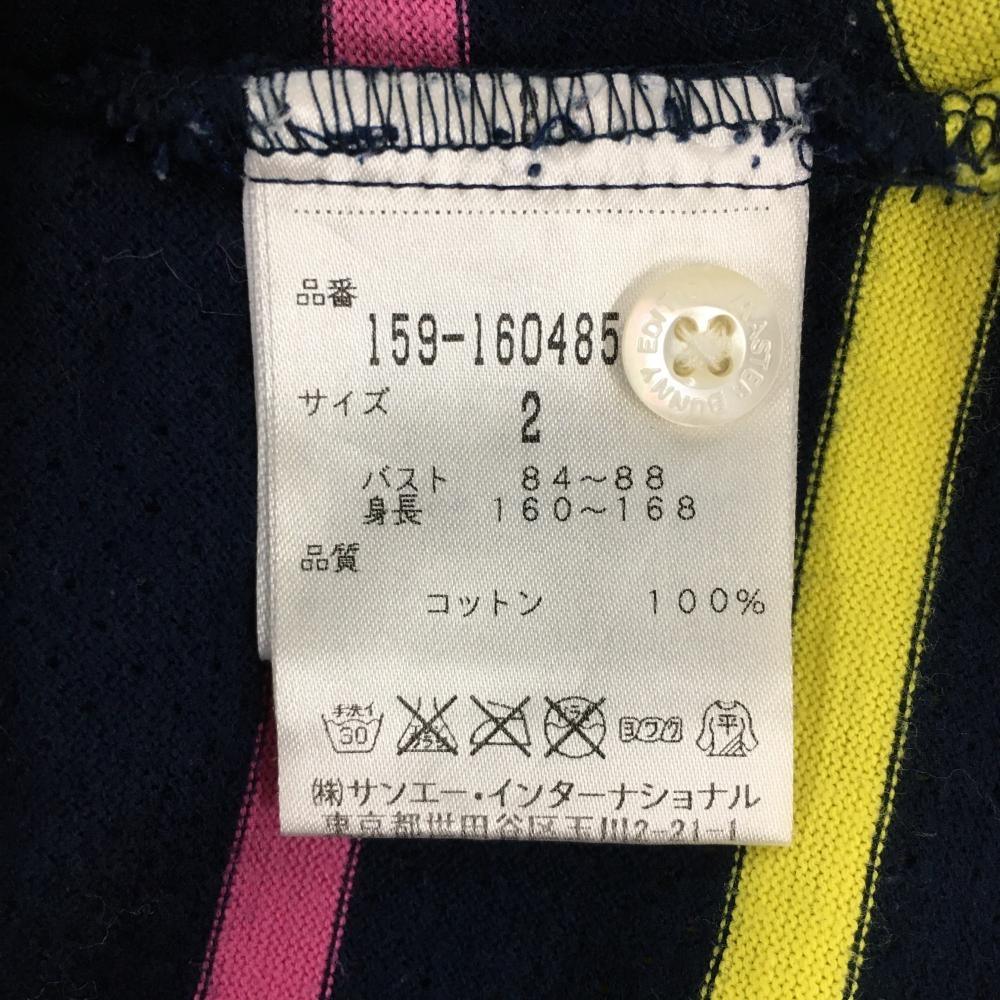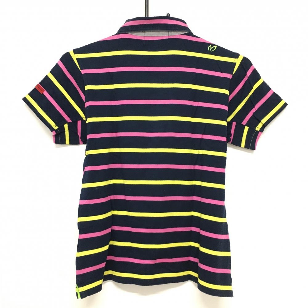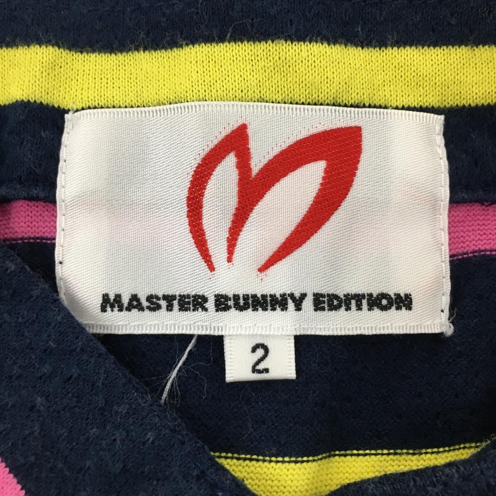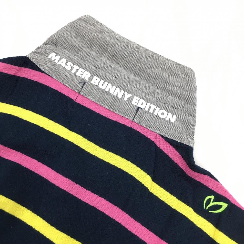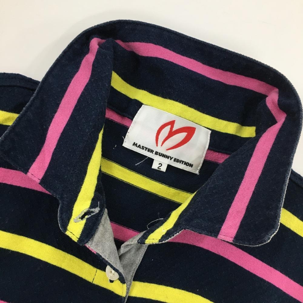 マスターバニー 半袖ポロシャツ ネイビー×イエロー×ピンク ボーダー レディース 2(L) ゴルフウェア MASTER BUNNY EDITION