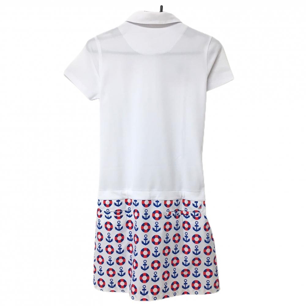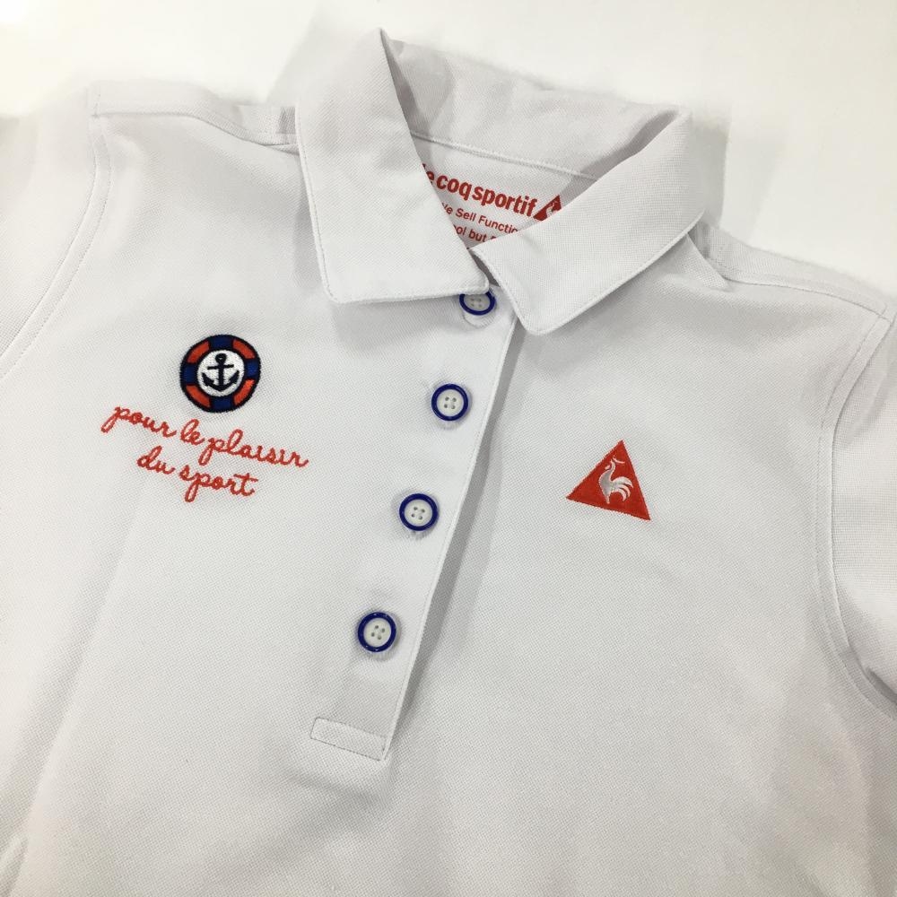【美品】ルコック 半袖ポロワンピース 白×ブルー スカートイカリ柄 ロゴ刺しゅう レディース M ゴルフウェア le coq sportif