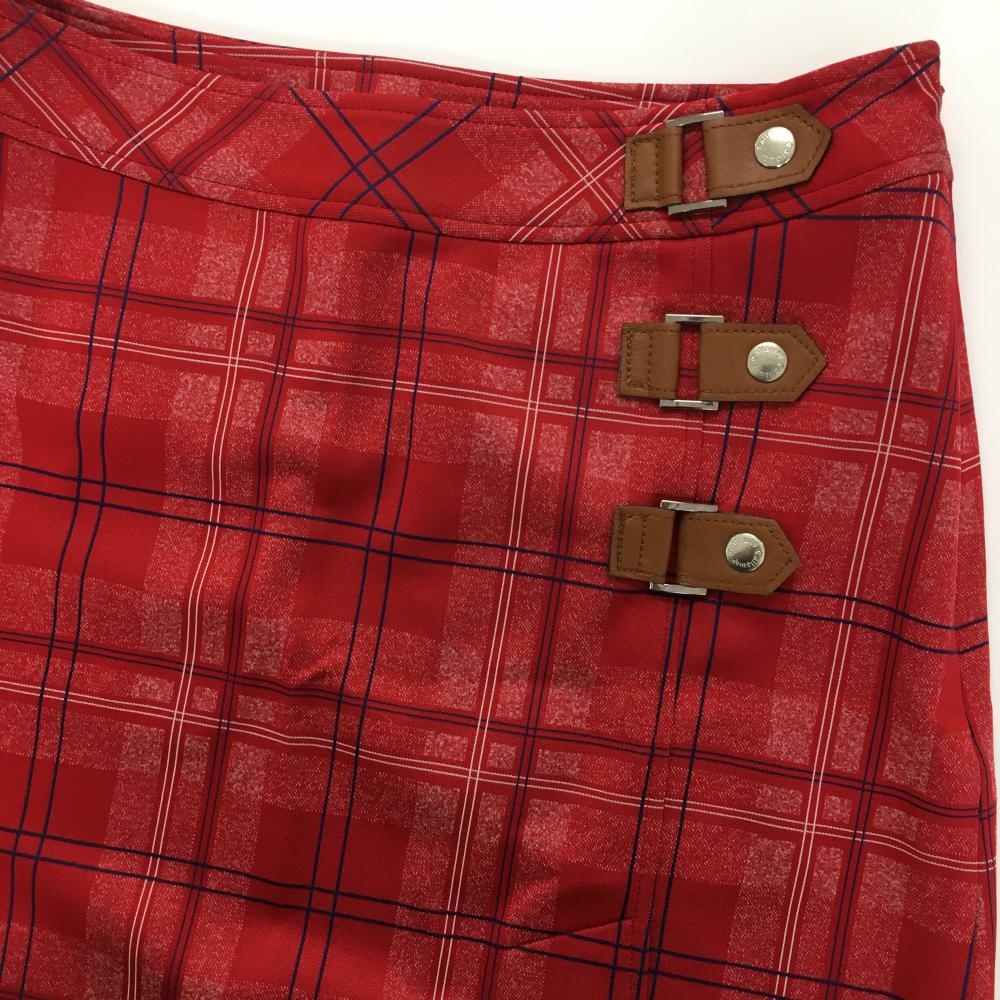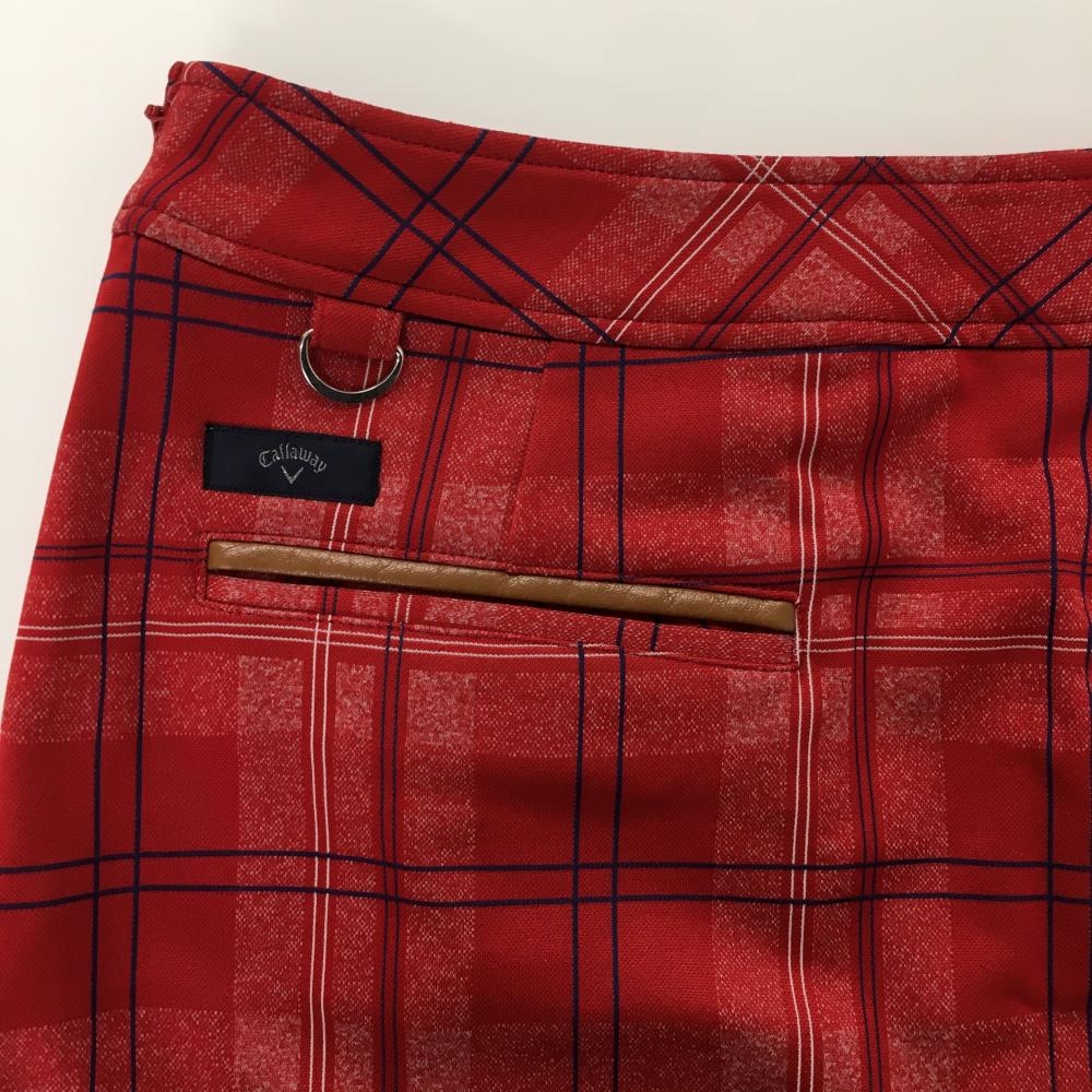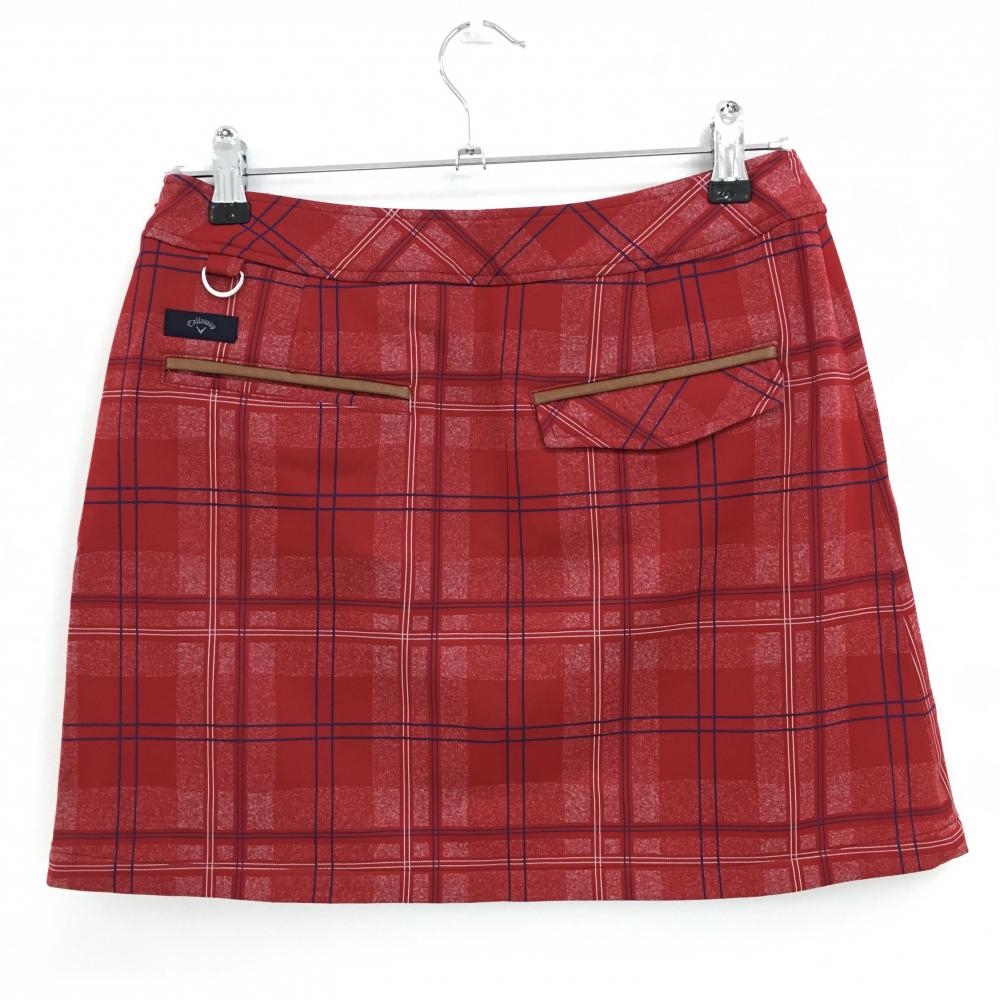 【超美品】キャロウェイ スカート レッド×ネイビー チェック 一部合成皮革 レディース M ゴルフウェア Callaway