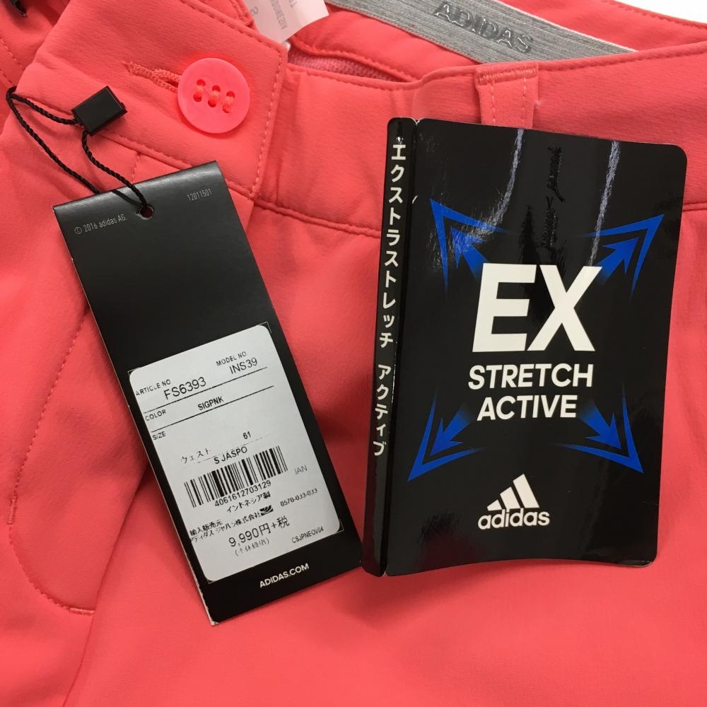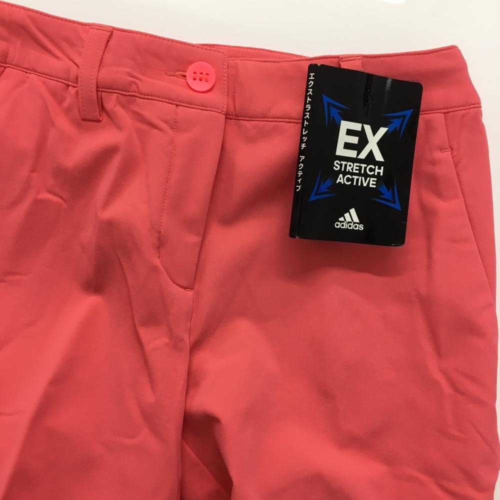 【新品】アディダス ストレッチパンツ ピンク EXストレッチ アクティブ ナイロン混 無地 レディース S ゴルフウェア adidas