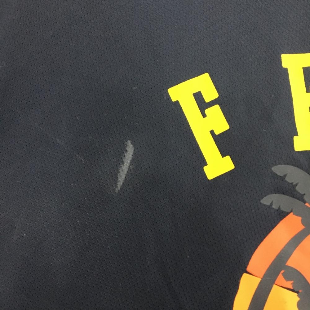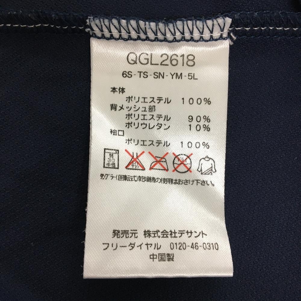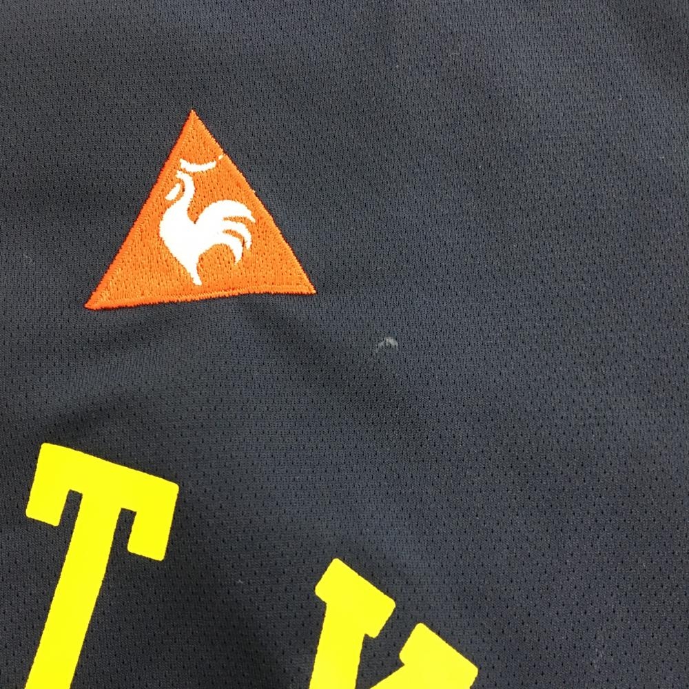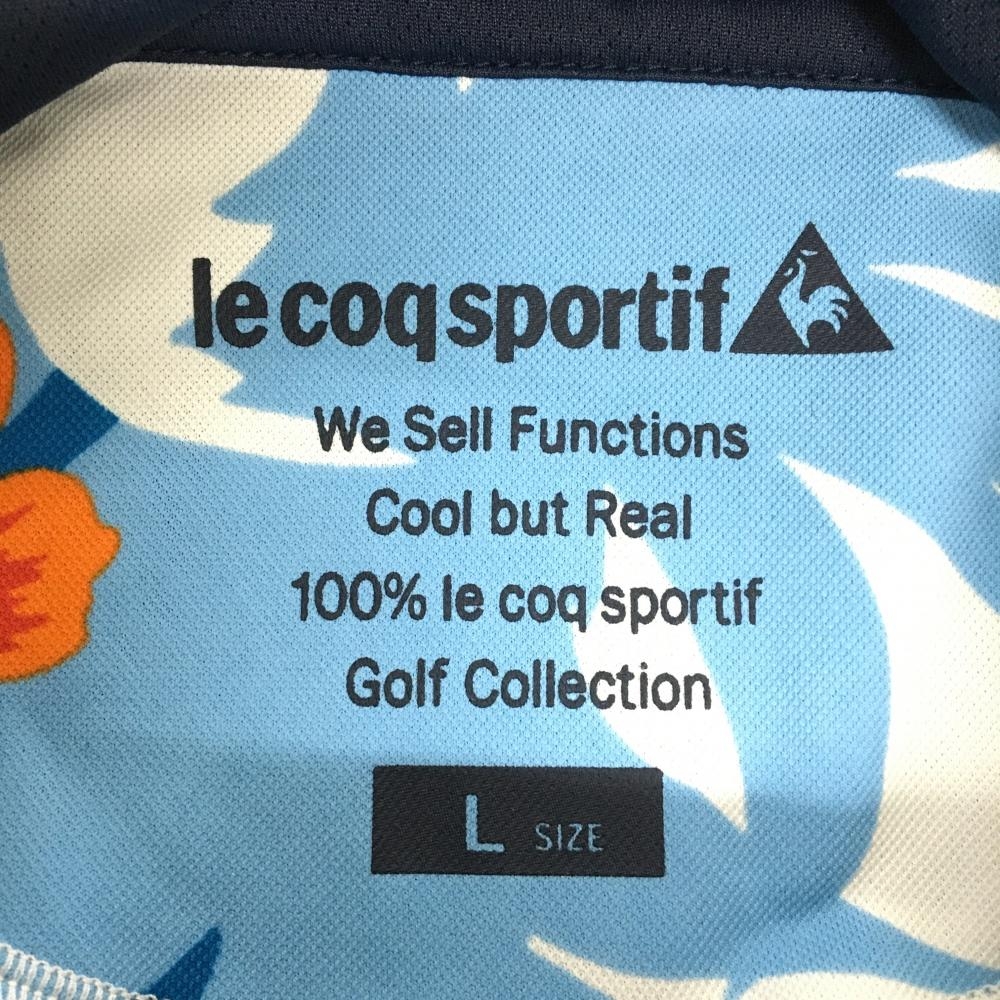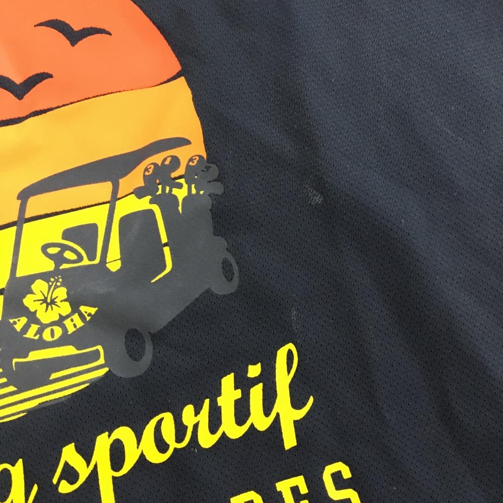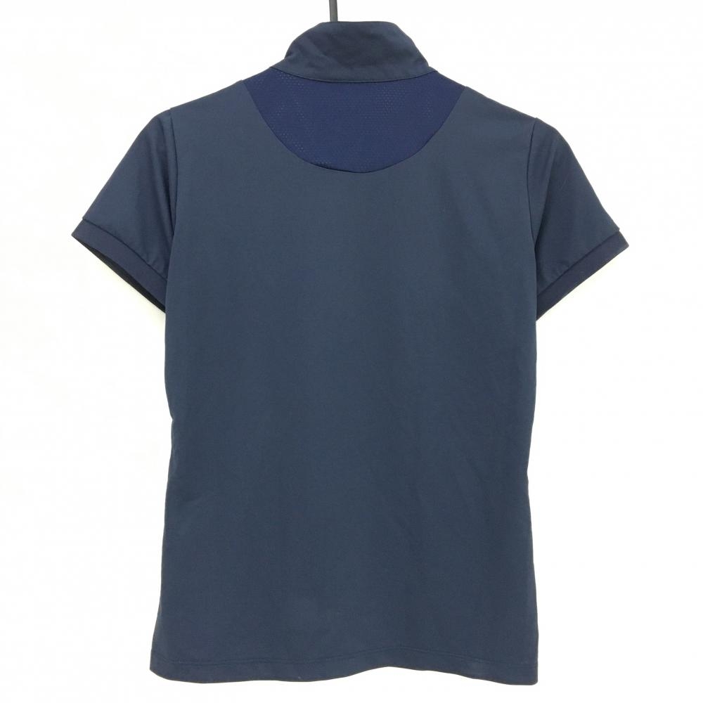 ルコックゴルフ 半袖ハイネックシャツ ネイビー×イエロー 夕景プリント ハーフジップ レディース L ゴルフウェア le coq sportif