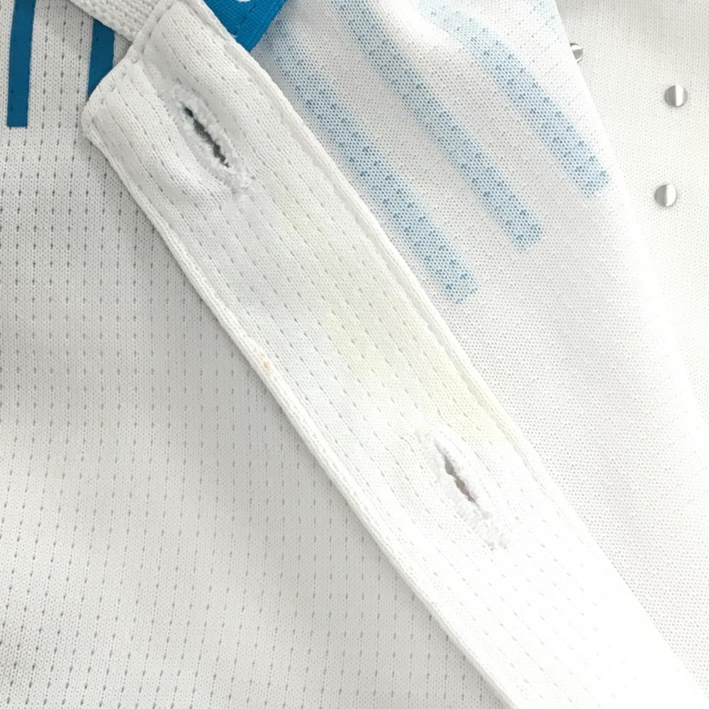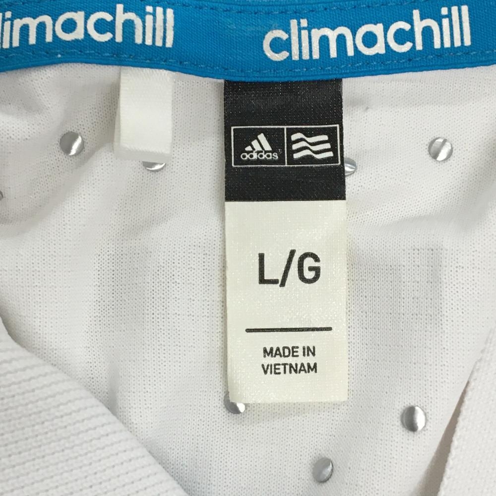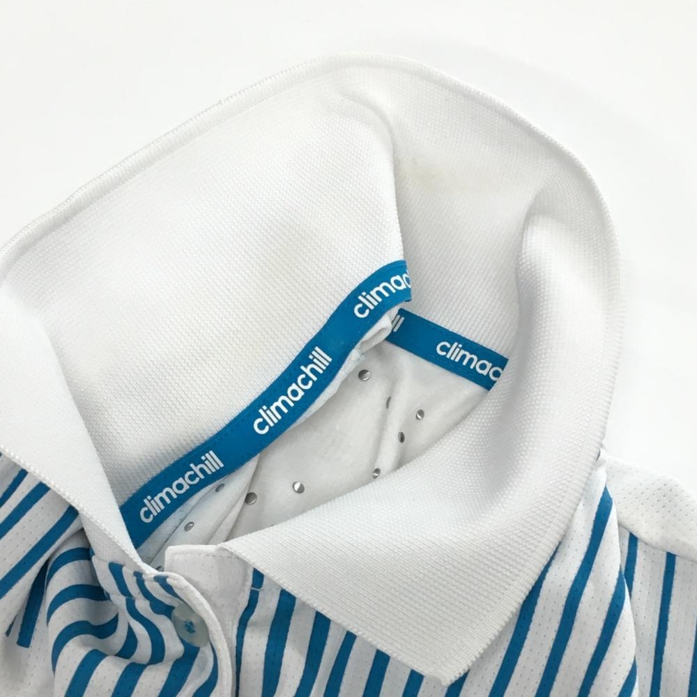 アディダス 半袖ポロシャツ 白×ライトブルー 肩ストライプ climachill レディース L/G ゴルフウェア adidas