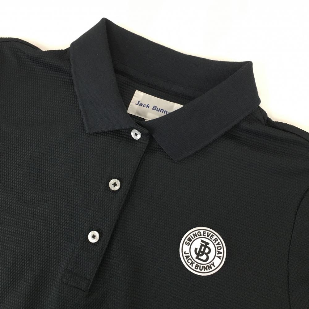ジャックバニー 半袖ポロシャツ ネイビー 織生地 ロゴシリコンワッペン レディース 0(S) ゴルフウェア Jack Bunny