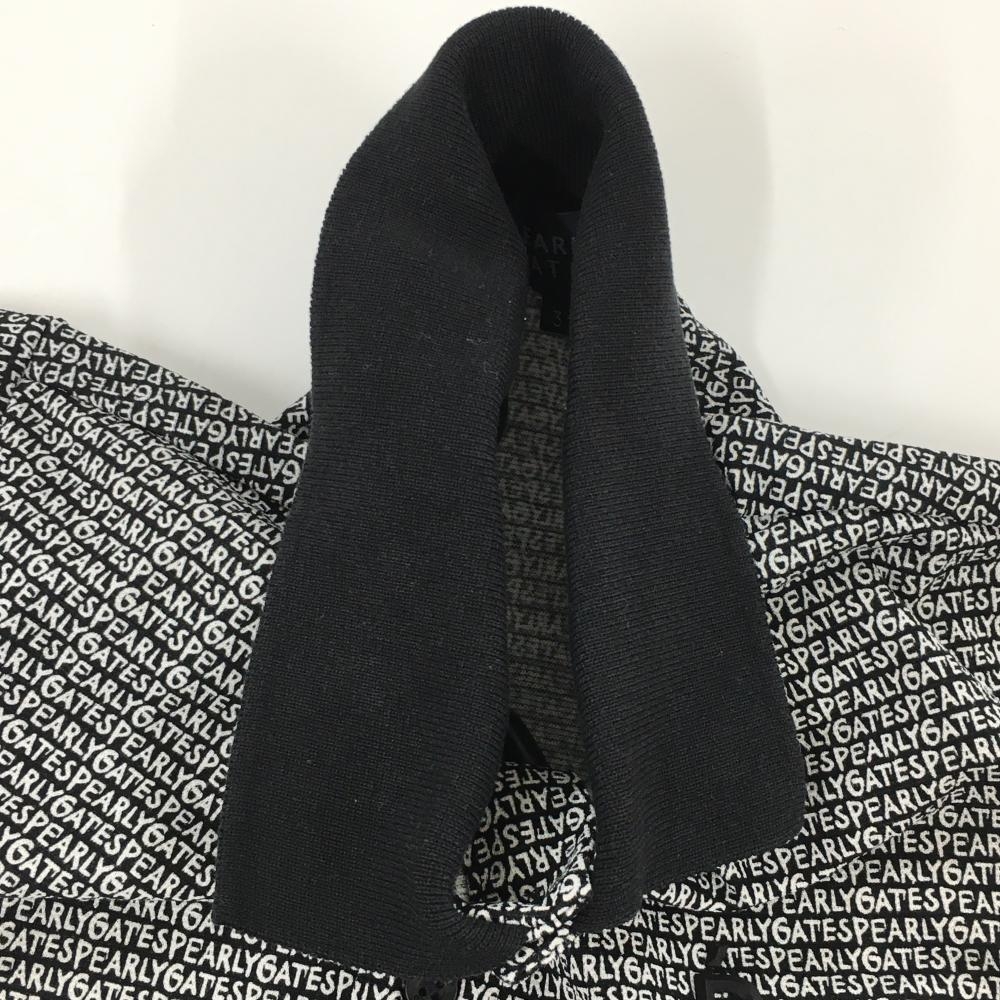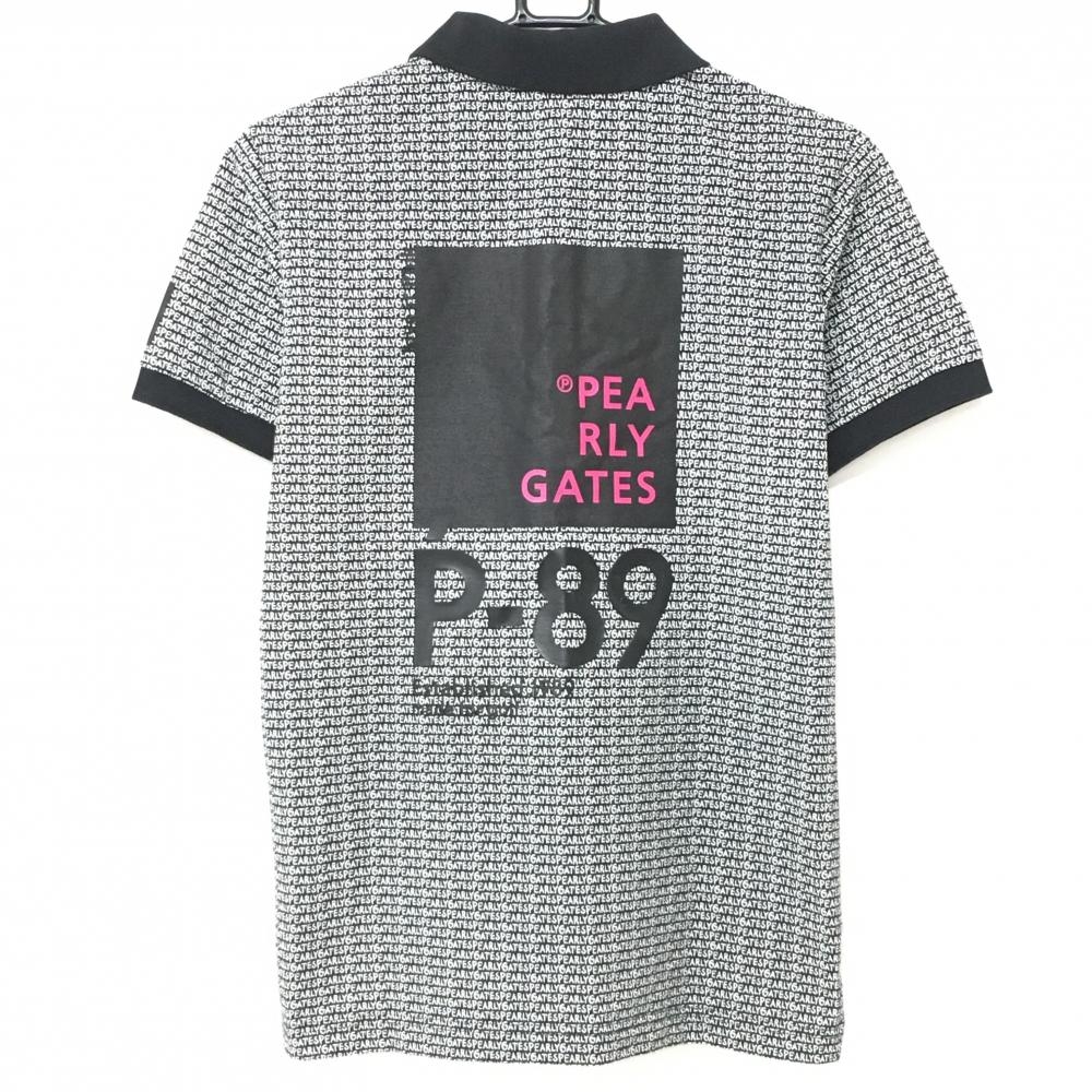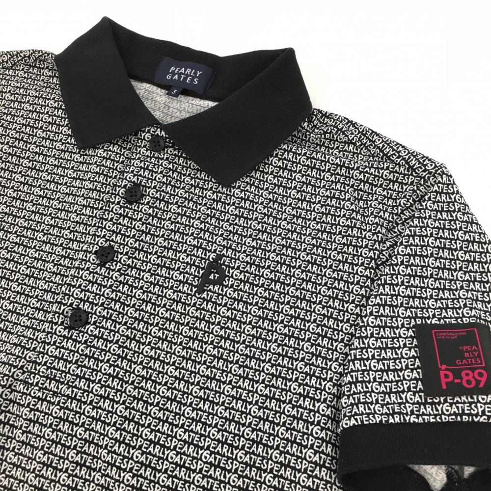 【美品】パーリーゲイツ 半袖ポロシャツ 黒×白 ロゴ総柄 バックプリント 日本製 メンズ 3(S) ゴルフウェア 2023年モデル PEARLY GATES