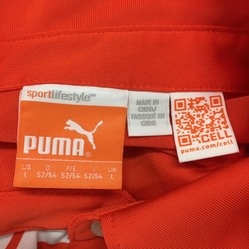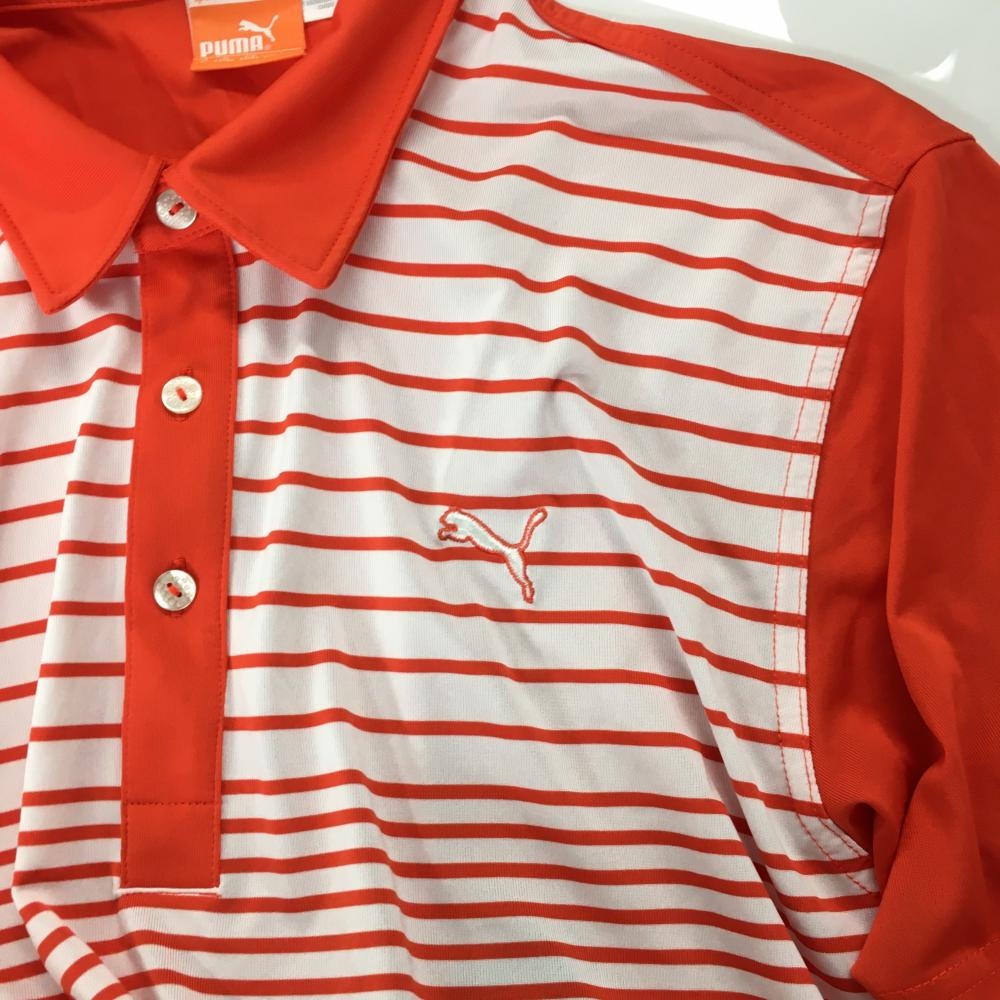 【超美品】プーマ 半袖ポロシャツ オレンジ×白 前ボーダー 胸元ロゴ メンズ US L ゴルフウェア PUMA