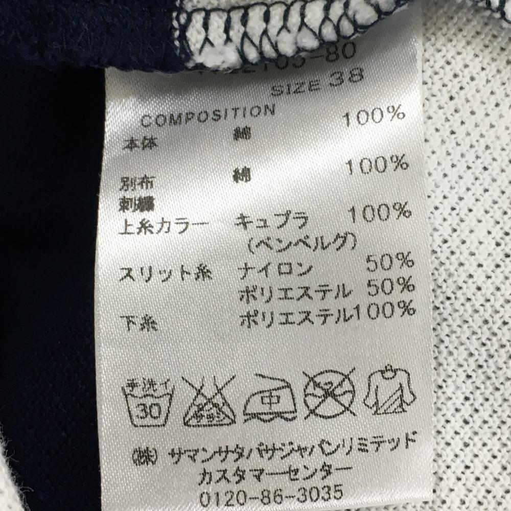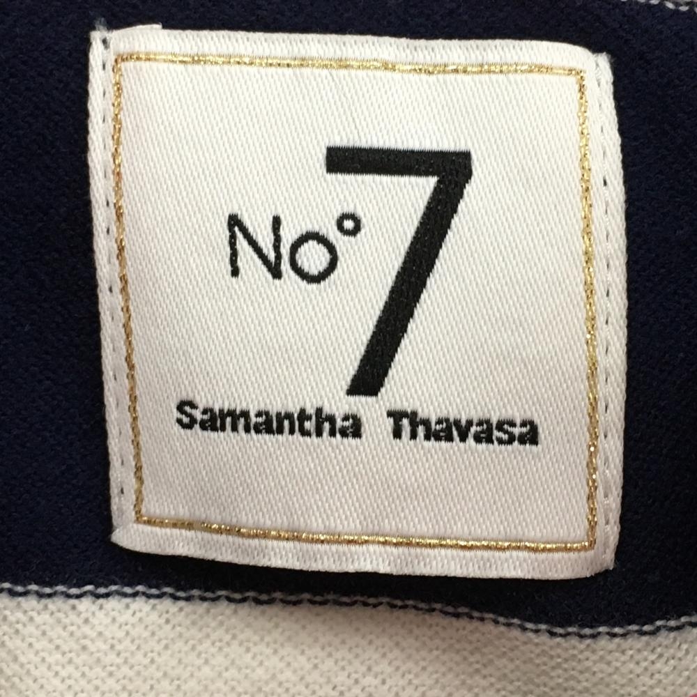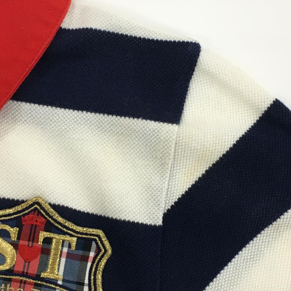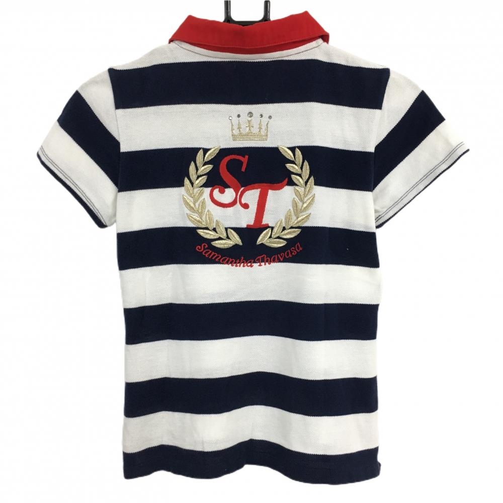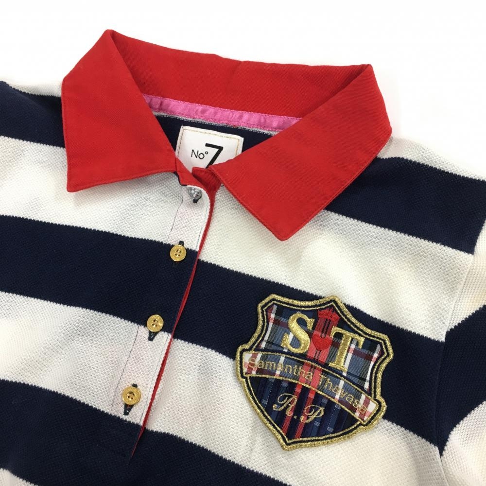 サマンサタバサNo.7 半袖ポロシャツ ネイビー×白 太ボーダー ビッグワッペン レディース 38(M) ゴルフウェア Samantha Thavasa