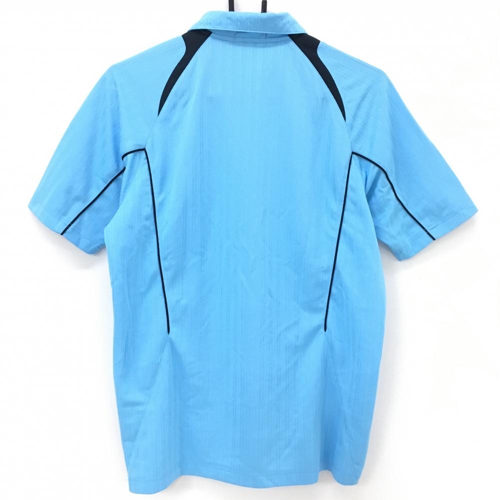 スリクソン 半袖ポロシャツ ライトブルー×黒 ストライプ織生地 ロゴ刺しゅう メンズ M ゴルフウェア SRIXON