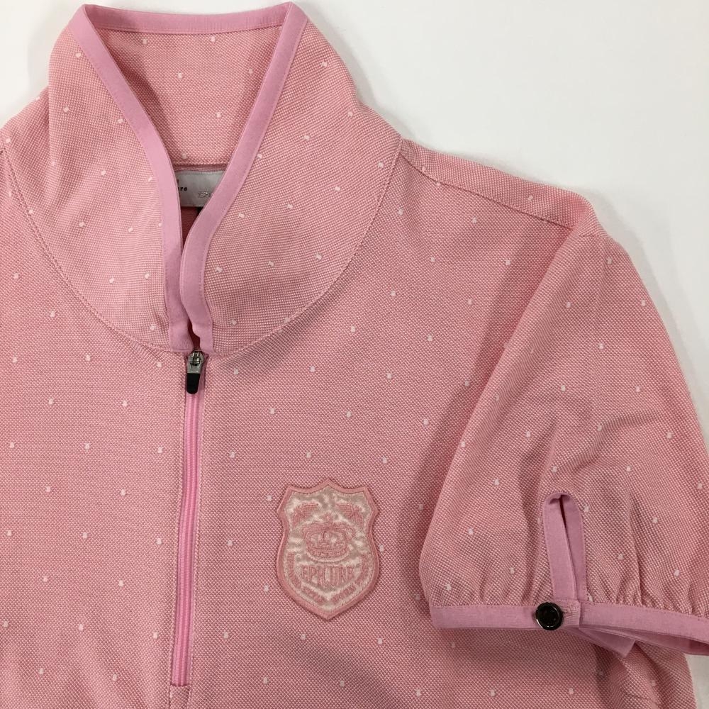 【超美品】エピキュールゴルフ 半袖ポロシャツ ピンク×白 ドット ハーフジップ レディース O ゴルフウェア EPICURE GOLF