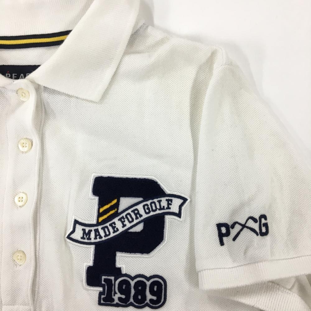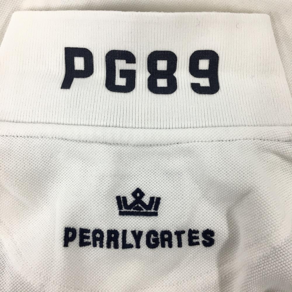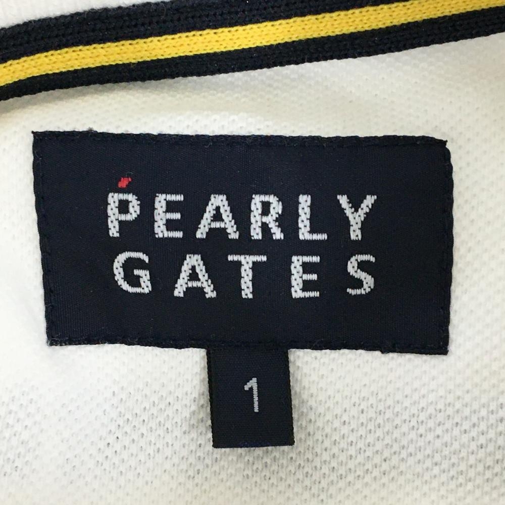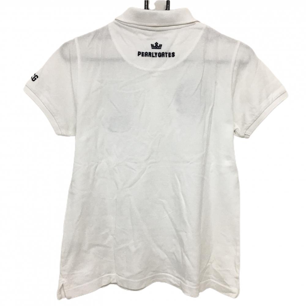 パーリーゲイツ 半袖ポロシャツ 白×ネイビー 襟裏プリント パイル地ワッペン コットン100% レディース 1(M) ゴルフウェア PEARLY GATES