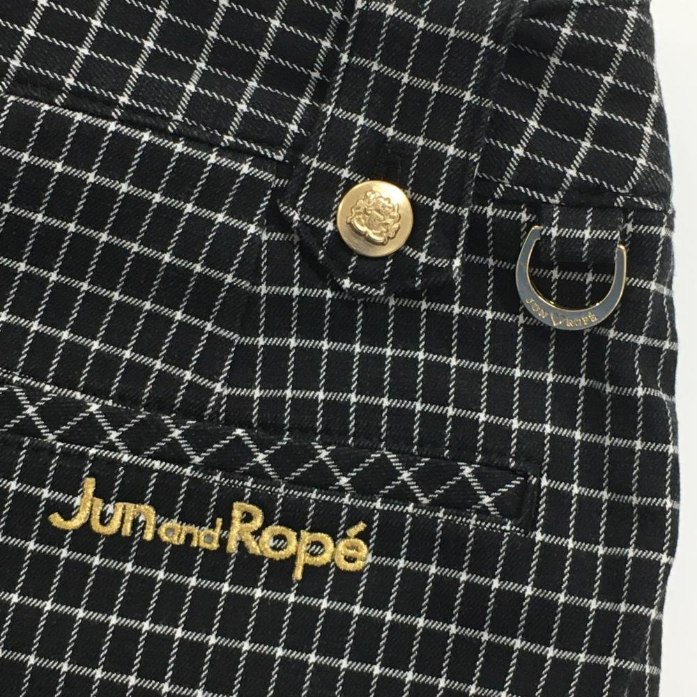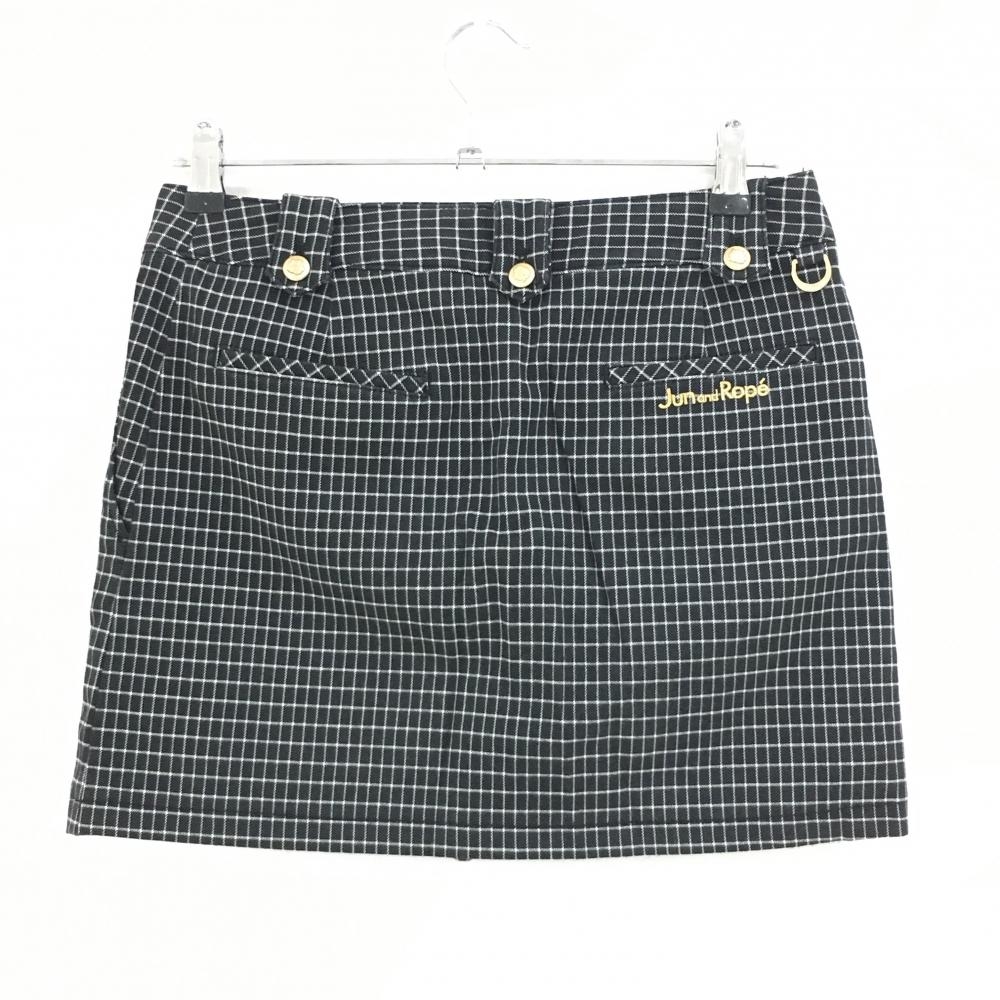 【美品】ジュンアンドロペ スカート 黒×白 チェック 内側インナーパンツ レディース L ゴルフウェア JUN&ROPE