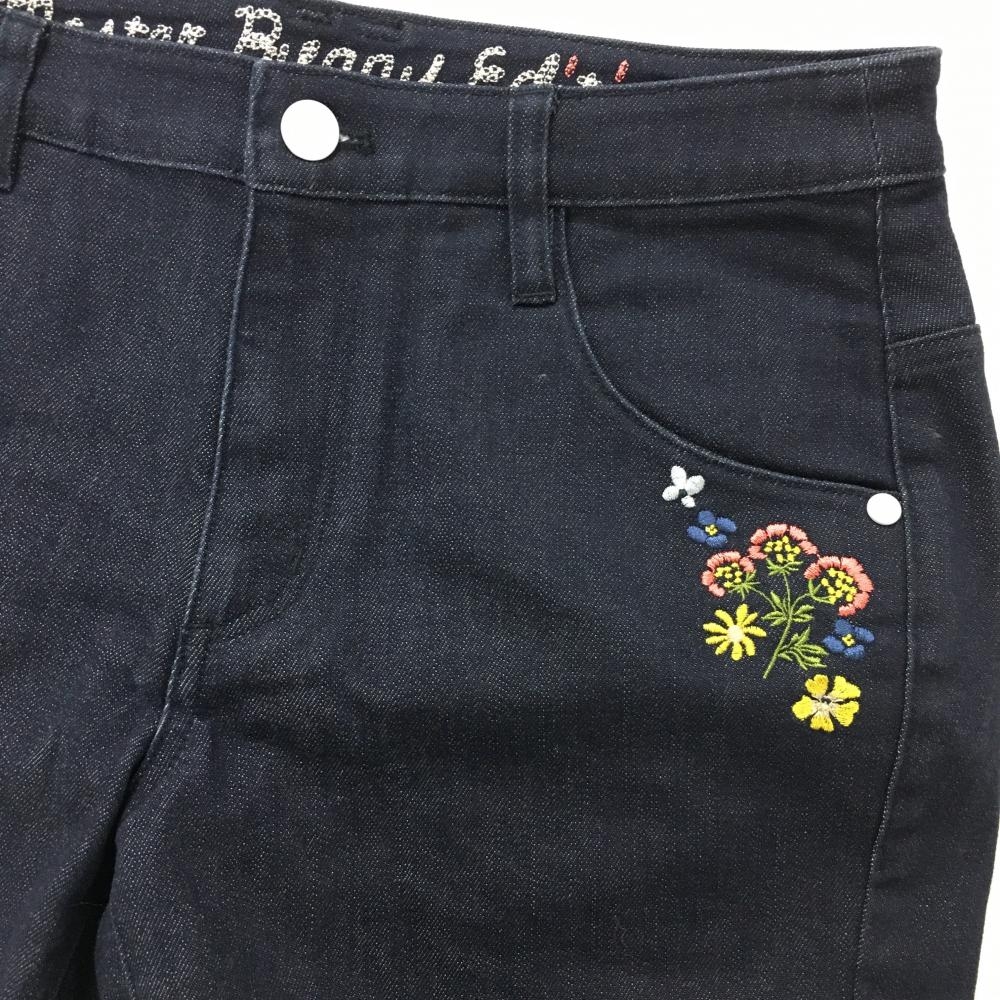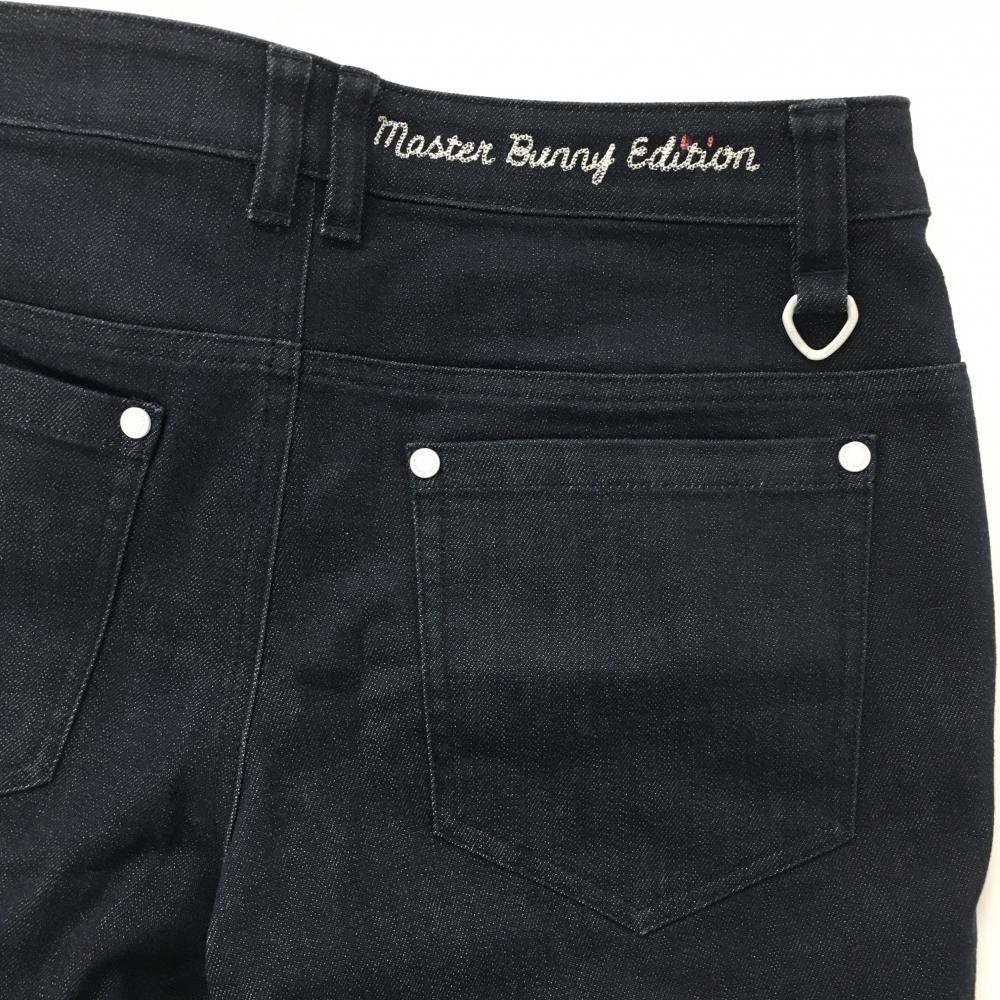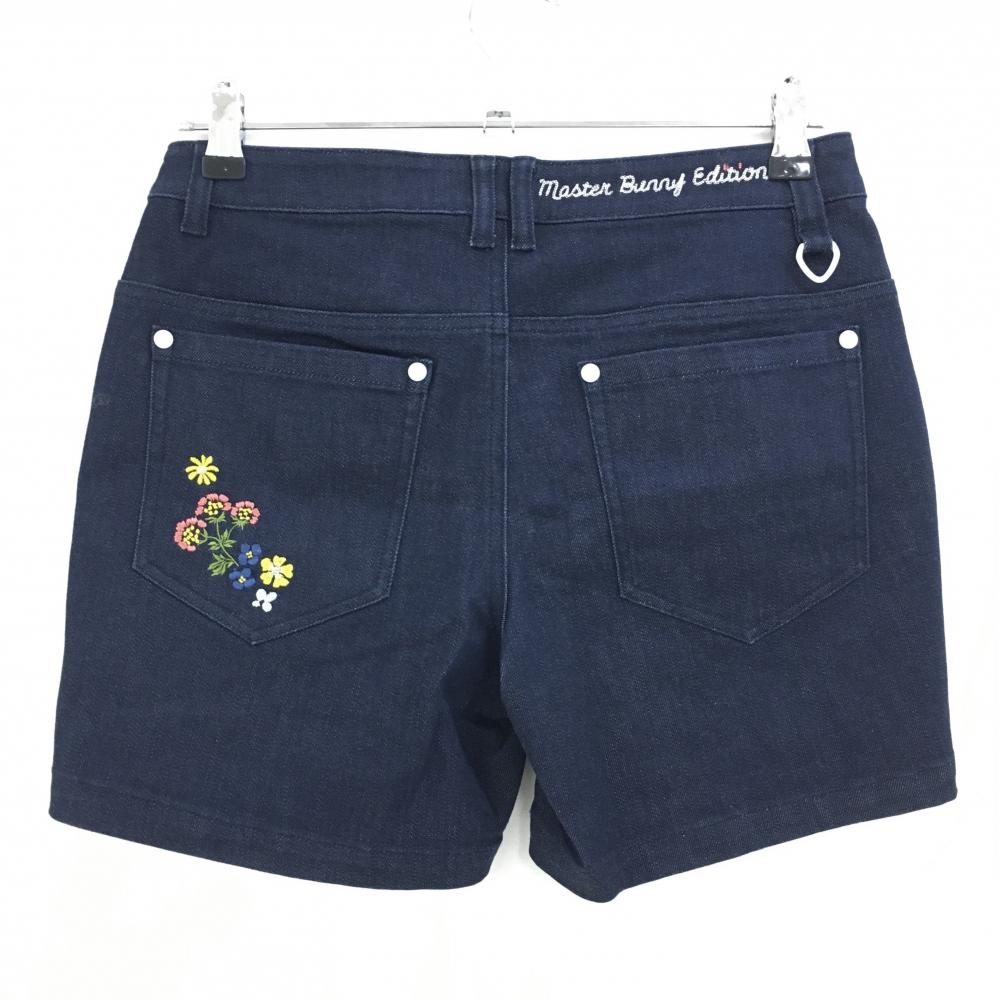 【超美品】マスターバニー ショートパンツ ネイビー×白 デニム 花刺しゅう レディース 1(M) ゴルフウェア MASTER BUNNY EDITION