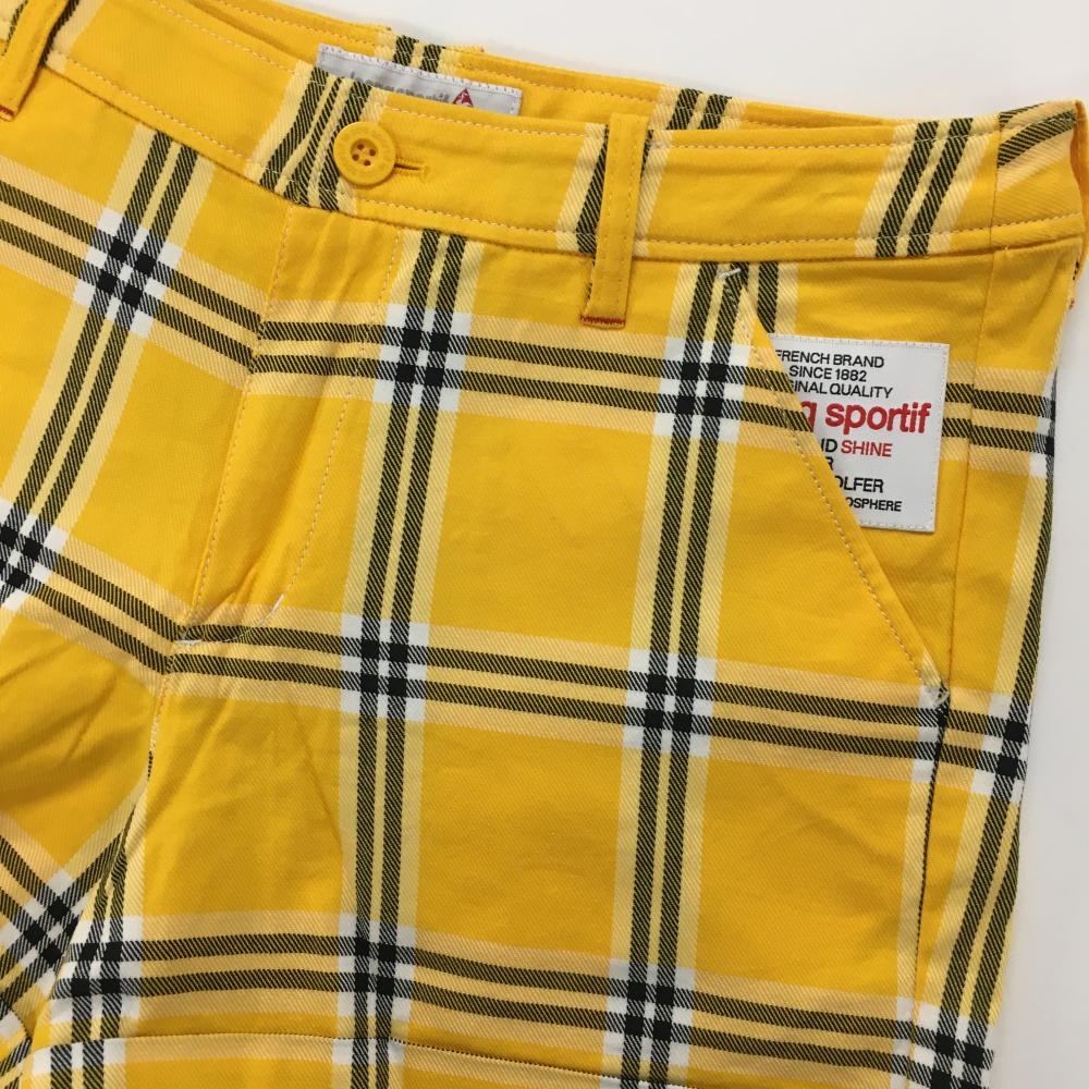 【超美品】ルコック ショートパンツ イエロー×黒 チェック レディース 11 ゴルフウェア le coq sportif