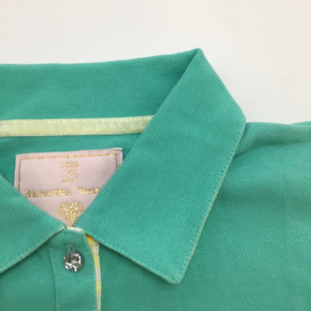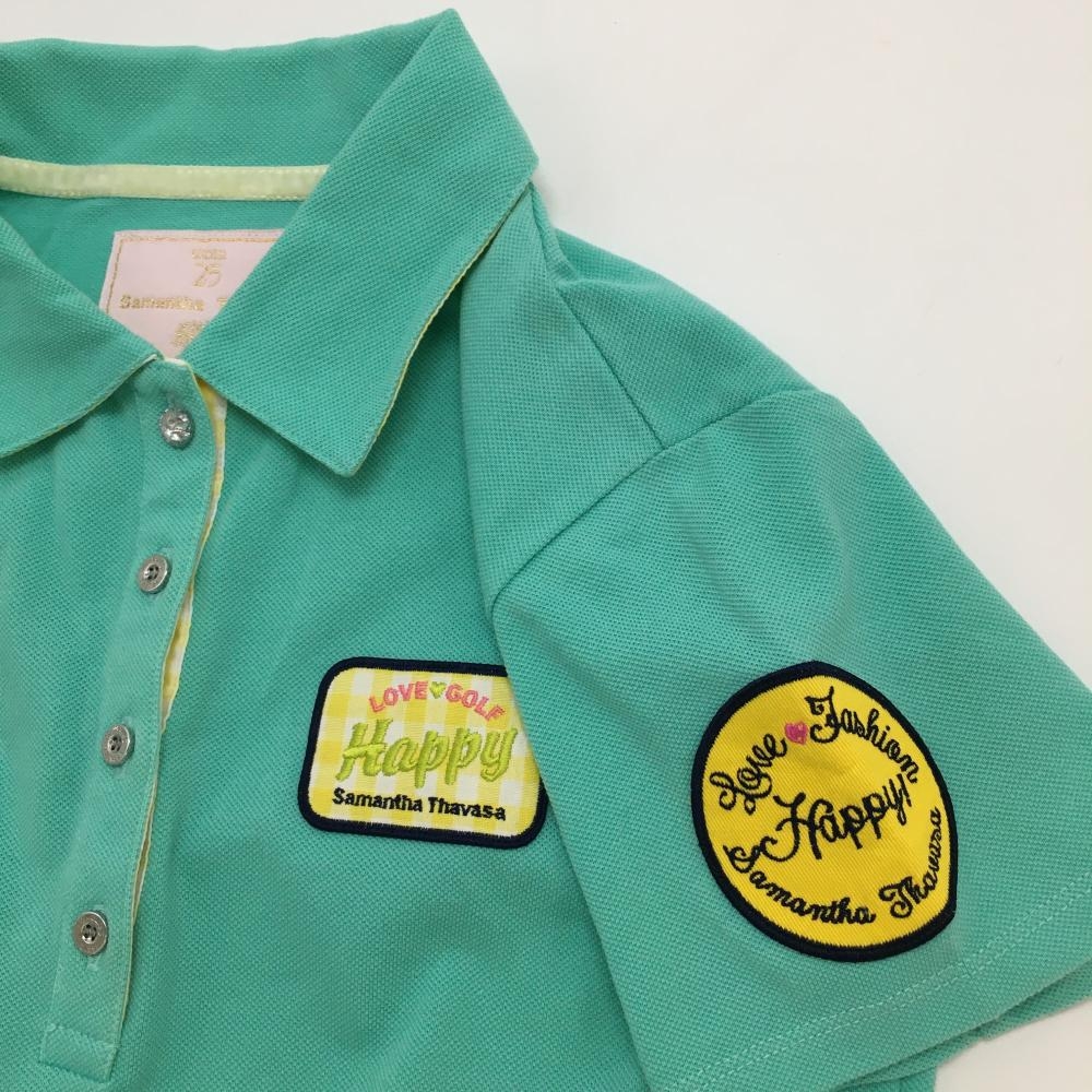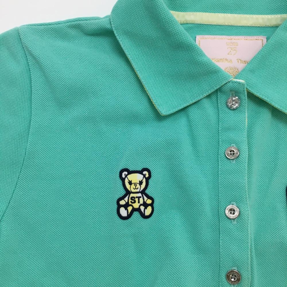 サマンサタバサ UNDER25 半袖ポロシャツ ミントグリーン×イエロー ロゴワッペン クマ レディース M ゴルフウェア Samantha Thavasa