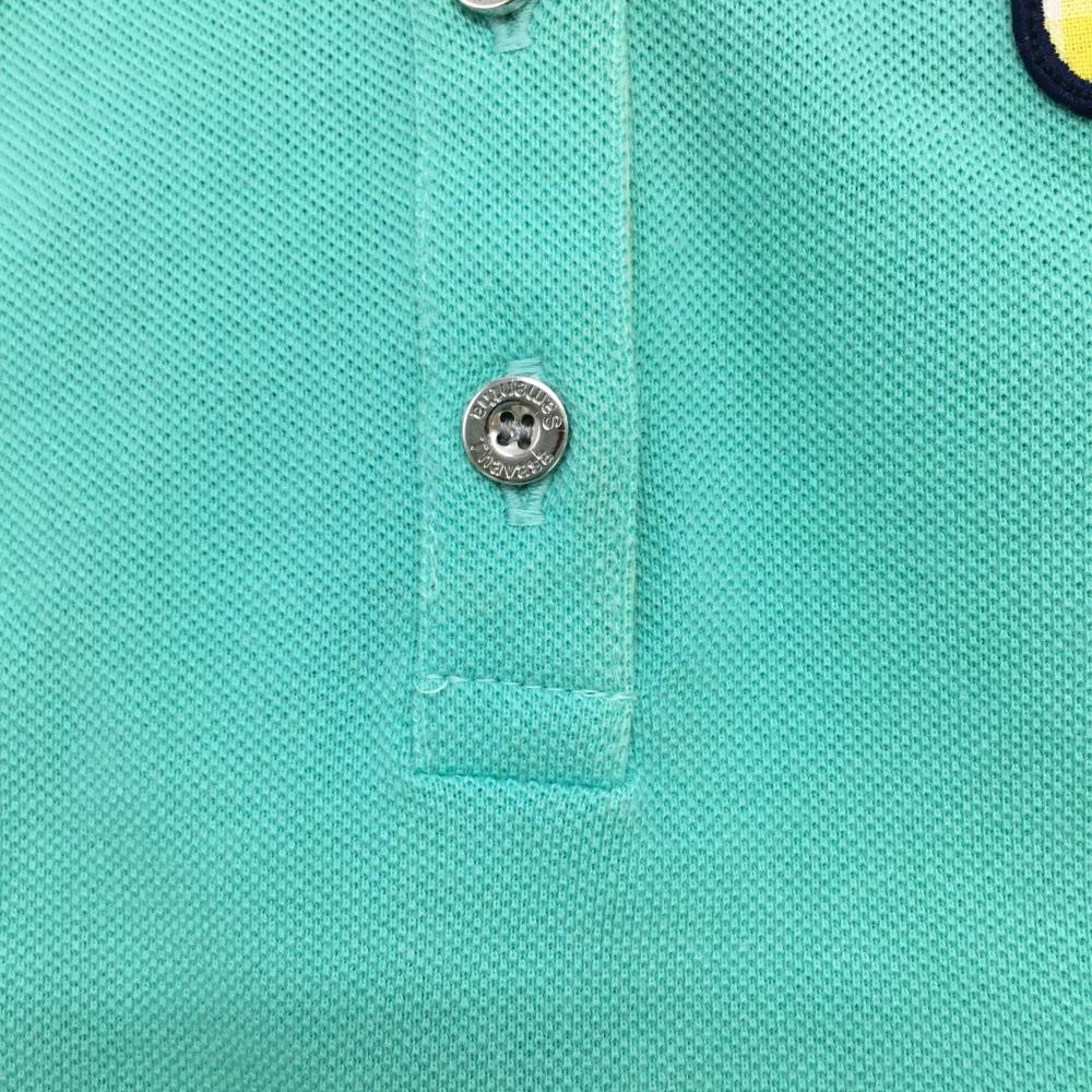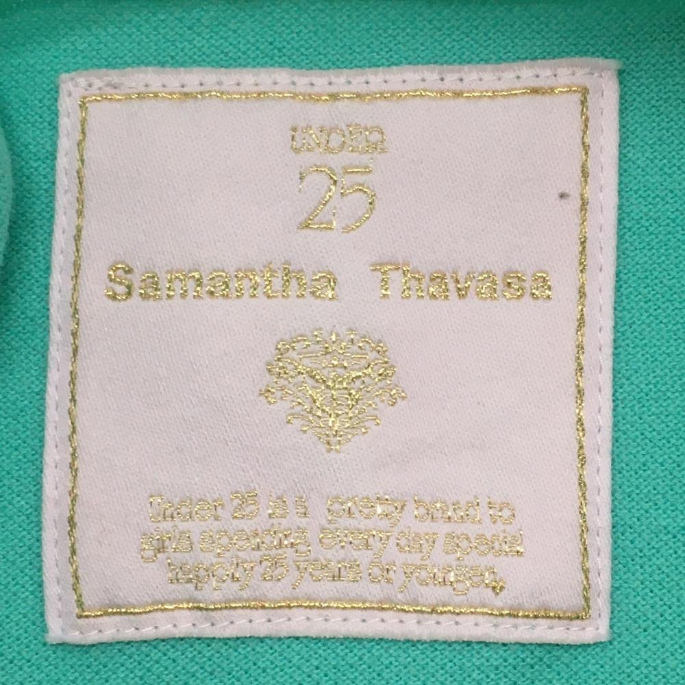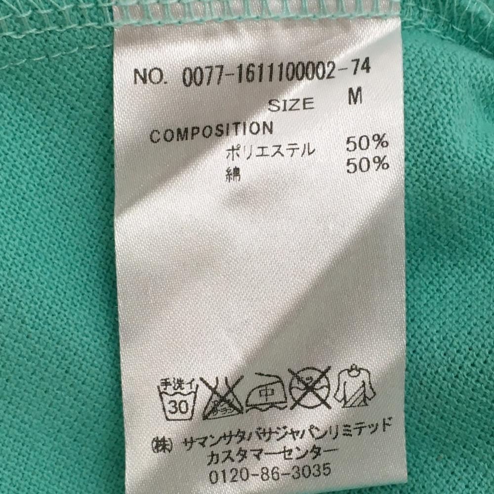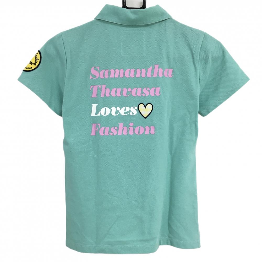 サマンサタバサ UNDER25 半袖ポロシャツ ミントグリーン×イエロー ロゴワッペン クマ レディース M ゴルフウェア Samantha Thavasa