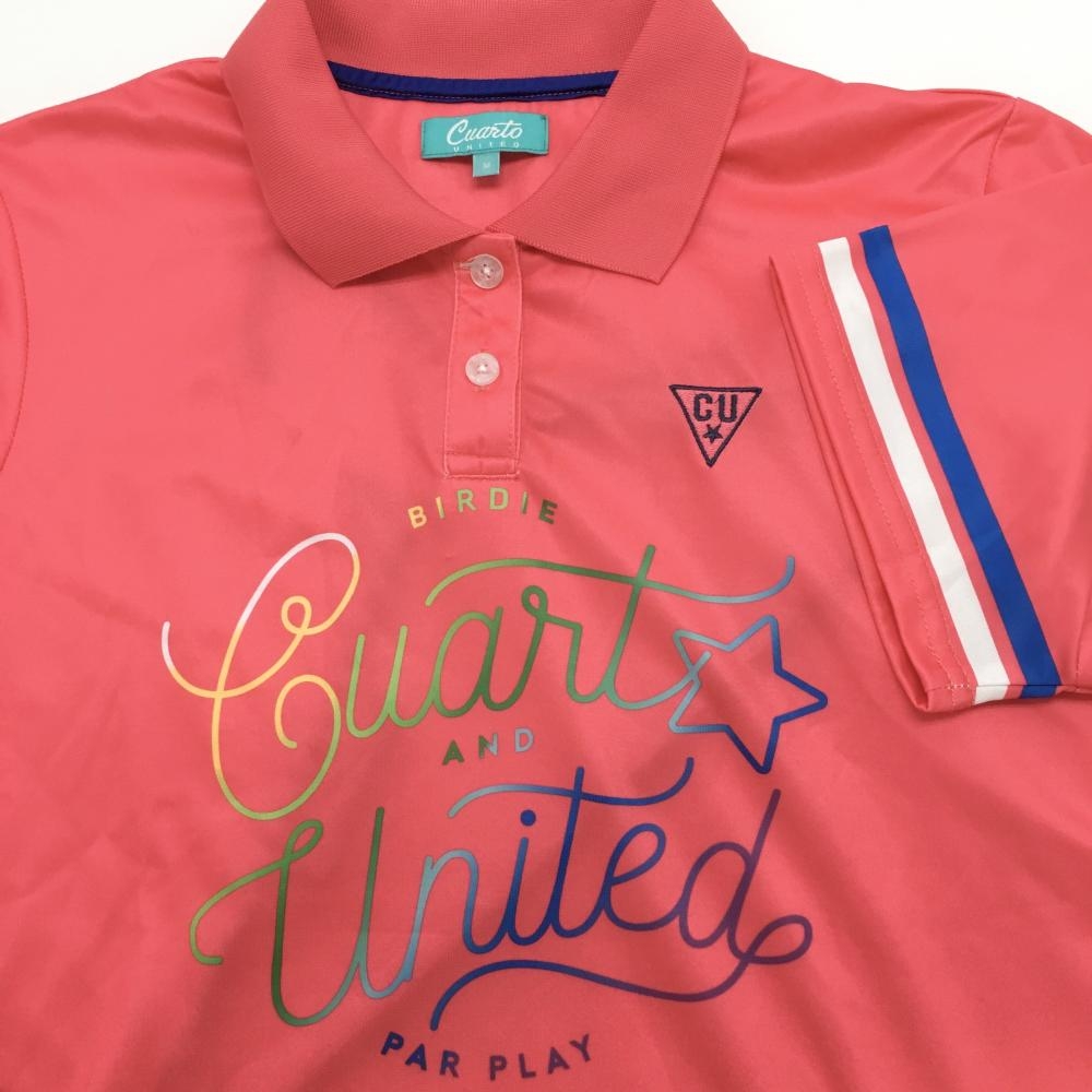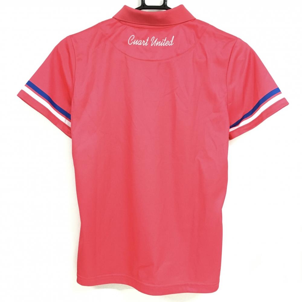【超美品】クアルトユナイテッド 半袖ポロシャツ ピンク×ブルー 袖2ライン フロンとロゴ レディース M ゴルフウェア CUARTO UNITED
