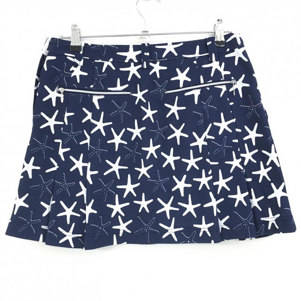 【超美品】アダバット スカート ネイビー×白 ヒトデ柄 レディース 40(L) ゴルフウェア adabat