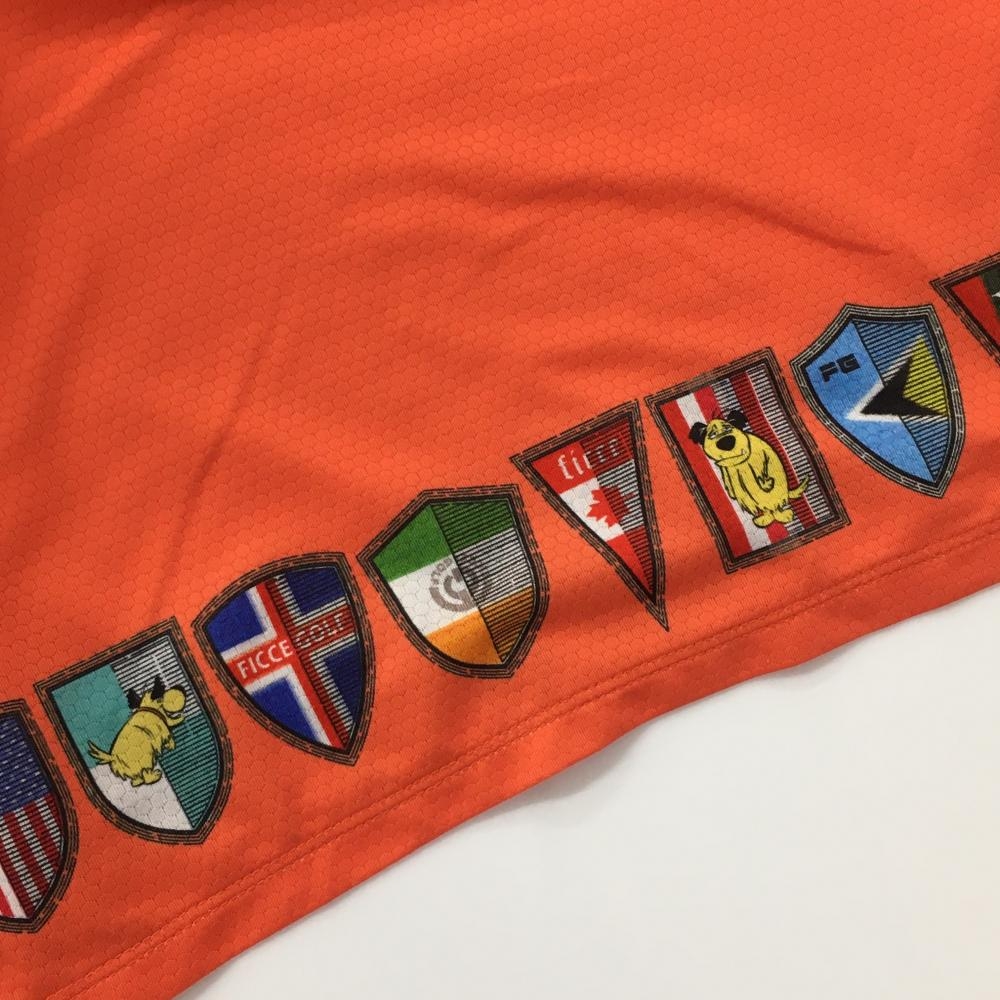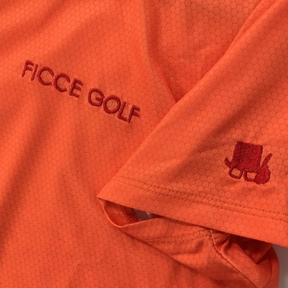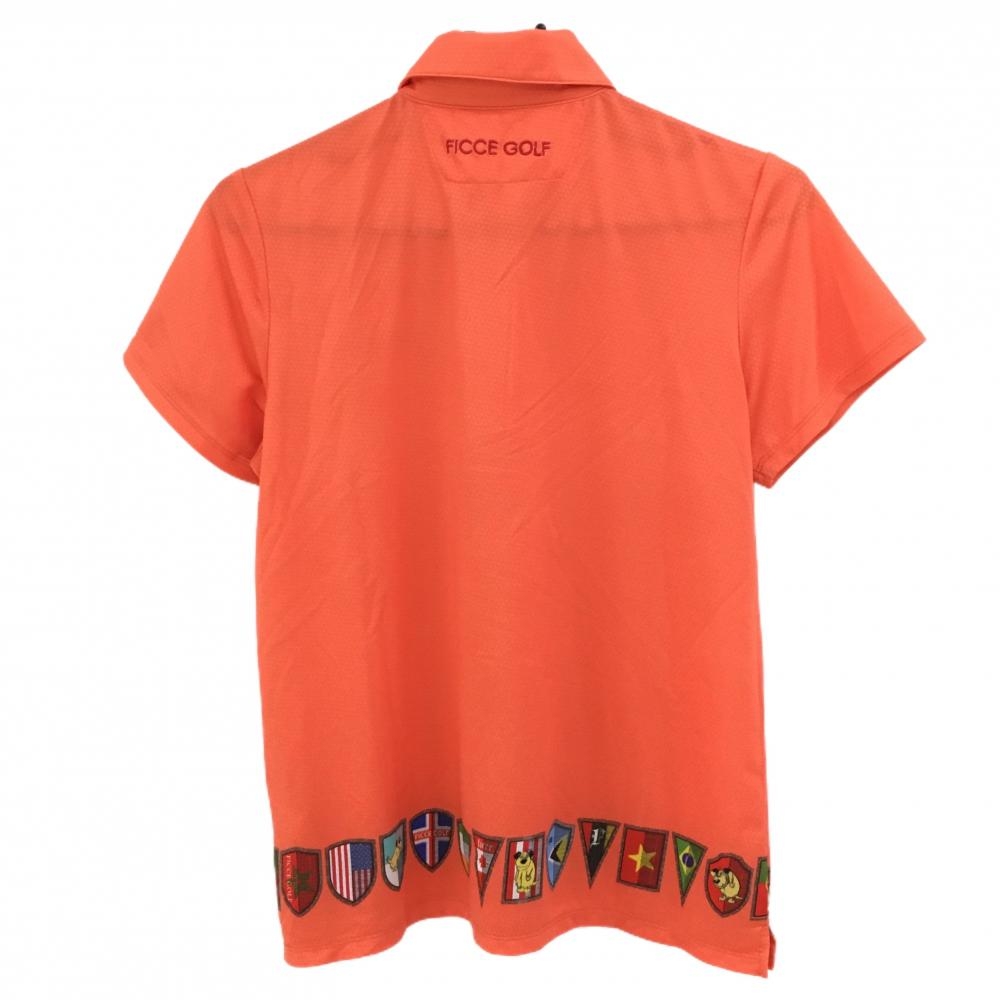 【超美品】フィッチェゴルフ 半袖ポロシャツ オレンジ 裾国旗柄 レディース L ゴルフウェア FICCE GOLF