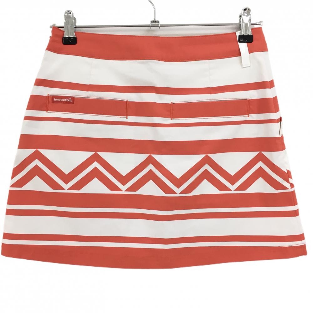 【超美品】ルコックゴルフ スカート 白×オレンジ ボーダー ストレッチ レディース 9 ゴルフウェア le coq sportif