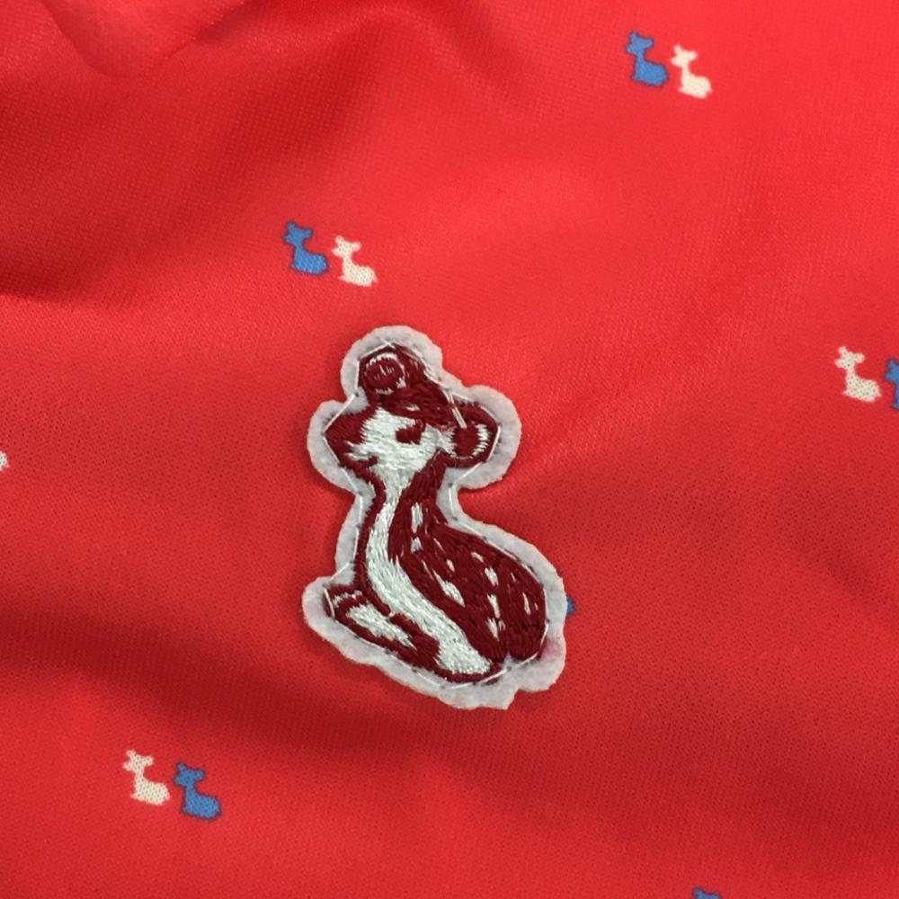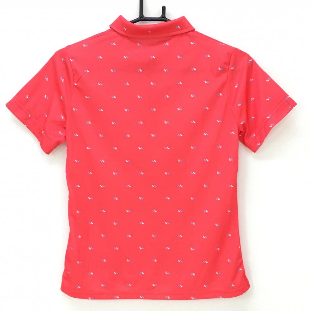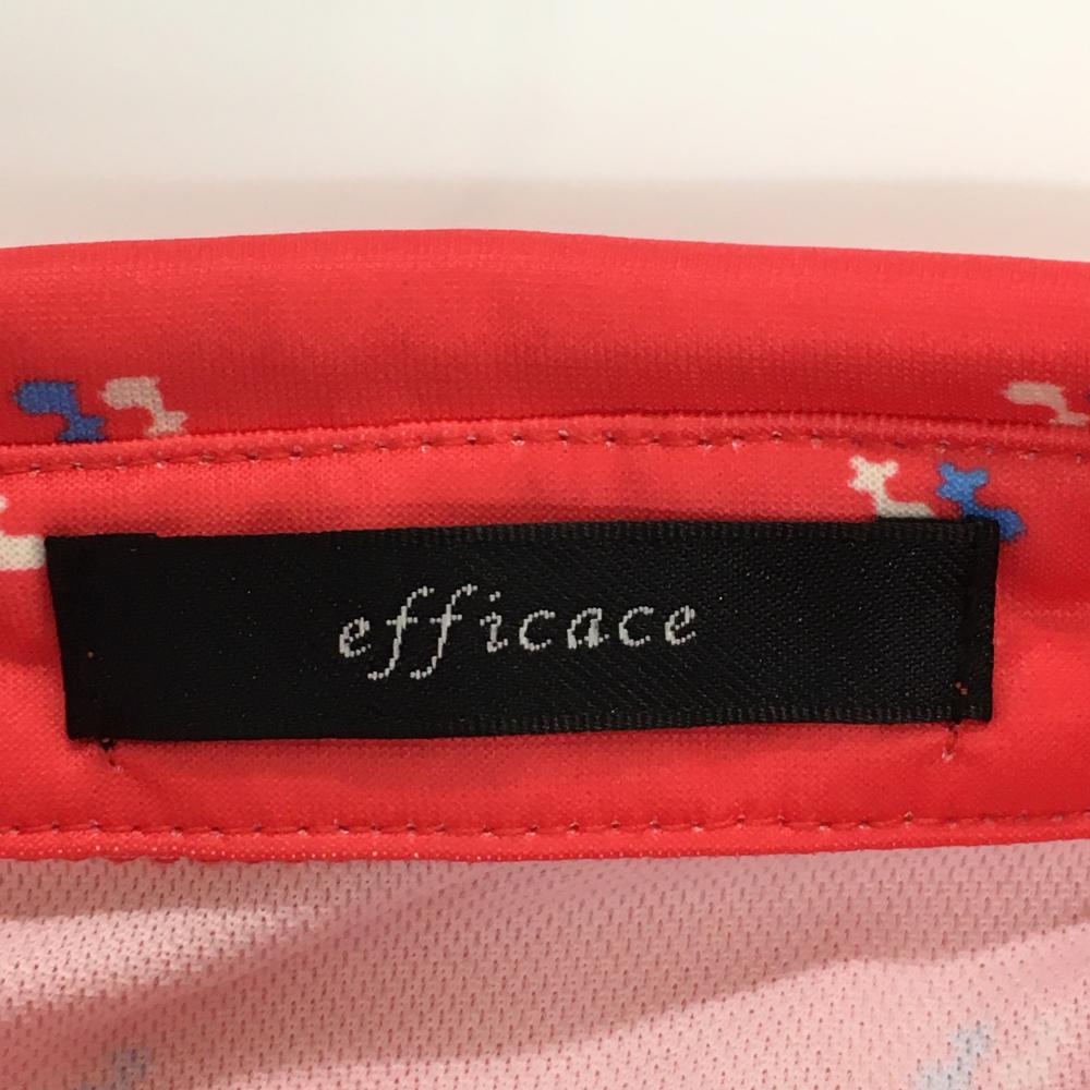 【超美品】エフィカス 半袖ポロシャツ レッドピンク×白 鹿総柄 胸元ワッペン レディース M ゴルフウェア efficace
