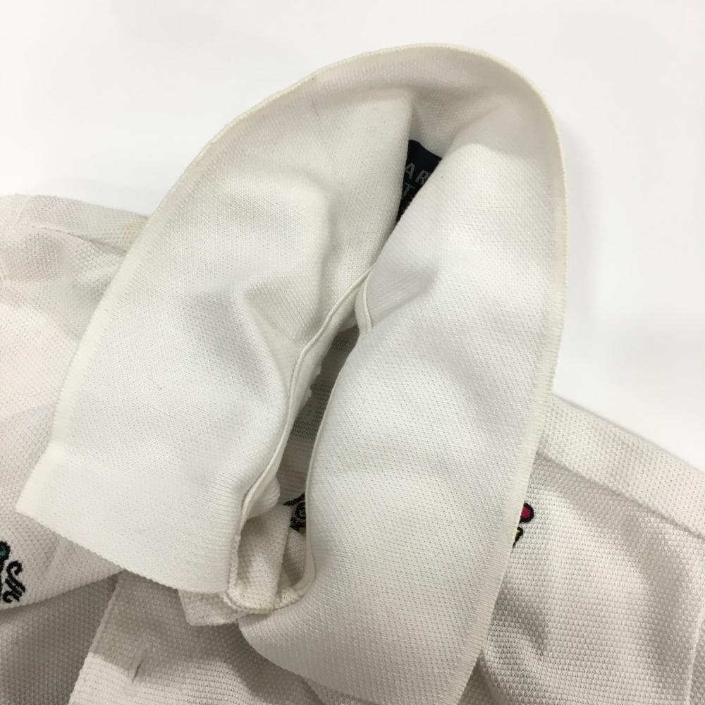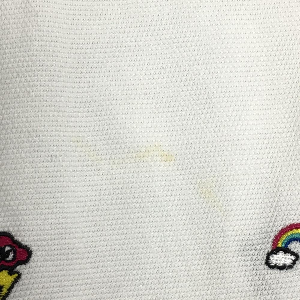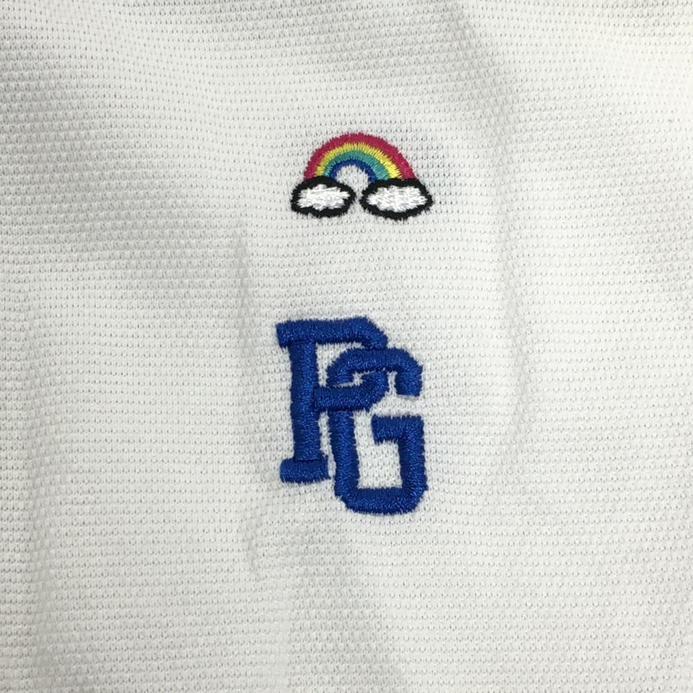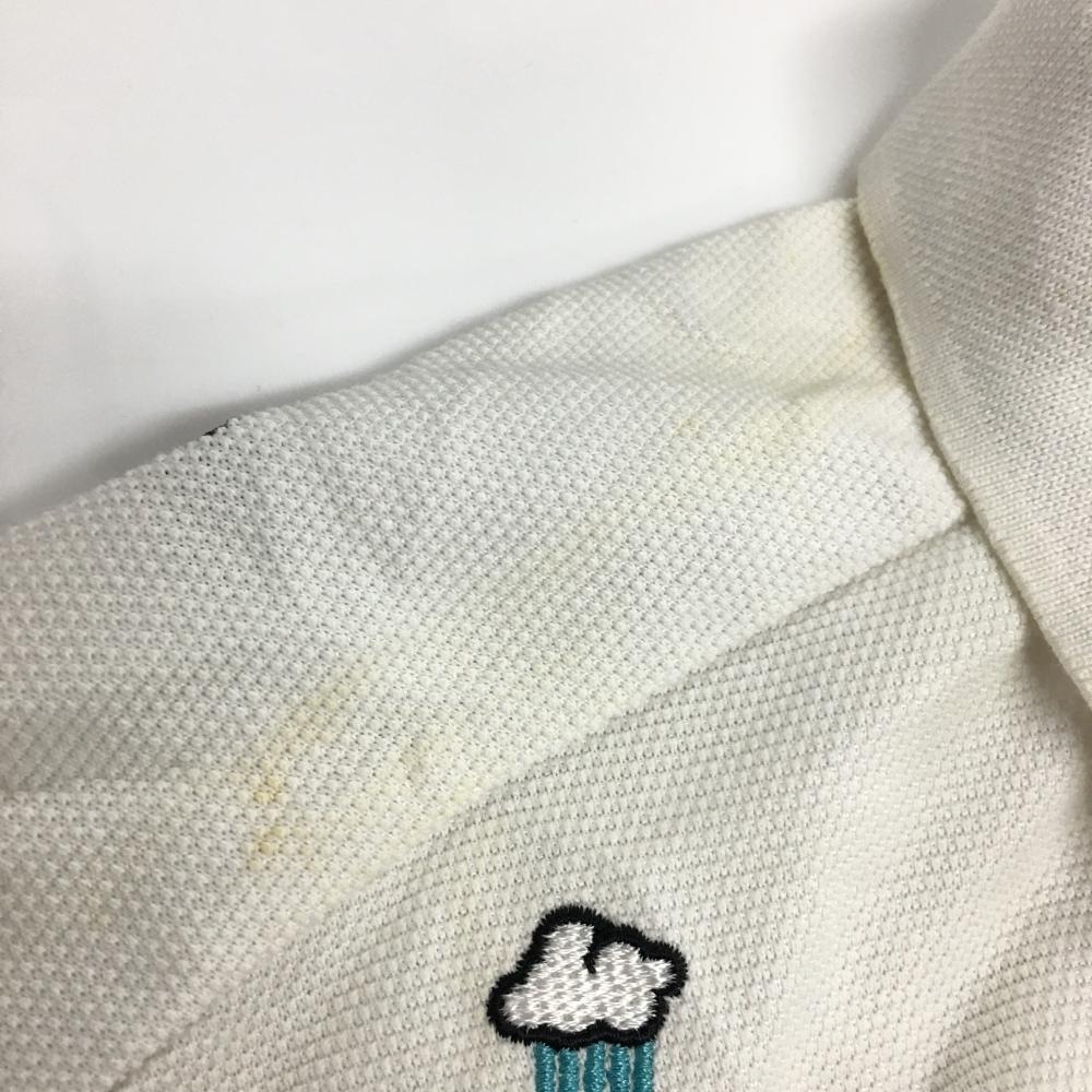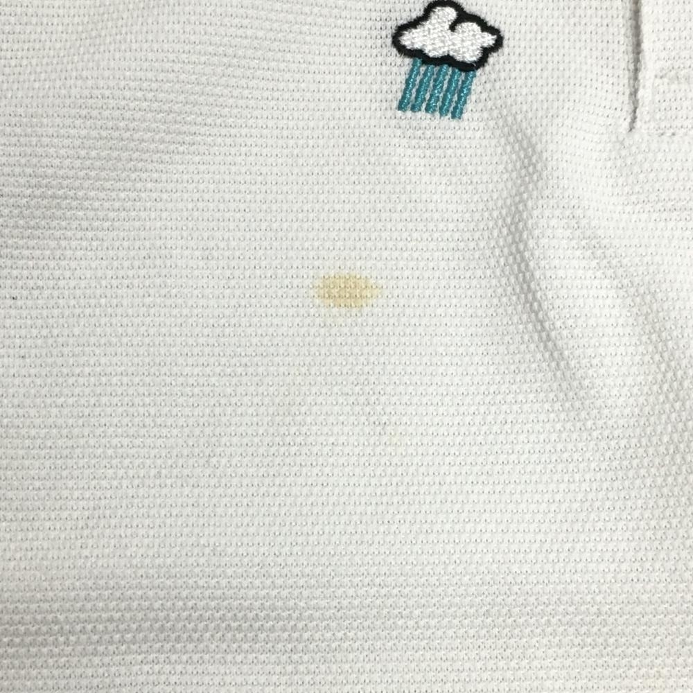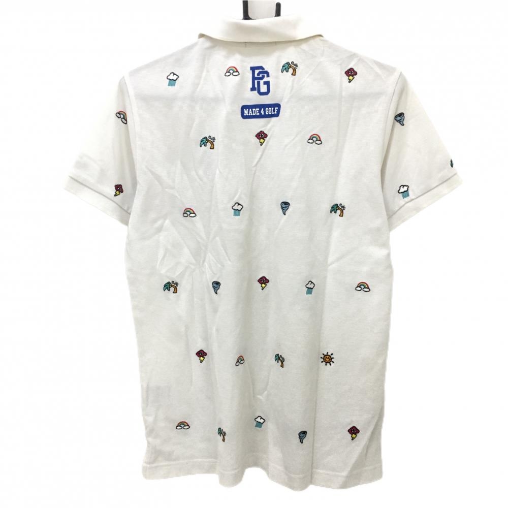 パーリーゲイツ 半袖ポロシャツ 白×マルチ ウェザー柄刺しゅう 日本製 メンズ 5(L) ゴルフウェア PEARLY GATES