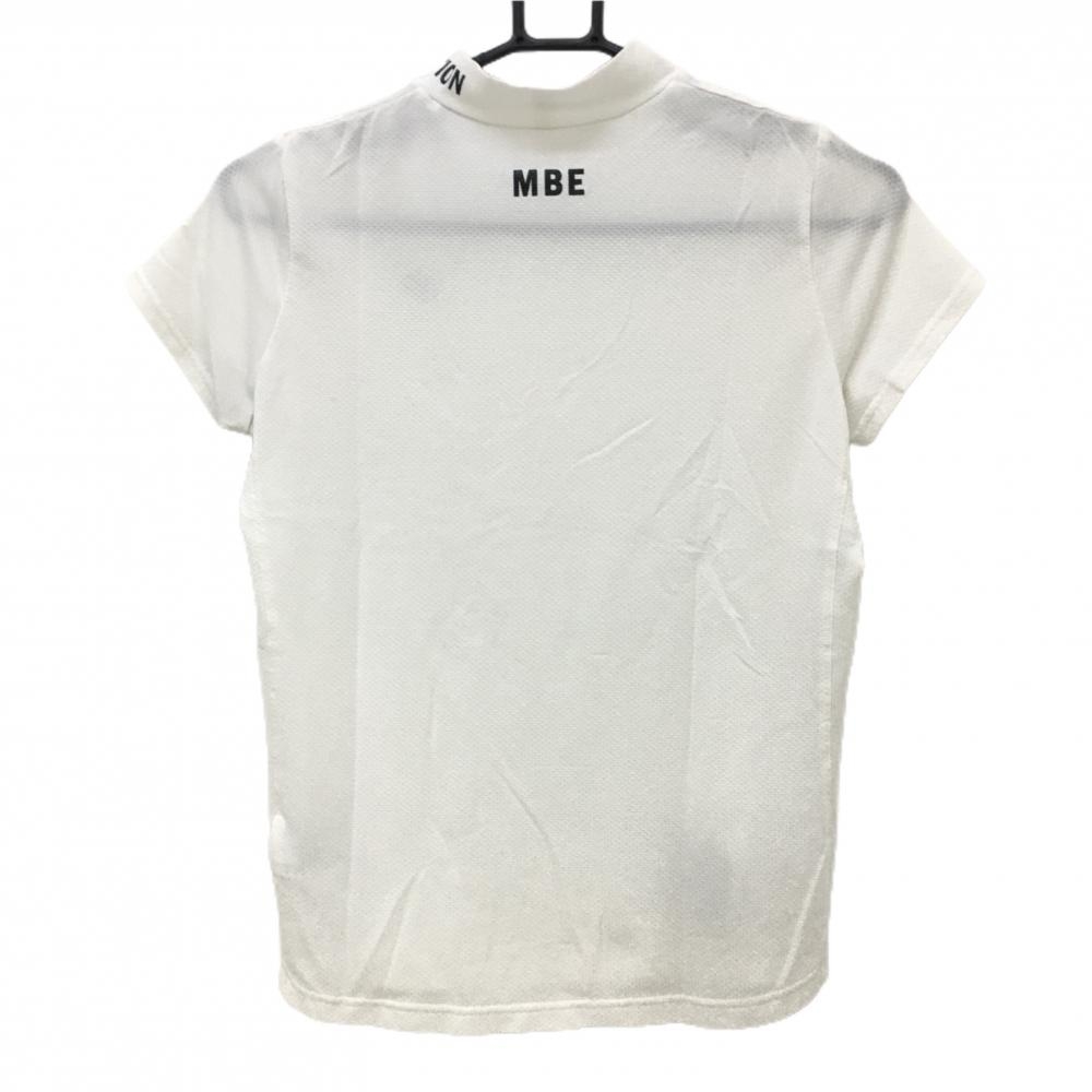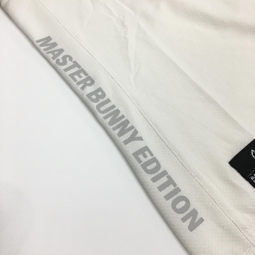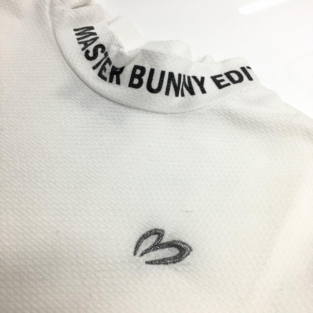 【美品】マスターバニー 半袖ハイネックシャツ 白×黒 織生地ネックロゴ レディース 0(S) ゴルフウェア 2022年モデル MASTER BUNNY EDITION