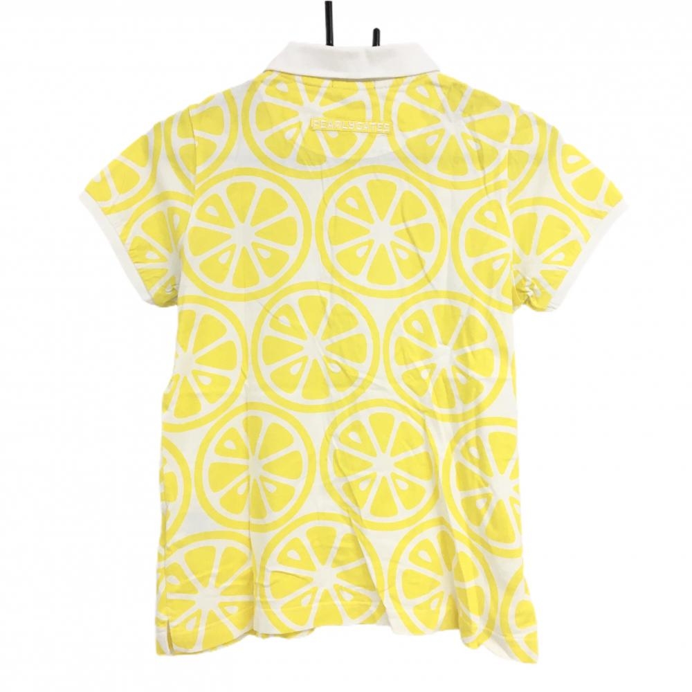 パーリーゲイツ 半袖ポロシャツ イエロー×白 レモン柄 レディース 0(S) ゴルフウェア PEARLY GATES