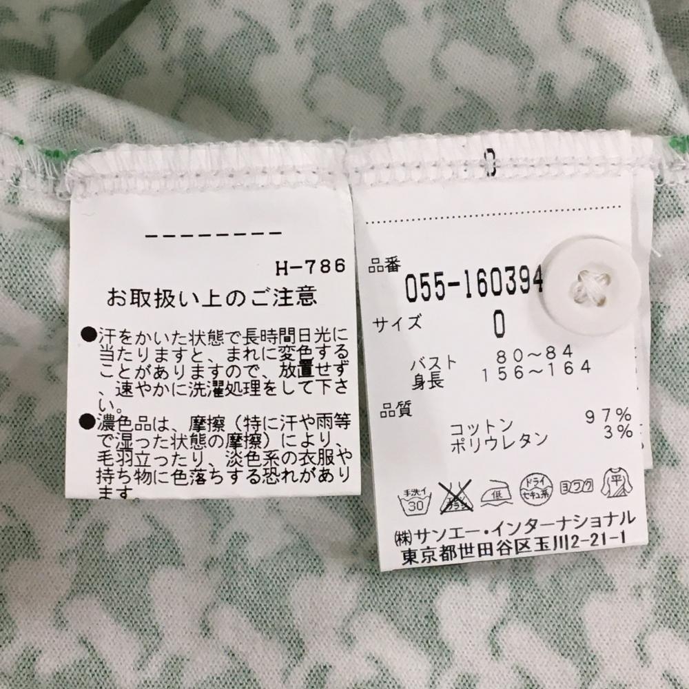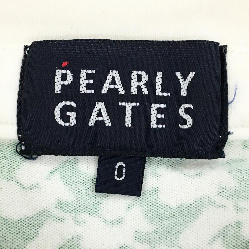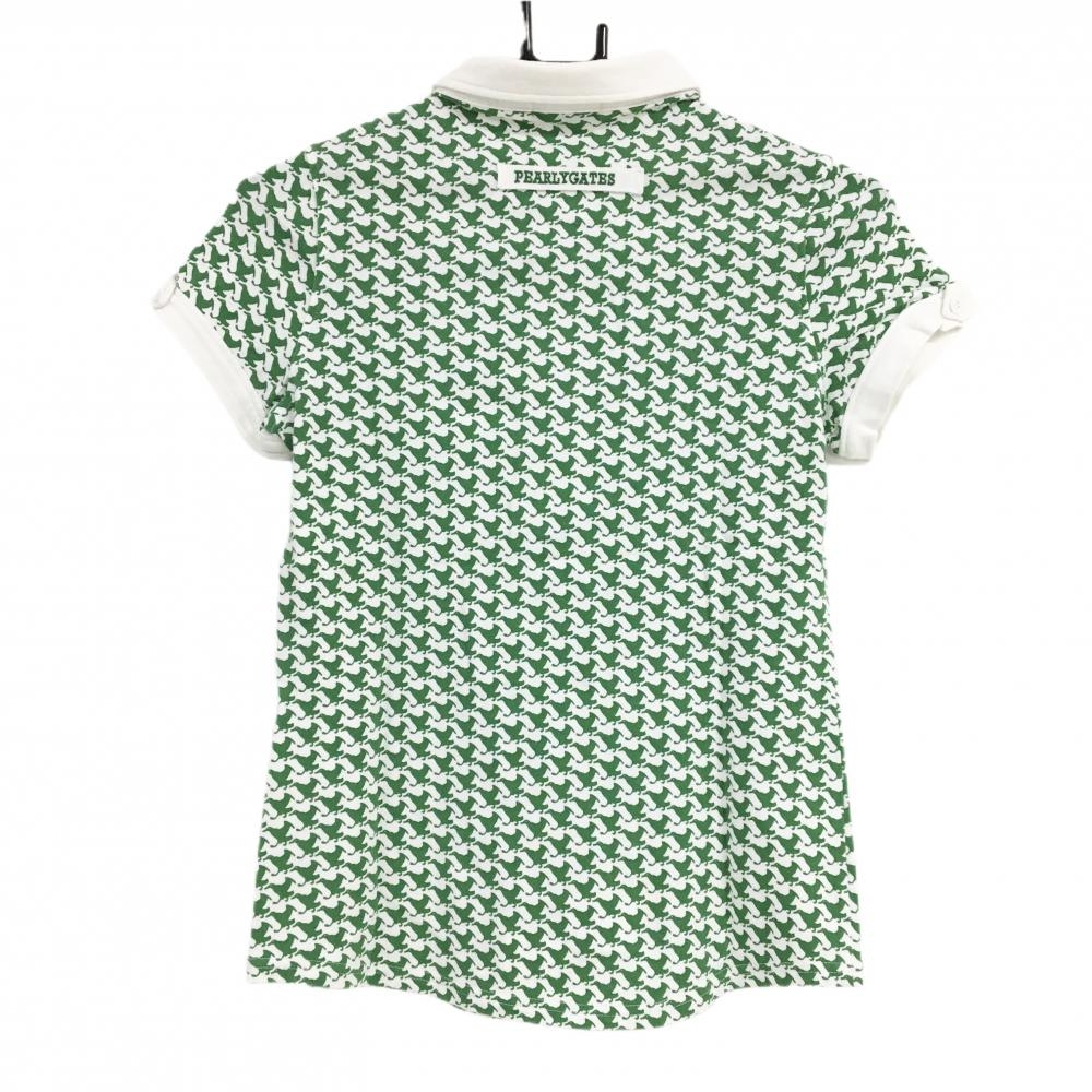 【美品】パーリーゲイツ 半袖ポロシャツ グリーン×白 バード柄 胸ポケット レディース 0(S) ゴルフウェア PEARLY GATES