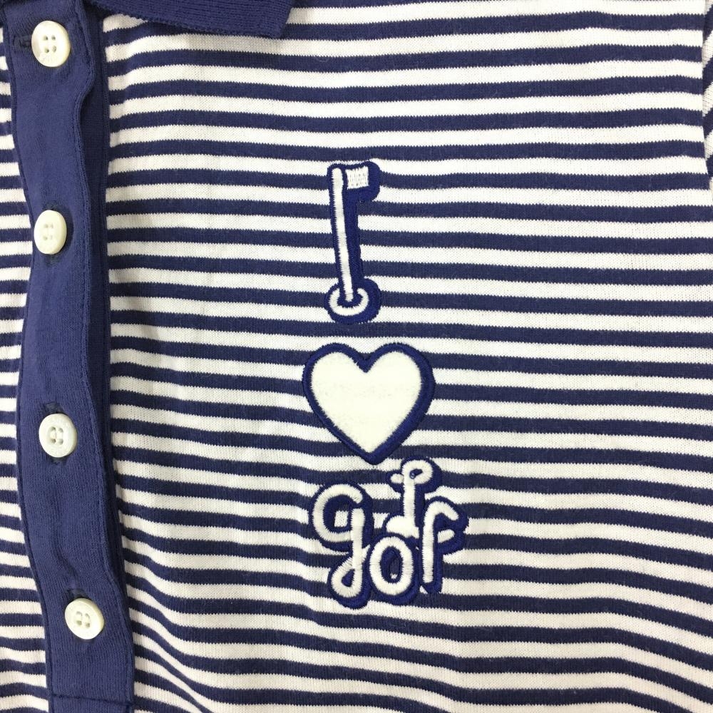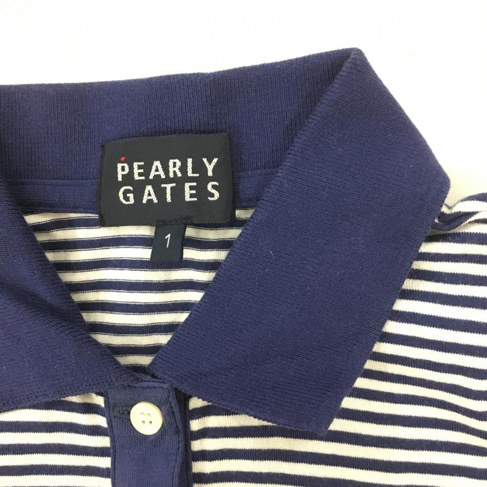 パーリーゲイツ 半袖ポロシャツ 白×ブルー系 ボーダー レディース 1(M) ゴルフウェア PEARLY GATES