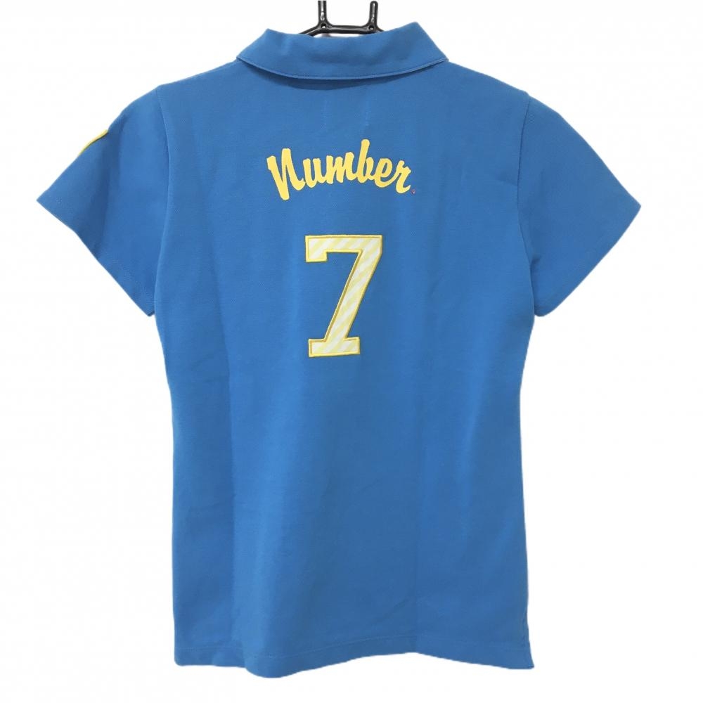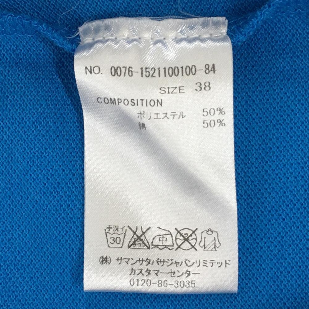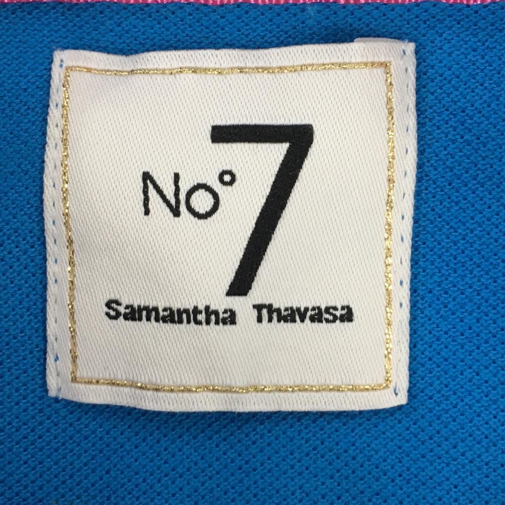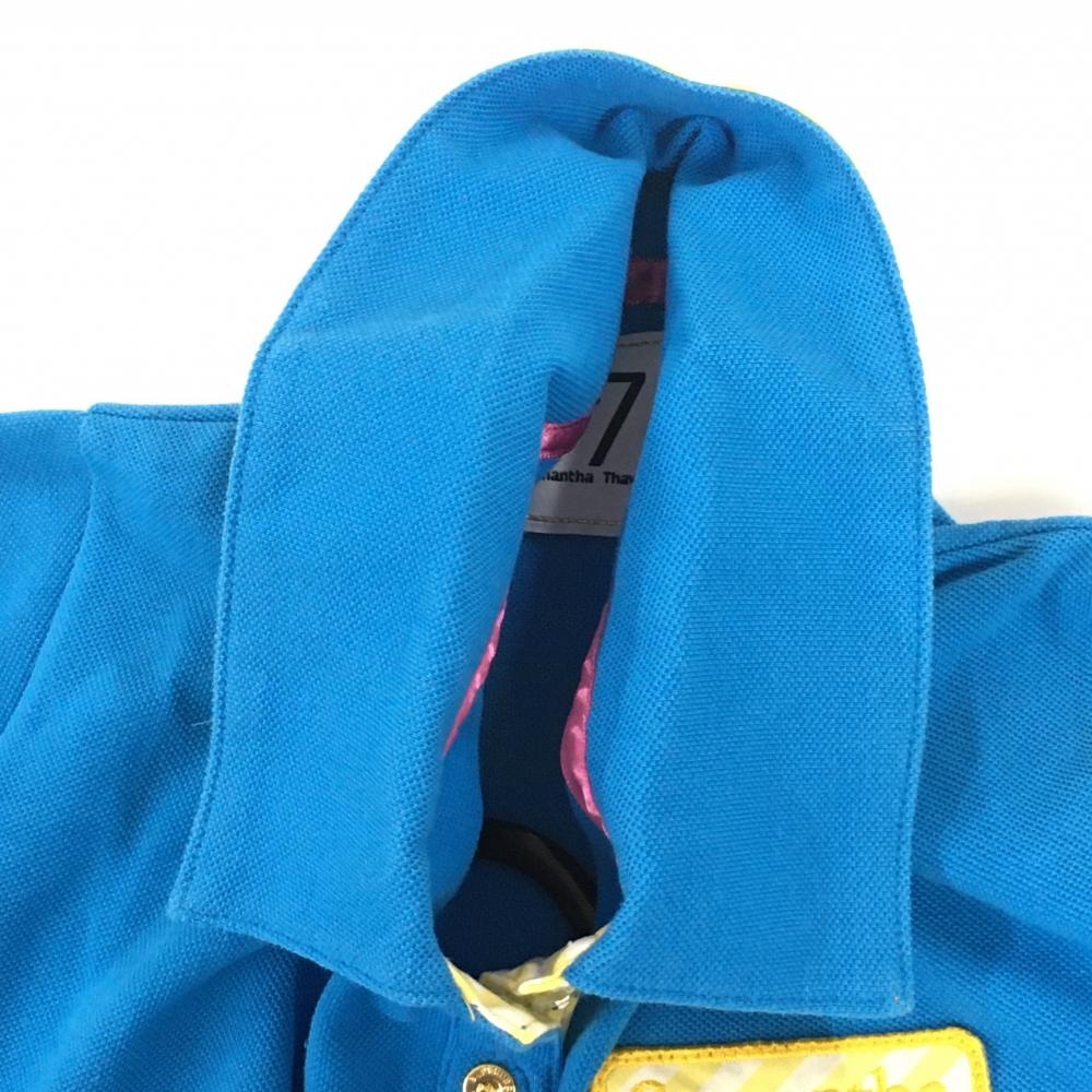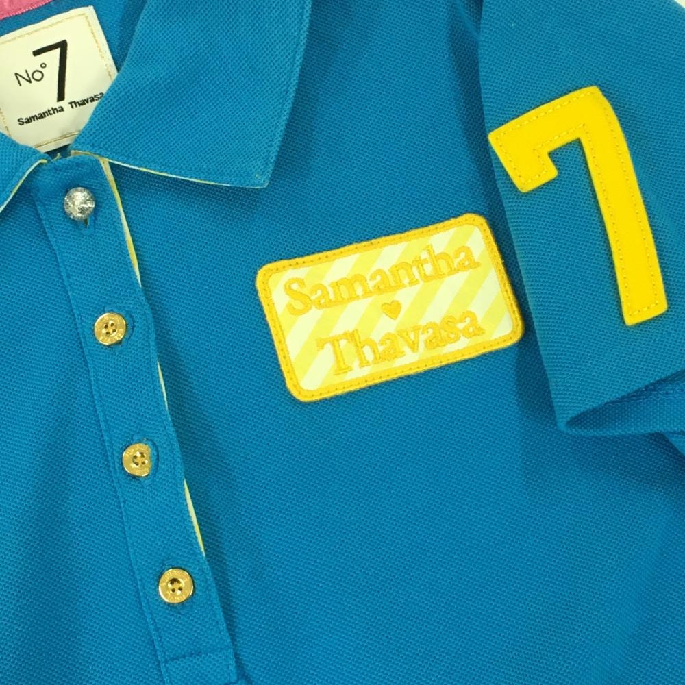 サマンサタバサNo.7 半袖ポロシャツ ライトブルー×イエロー ロゴワッペン レディース 38(M) ゴルフウェア Samantha Thavasa