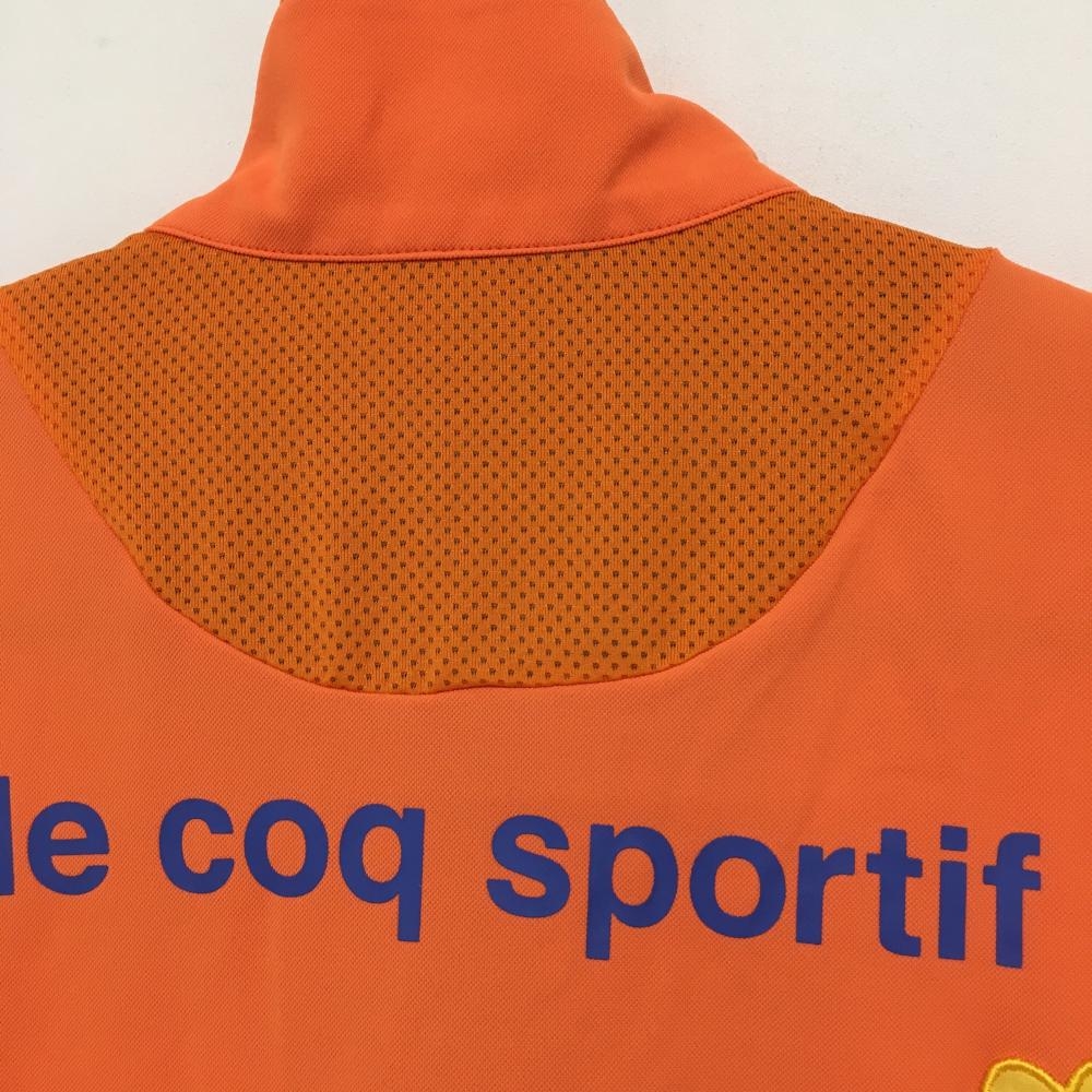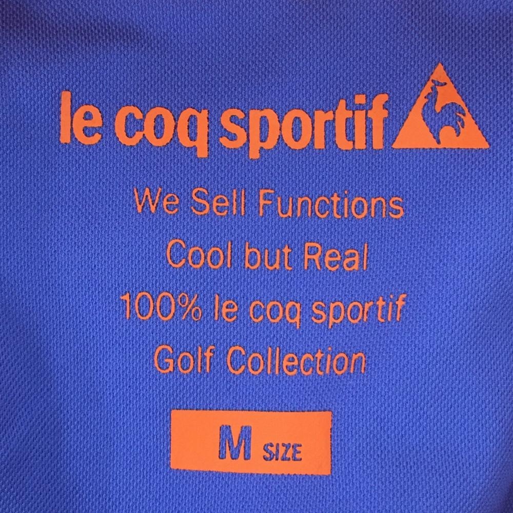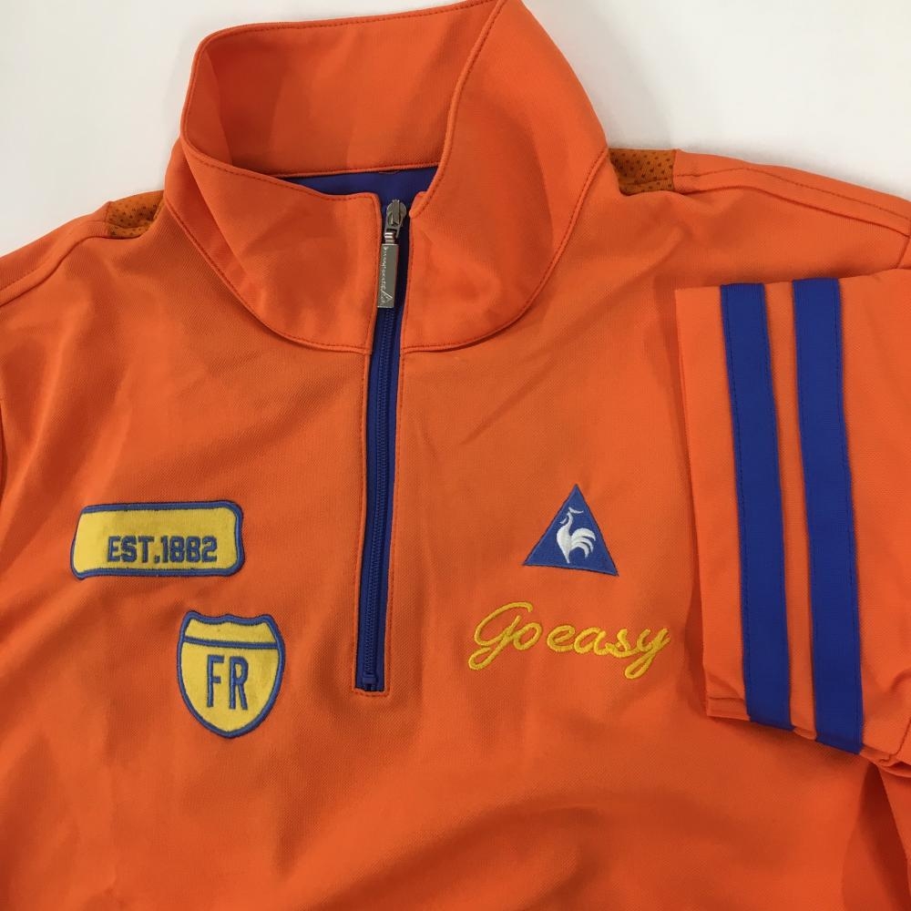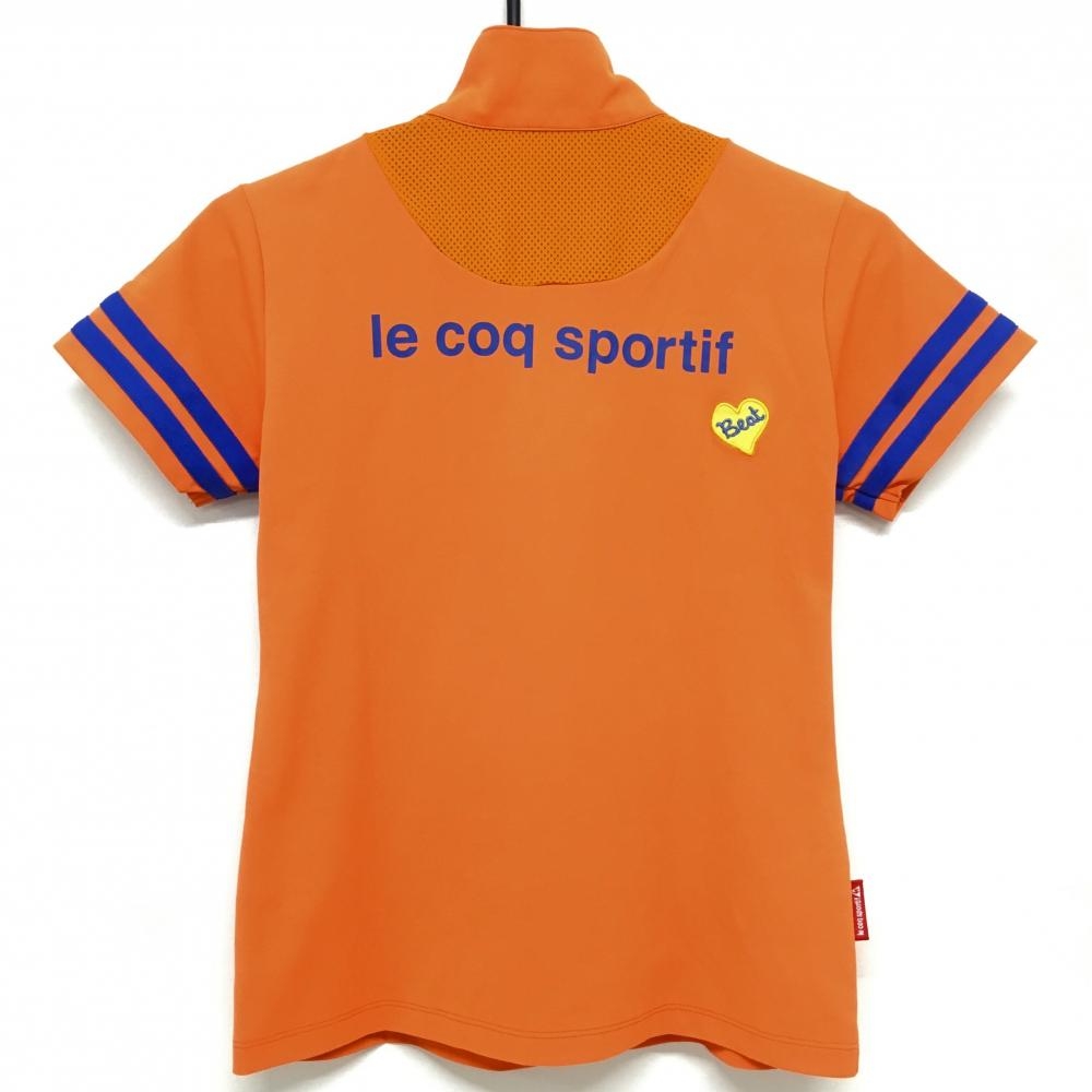 【超美品】ルコック 半袖ポロシャツ オレンジ×ブルー ハーフジップ 袖3ライン レディース M ゴルフウェア le coq sportif