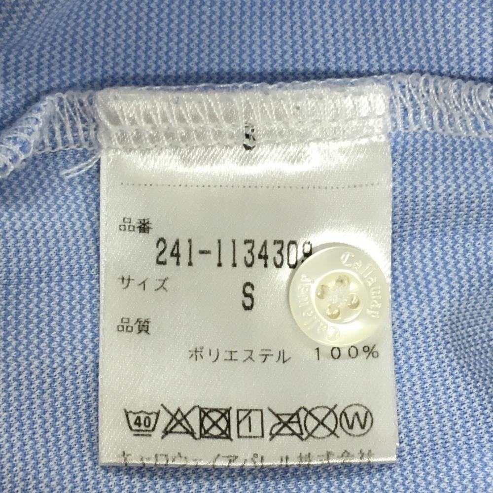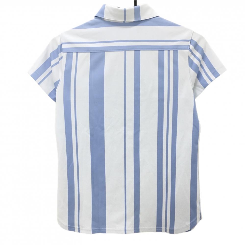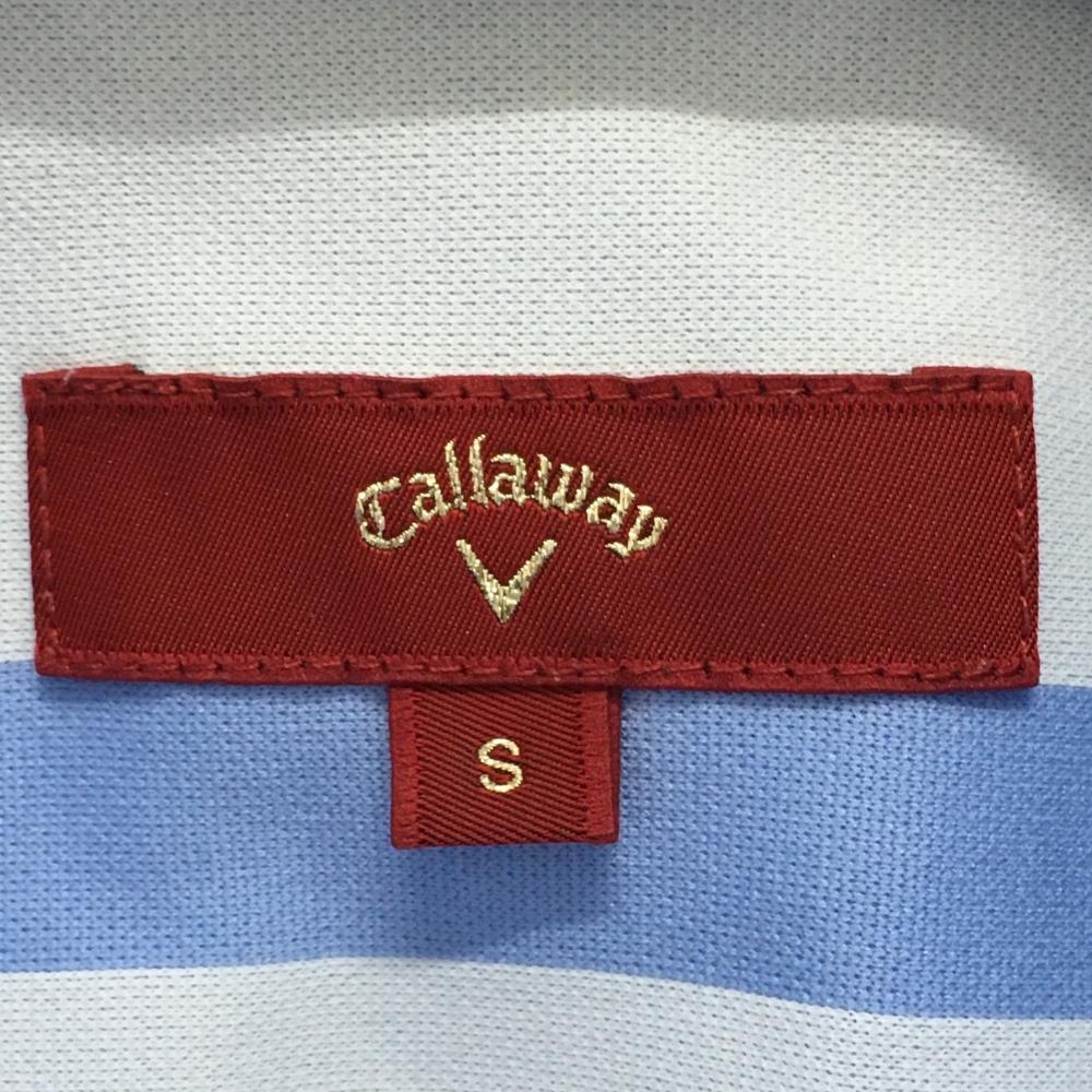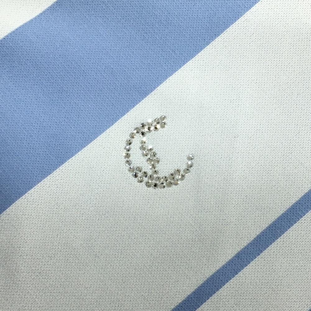 【超美品】キャロウェイレッドレーベル 半袖ポロシャツ ライトブルー×白 ボーダー風 ラインストーン レディース S ゴルフウェア Callaway