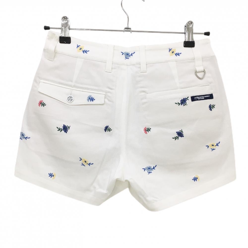 【超美品】マスターバニー ショートパンツ 白×ブルー 花刺しゅう柄 レディース 0(S) ゴルフウェア MASTER BUNNY EDITION