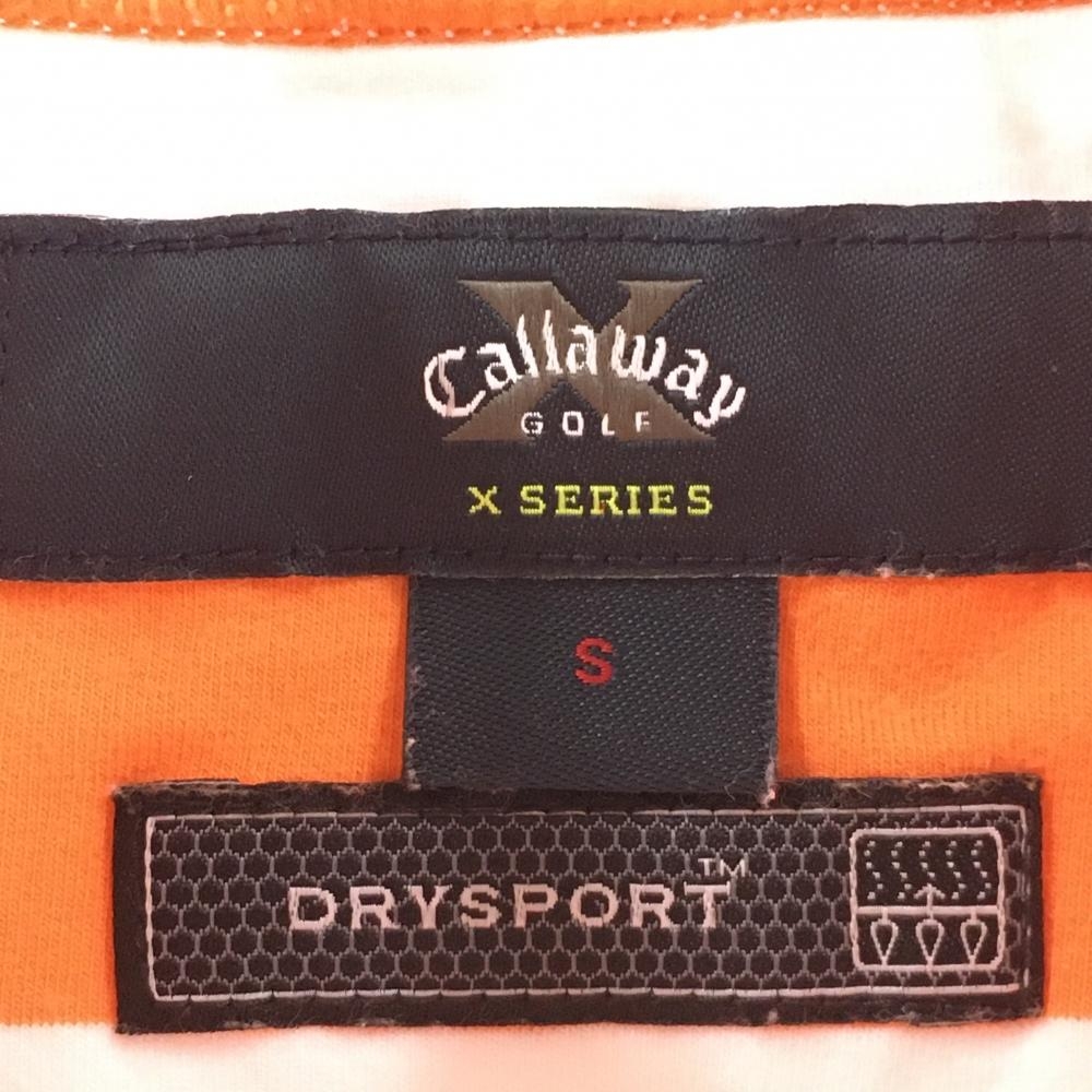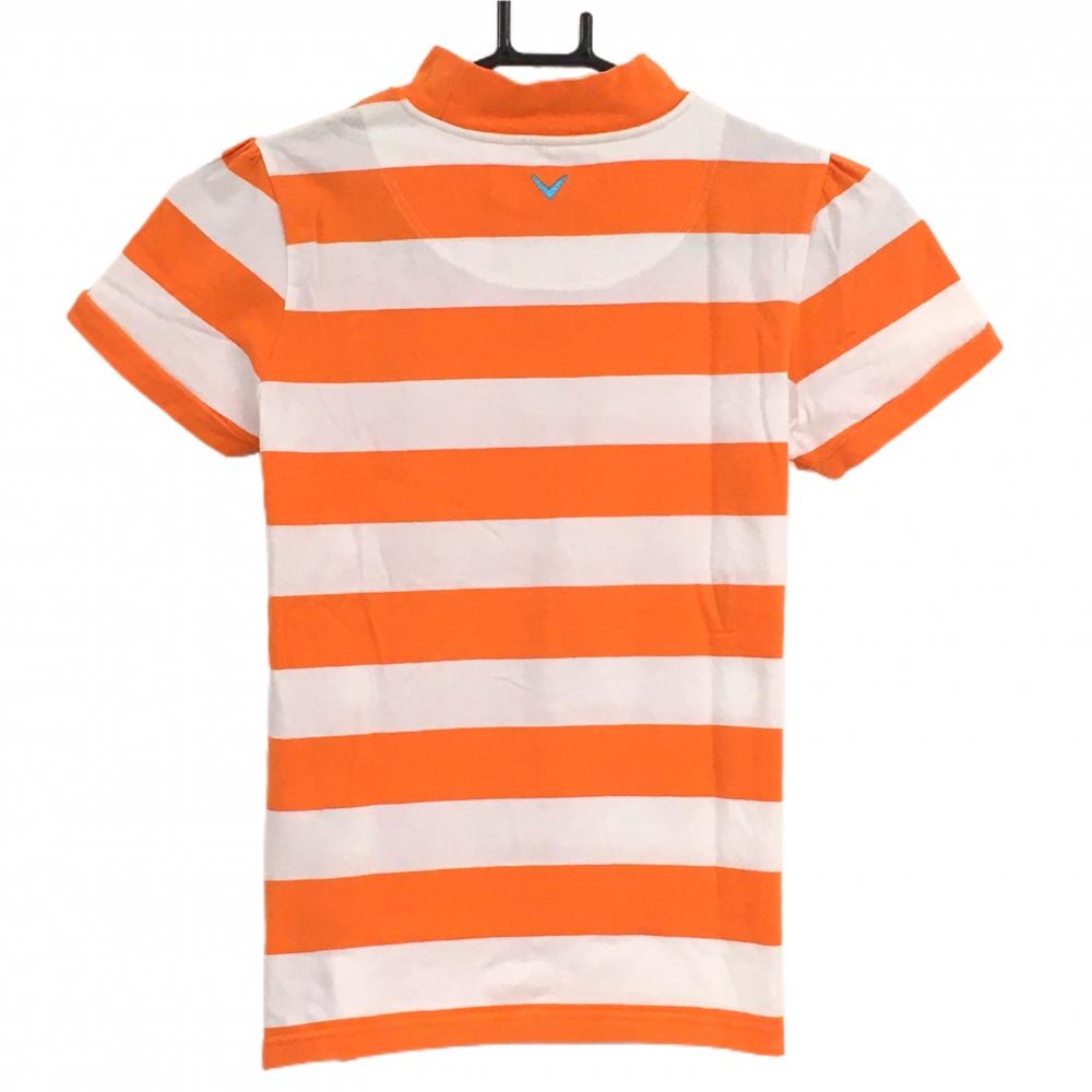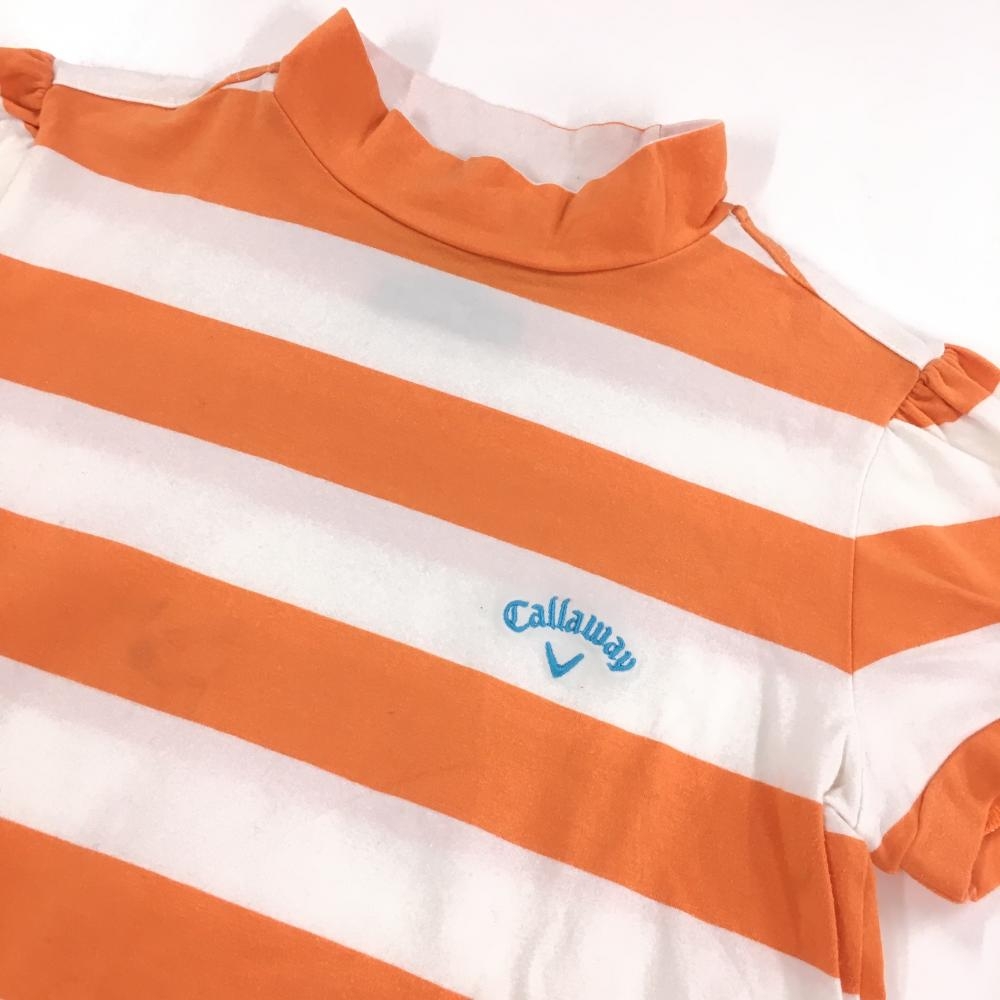 キャロウェイ 半袖ハイネックシャツ オレンジ×白 ボーダー ロゴ刺しゅう レディース S ゴルフウェア Callaway