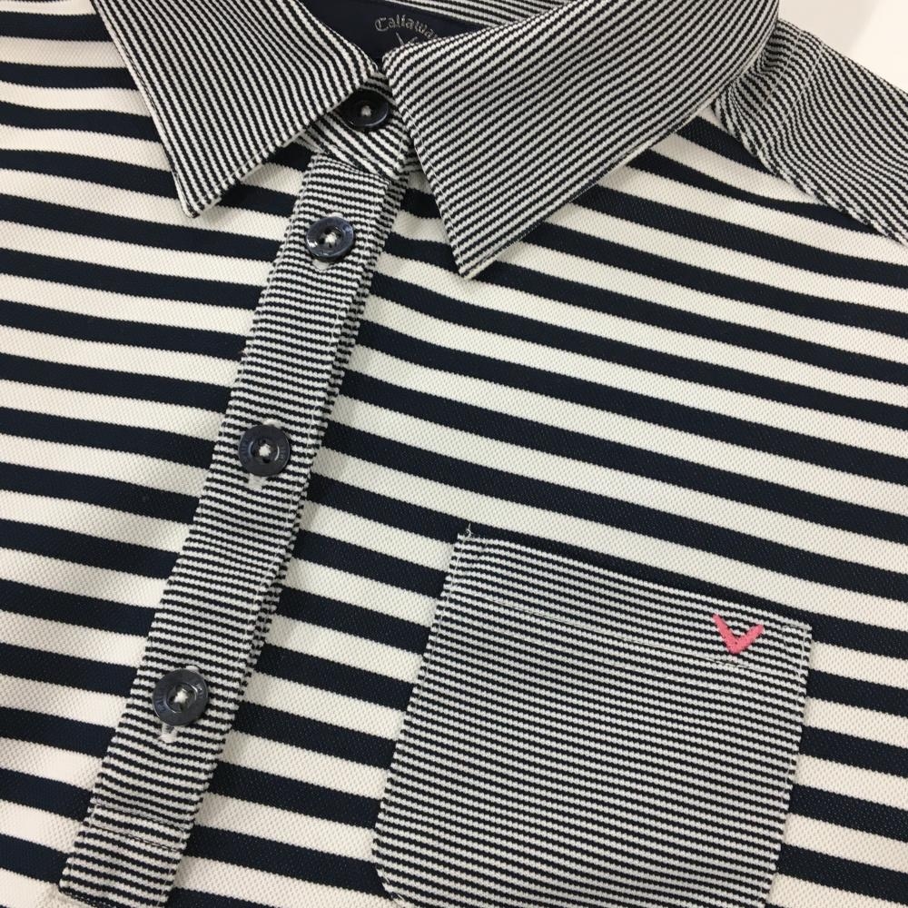 キャロウェイ 半袖ポロシャツ 白×黒 ボーダー レディース M ゴルフウェア Callaway