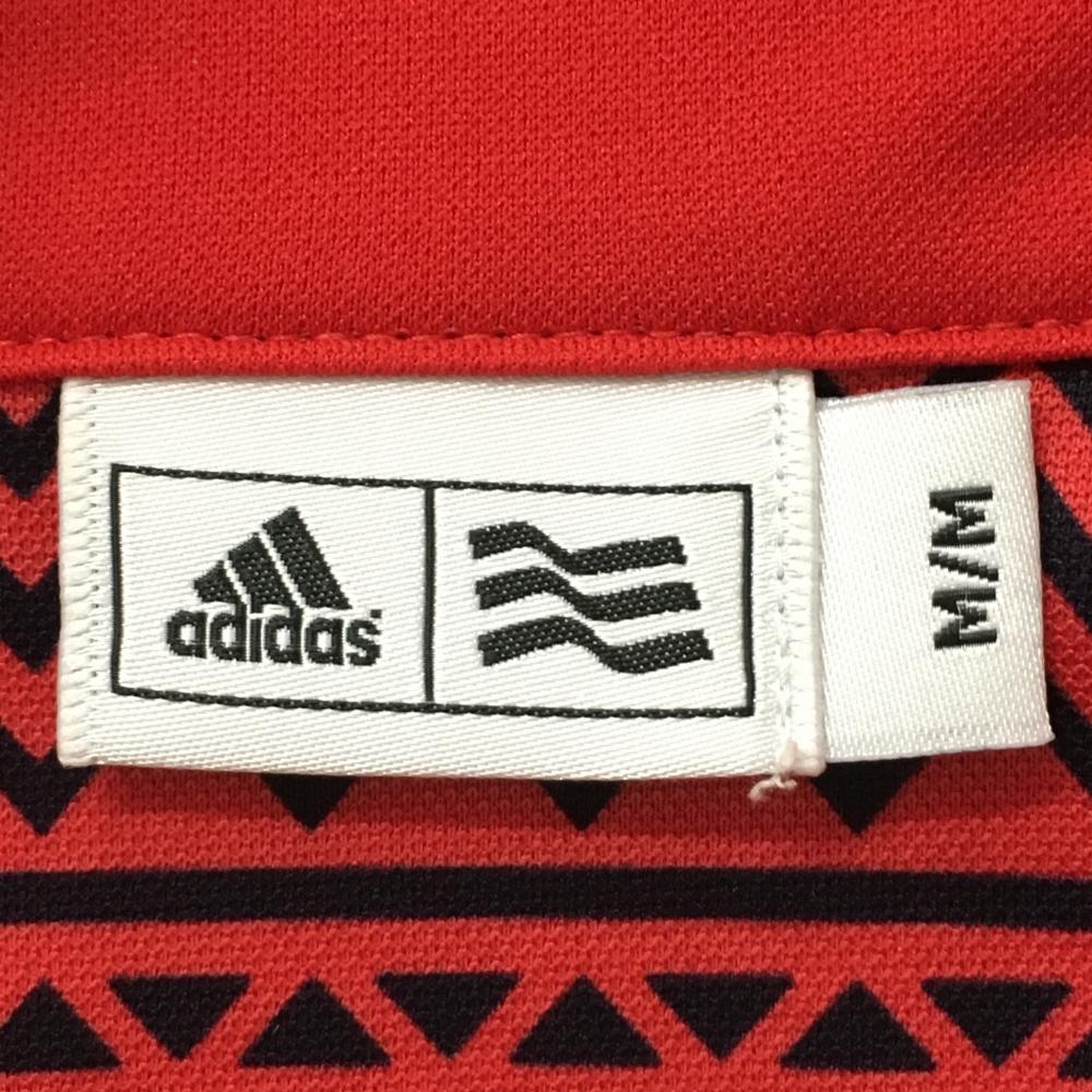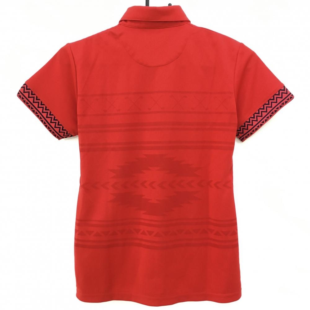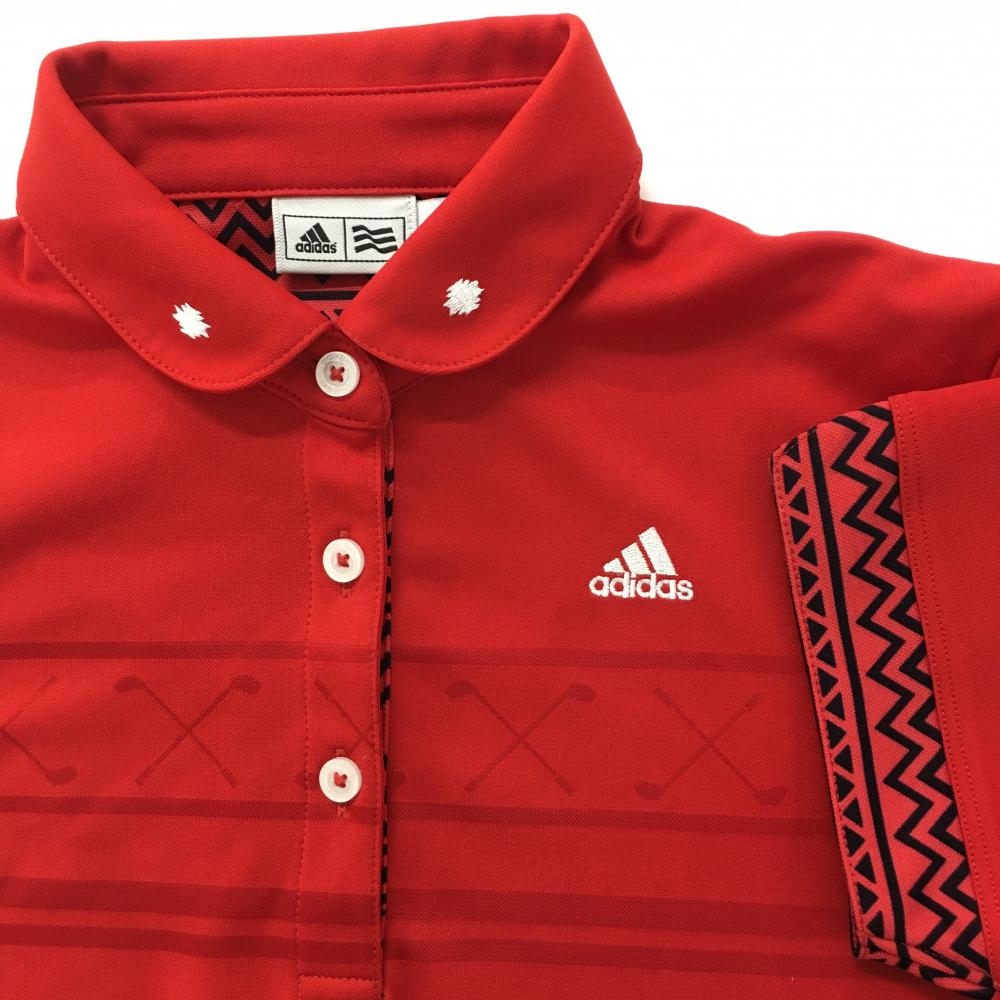 【超美品】アディダス 半袖ポロシャツ レッド×黒 総柄織生地 レディース M/M ゴルフウェア adidas