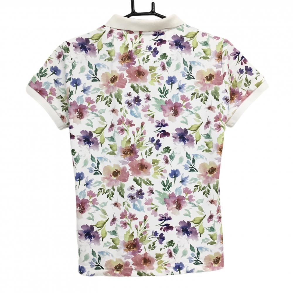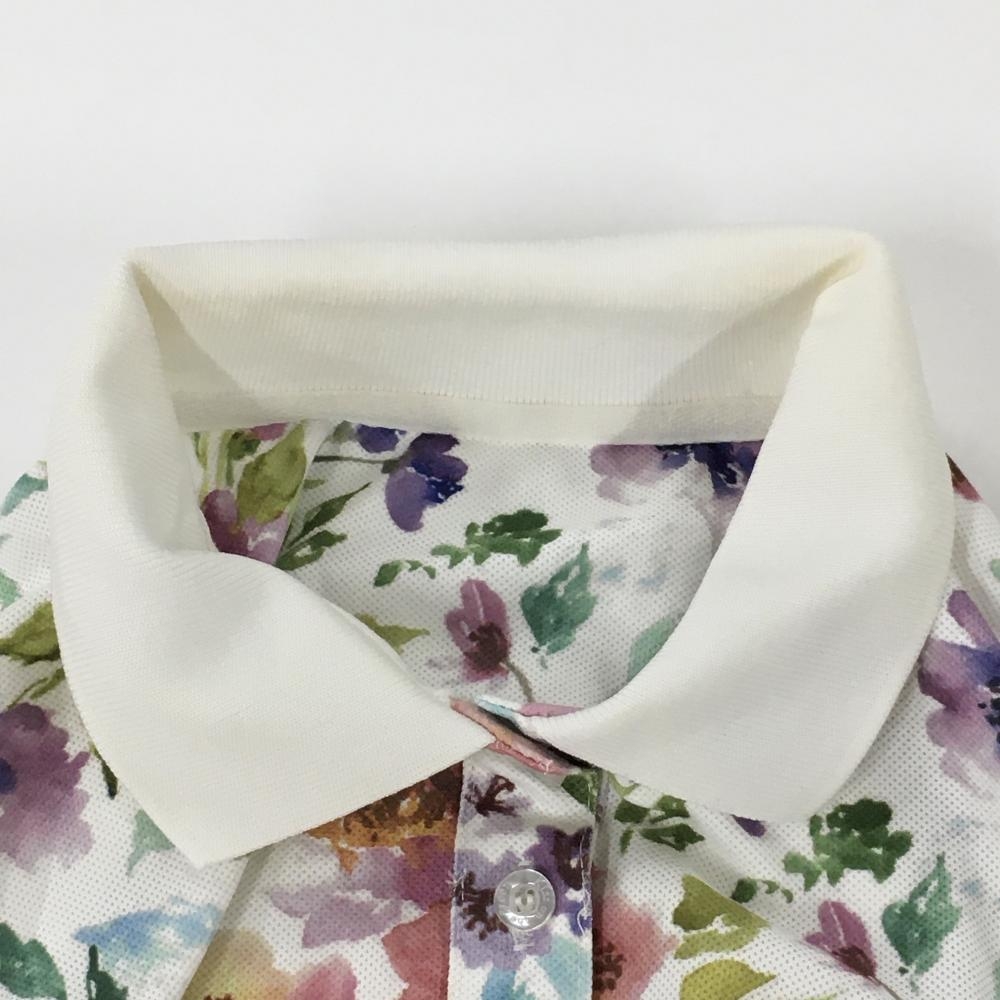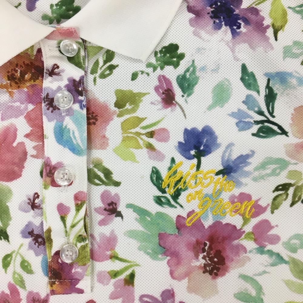 キスオンザグリーン 半袖ポロシャツ 白×マルチカラー 花柄 総柄 ロゴ刺しゅう レディース 2(M) ゴルフウェア kiss on the green