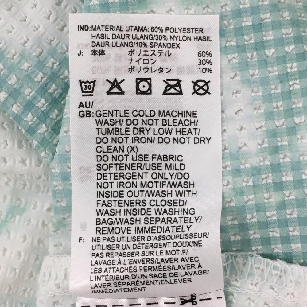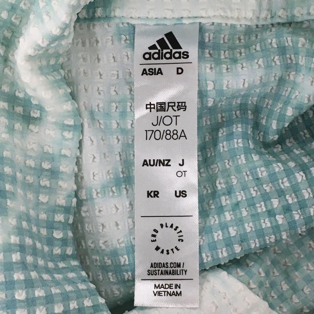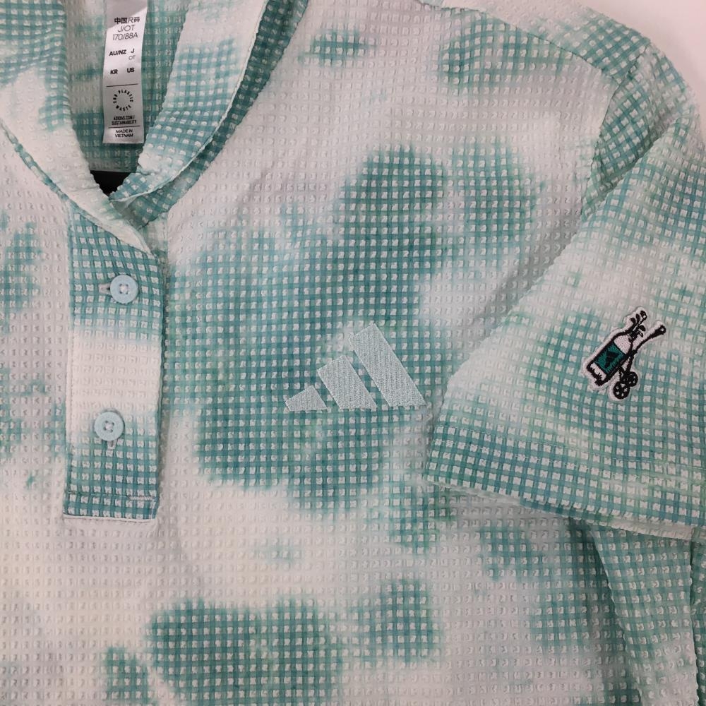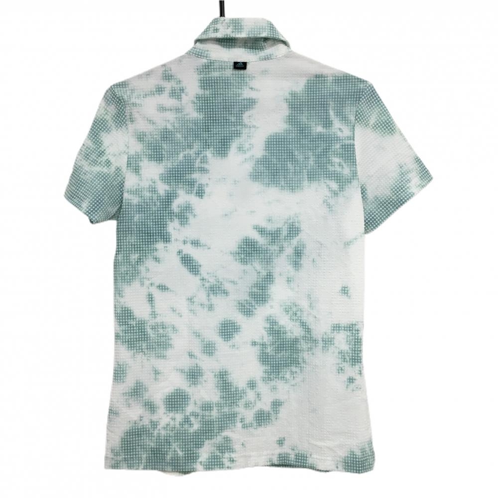 【超美品】アディダス 半袖ポロシャツ 白×グリーン 総柄 凹凸生地 サッカー生地 袖ワッペン レディース OT ゴルフウェア adidas