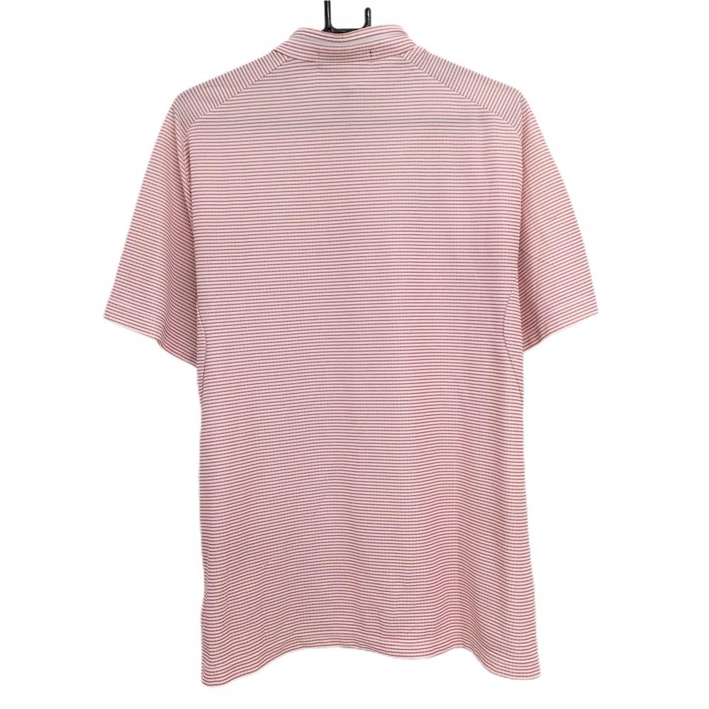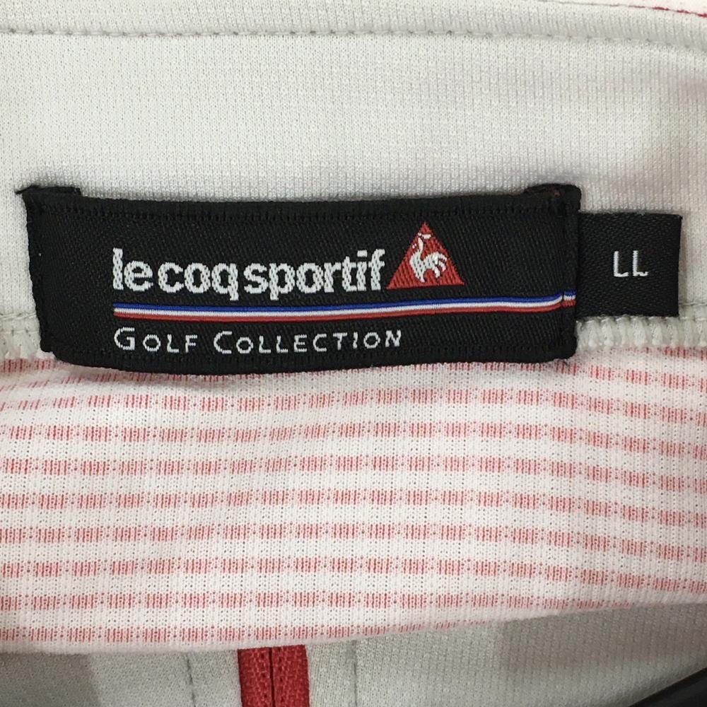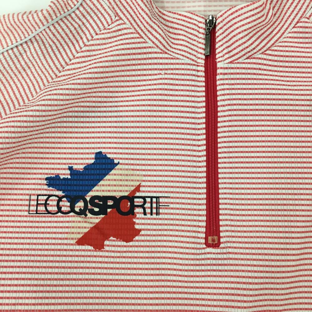 ルコック 半袖ハイネックシャツ 白×レッド ボーダー柄 総柄 織生地 ロゴ刺しゅう ハーフジップ メンズ LL ゴルフウェア le coq sportif