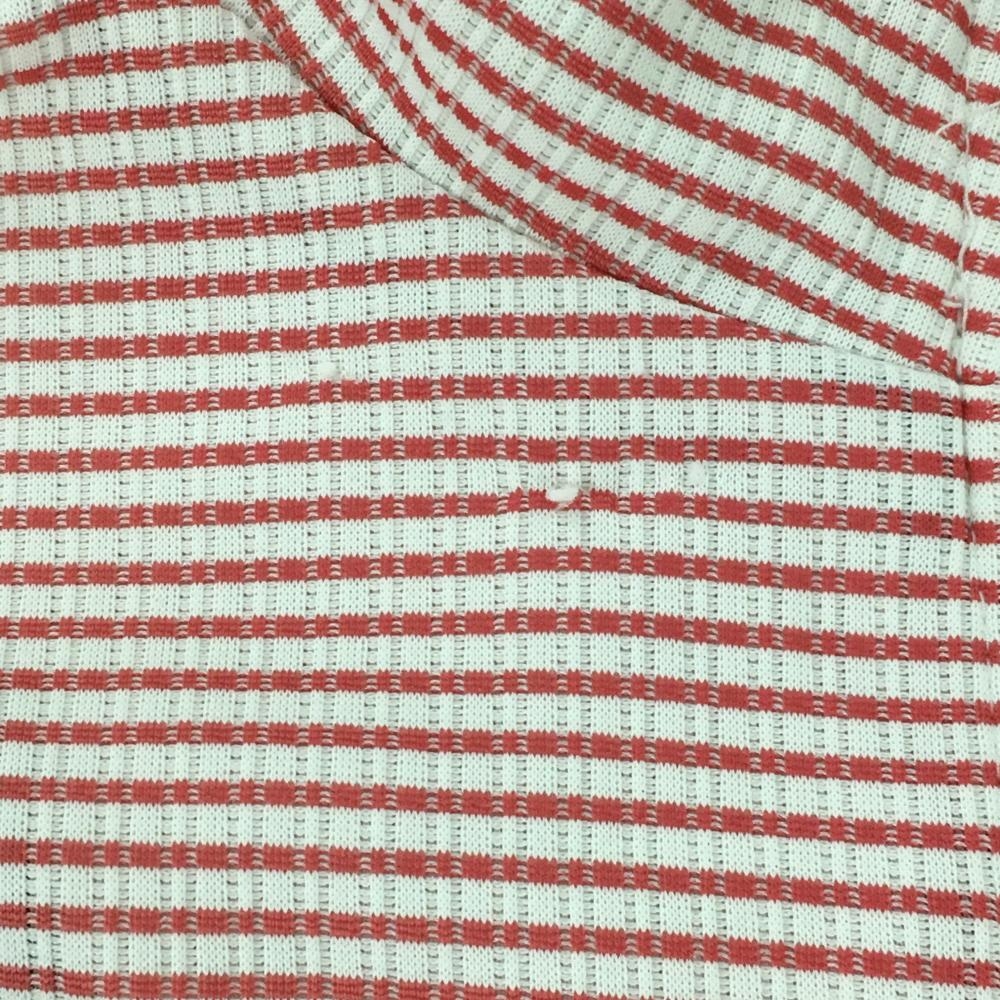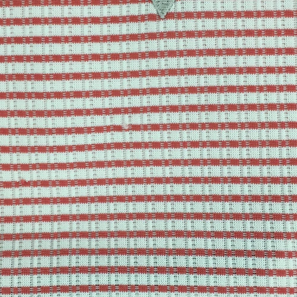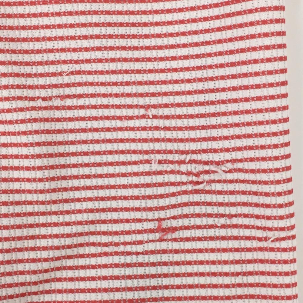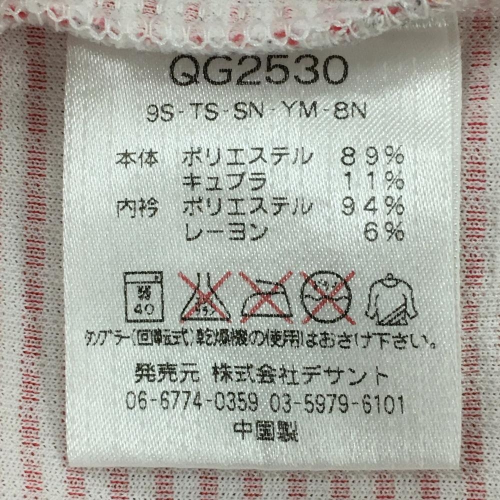ルコック 半袖ハイネックシャツ 白×レッド ボーダー柄 総柄 織生地 ロゴ刺しゅう ハーフジップ メンズ LL ゴルフウェア le coq sportif